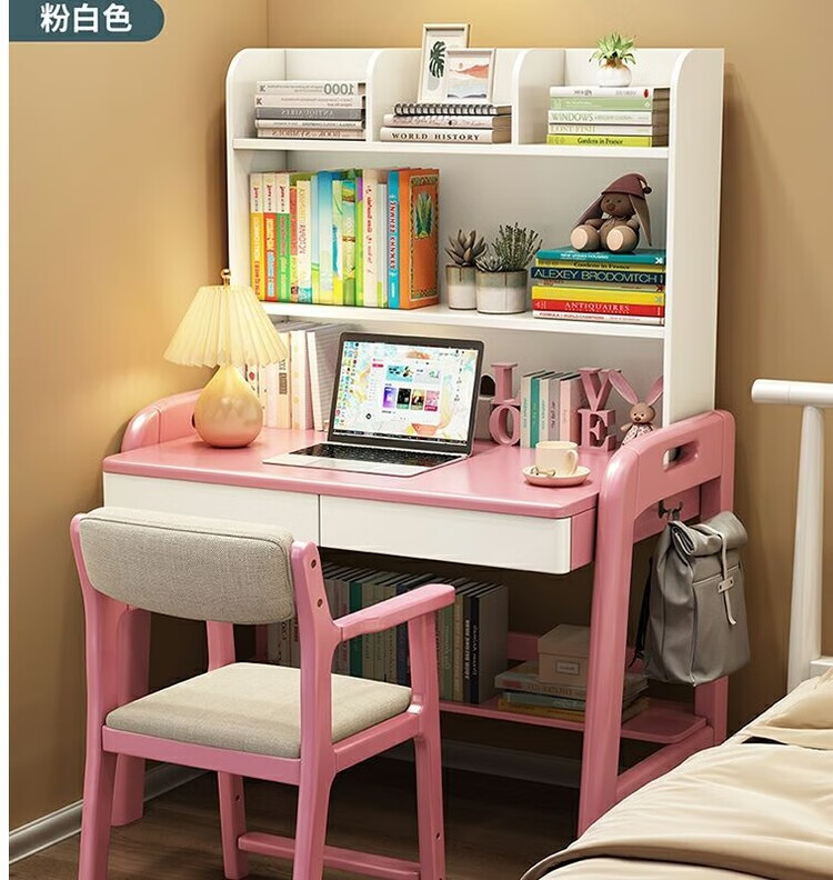 海诗圣堡儿童书桌写字桌家用小学生儿童学习桌椅男孩女孩可升降作业桌套装 学校同款 60*40桌面+粉色+桌椅