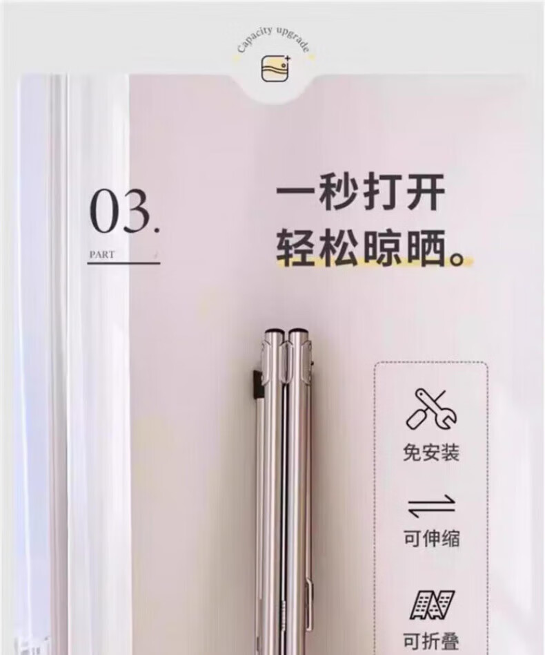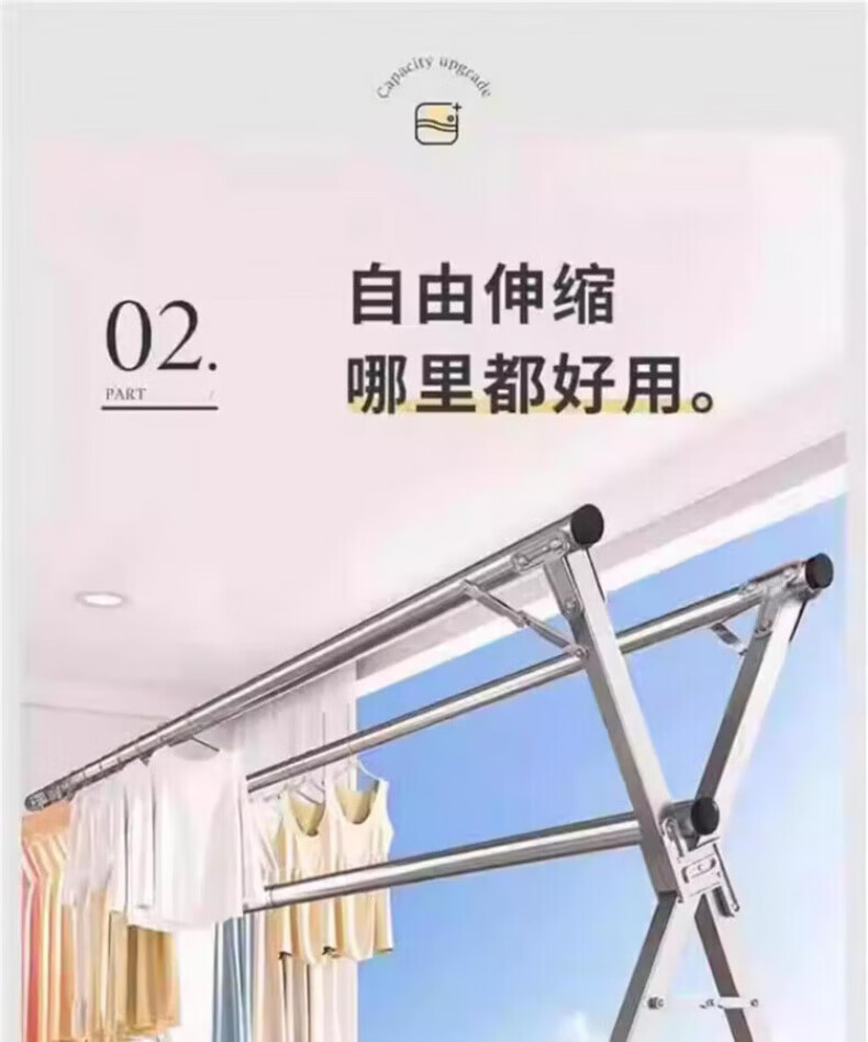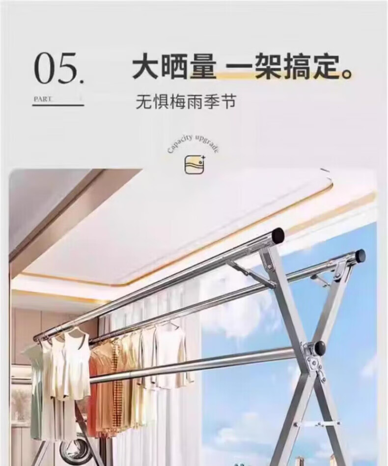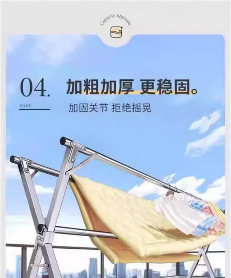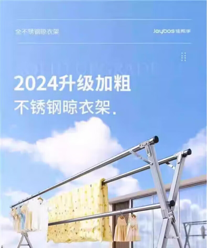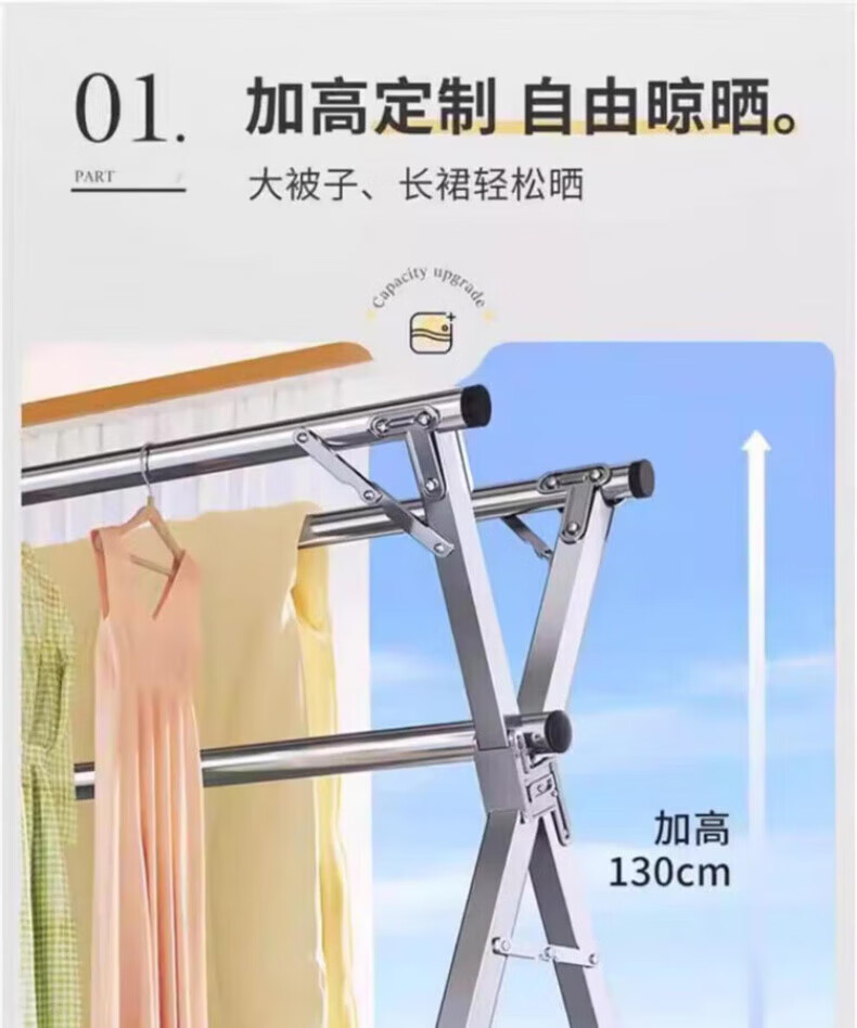 DEATKN德国高端2025晾衣架落地折叠家用阳台室外伸缩凉衣杆室内晒被 加粗双杆[1.6米可伸缩]送风钩