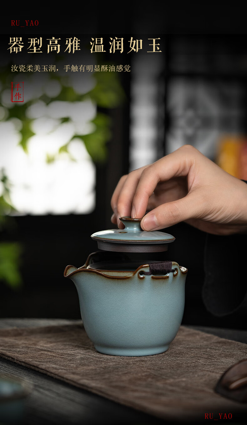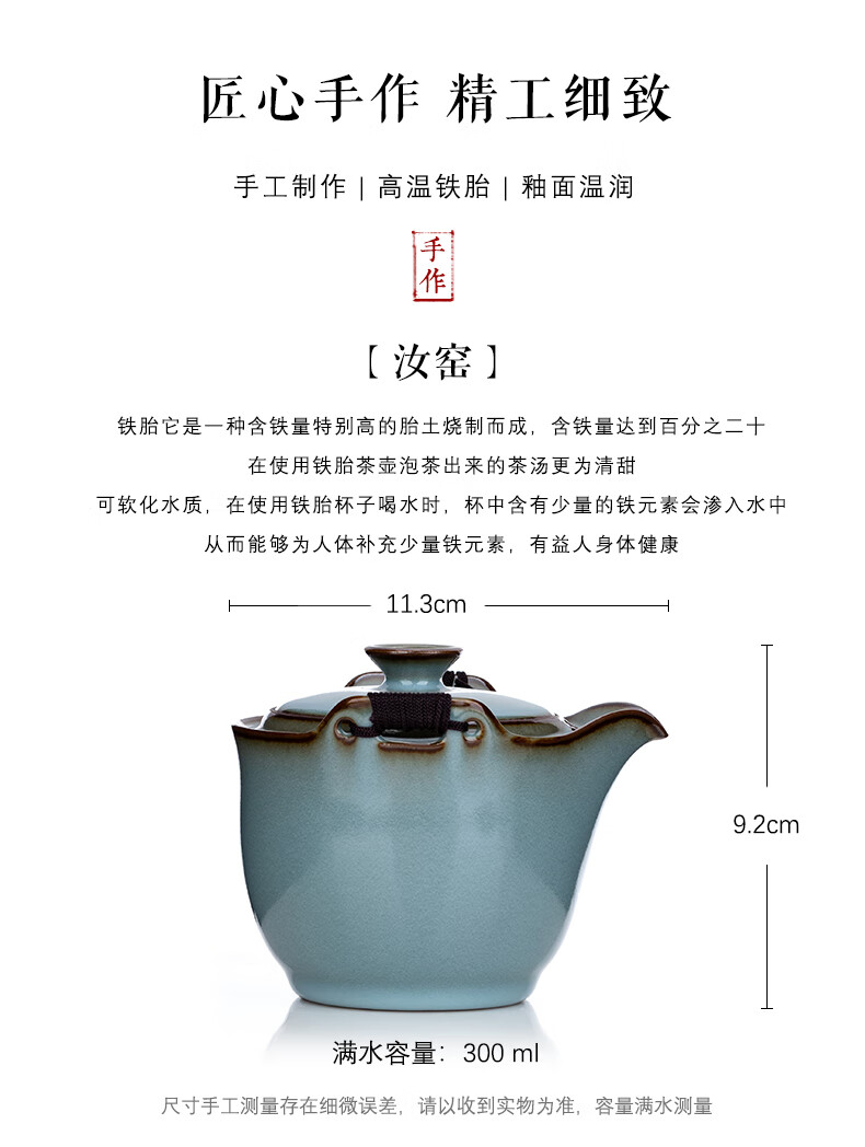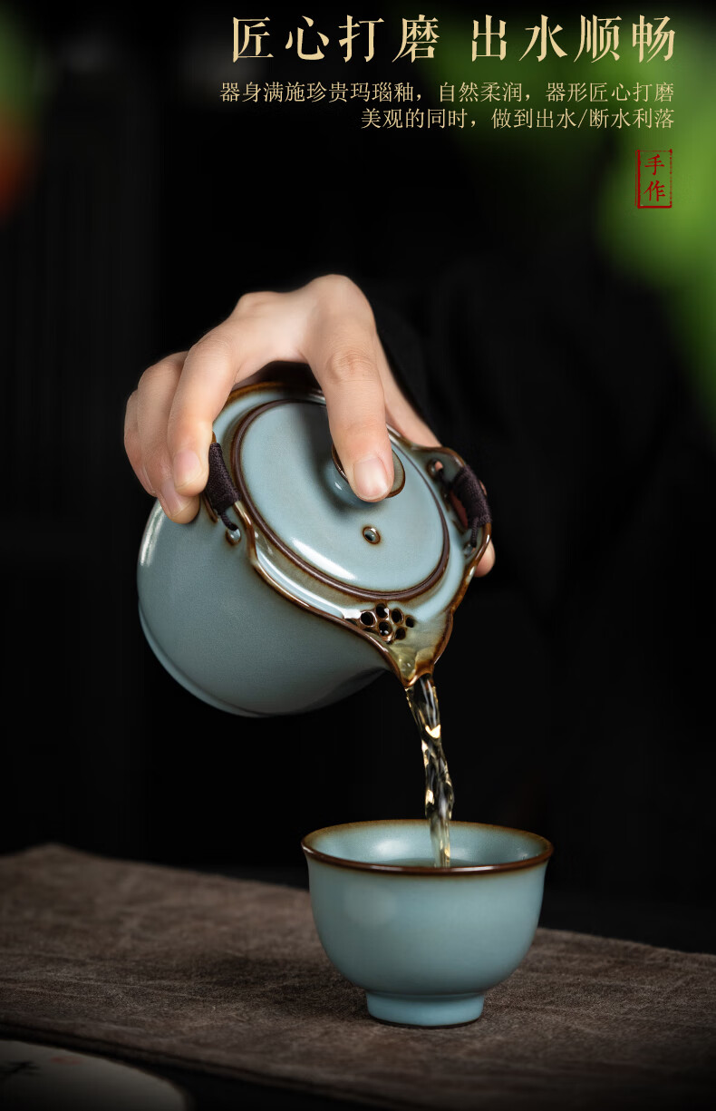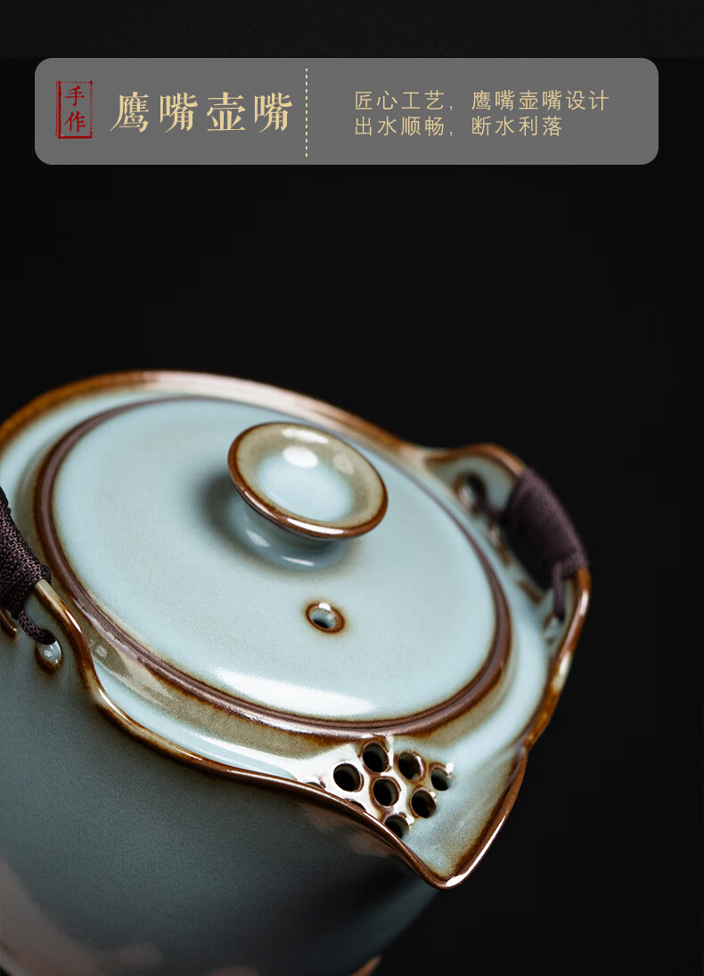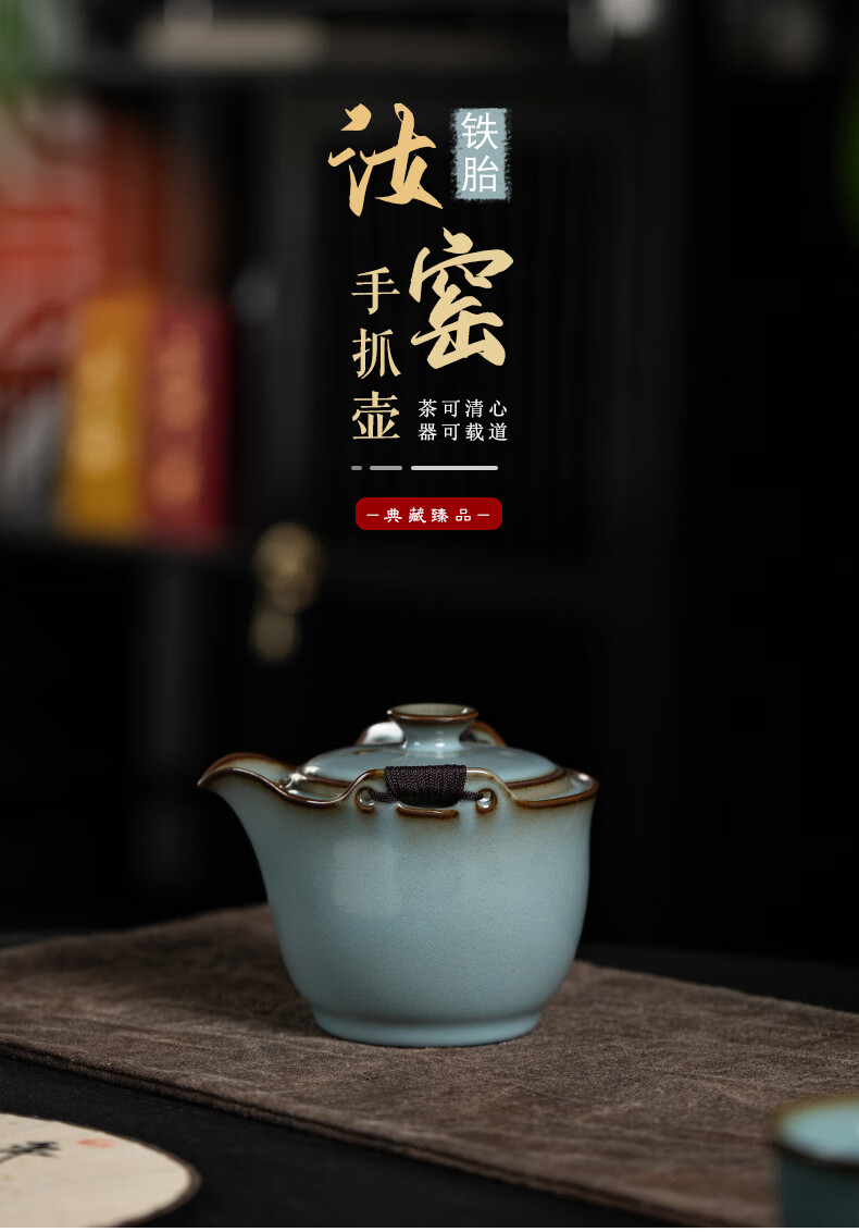 言洲西园堂 铁胎汝窑手抓壶防烫陶瓷茶壶单壶大容量功夫茶具泡茶壶 手抓壶(铁胎汝窑)
