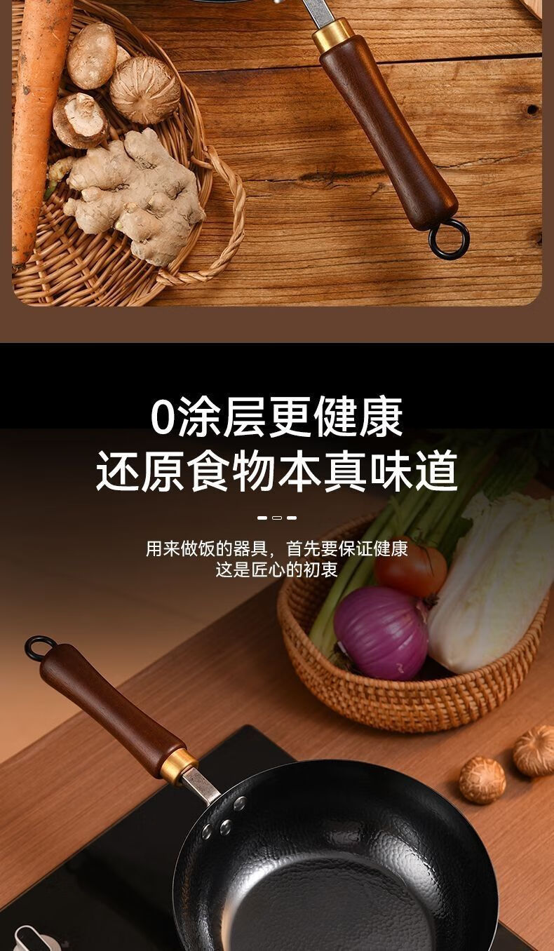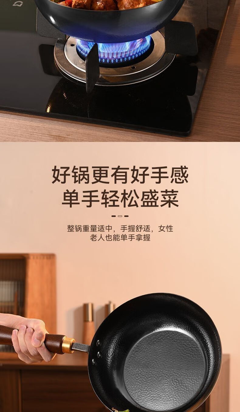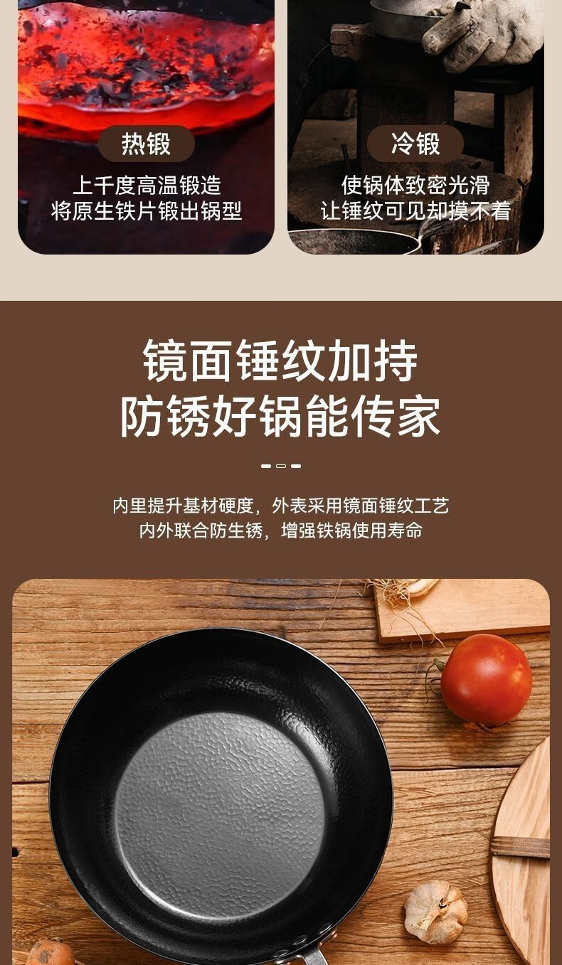 咏夏正宗手工章丘大肚铁锅无涂层不粘锅手工锻打加深加厚家用炒菜铁锅 【锤纹大肚锅】单锅 24cm