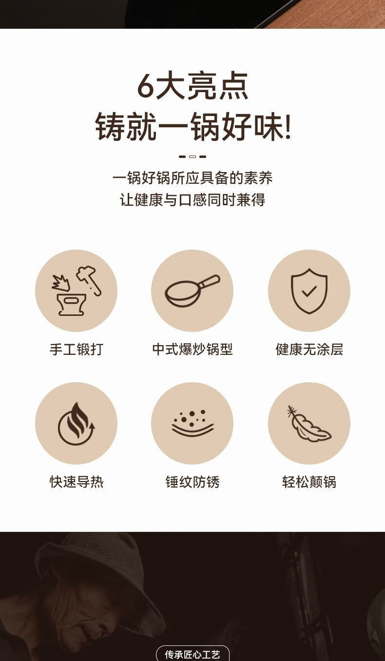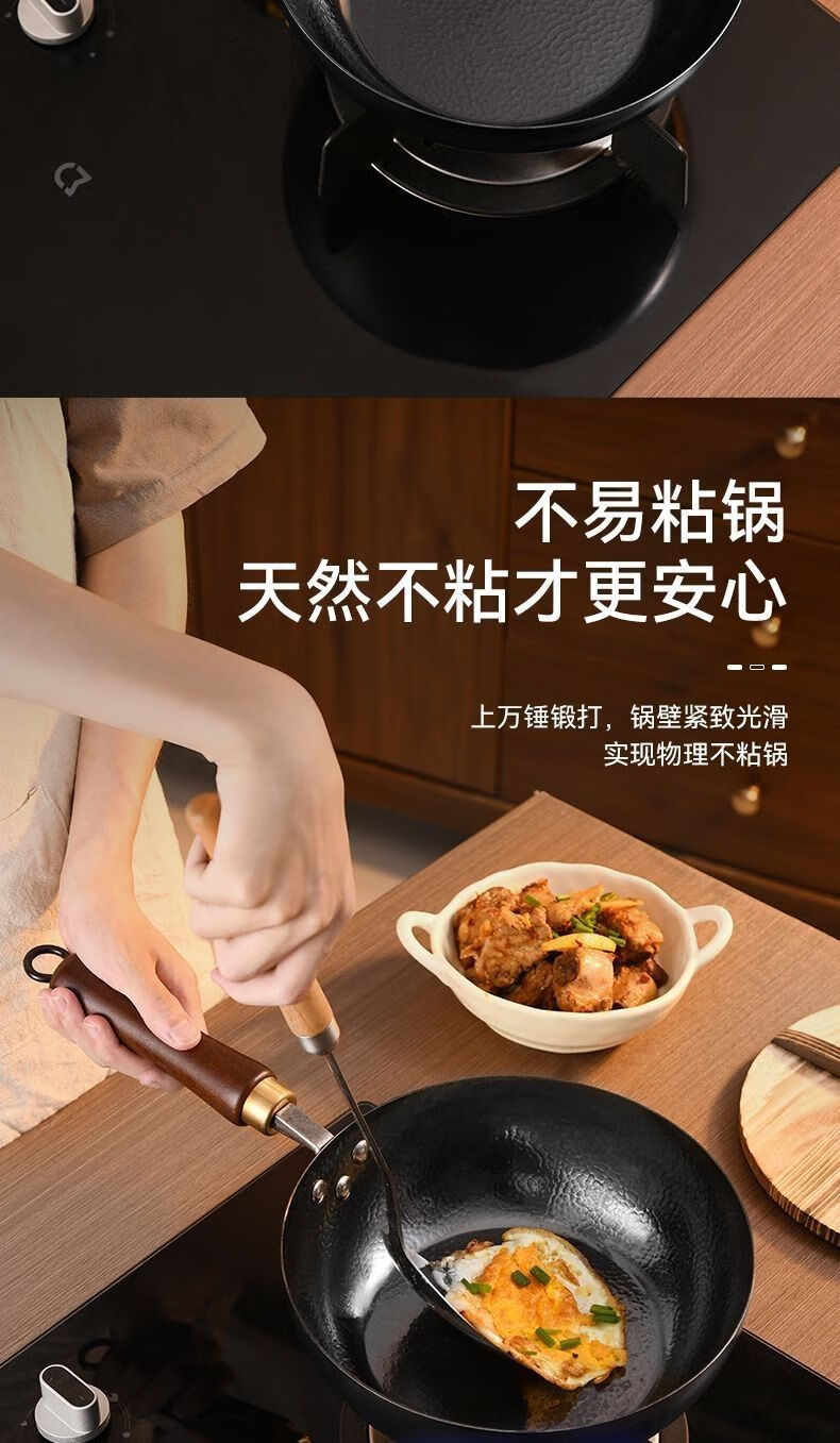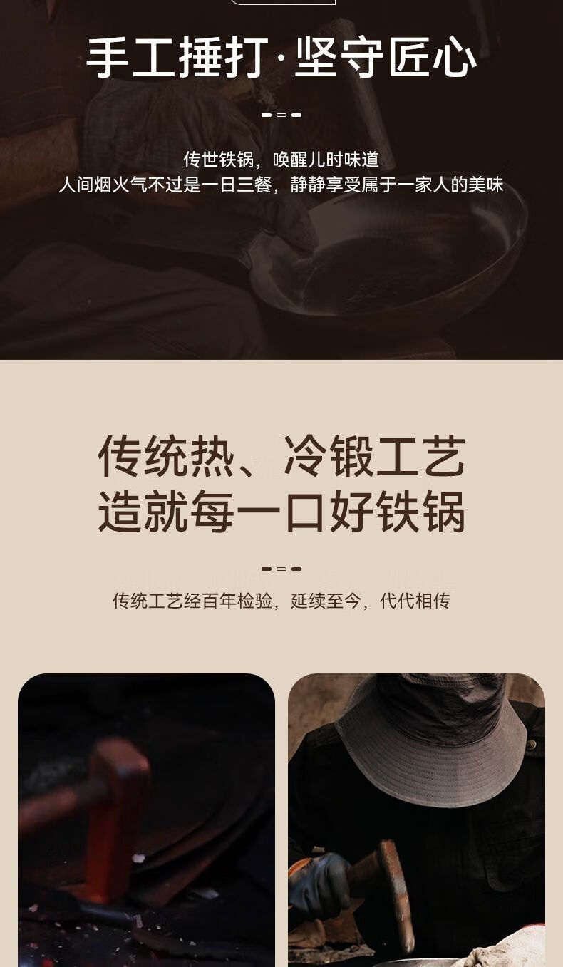 咏夏正宗手工章丘大肚铁锅无涂层不粘锅手工锻打加深加厚家用炒菜铁锅 【锤纹大肚锅】单锅 24cm