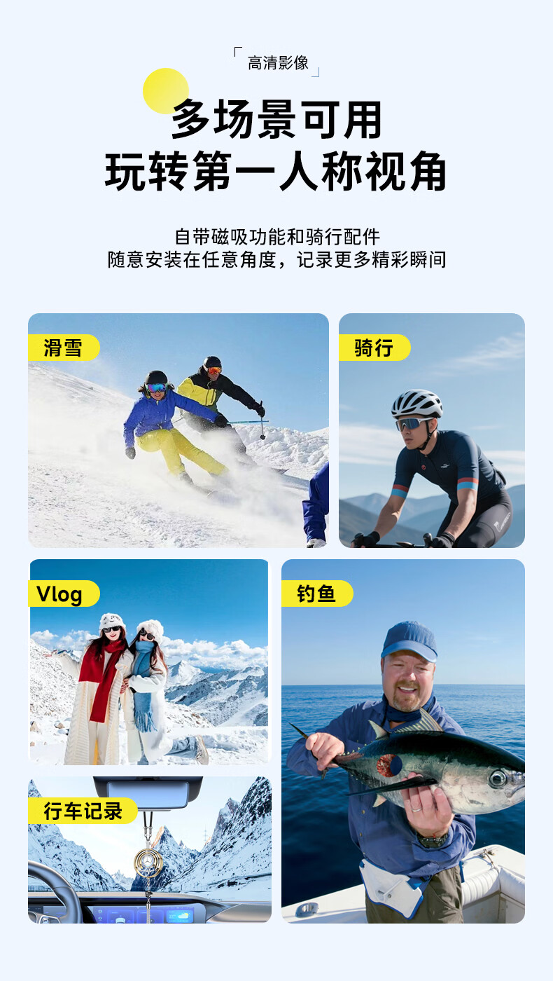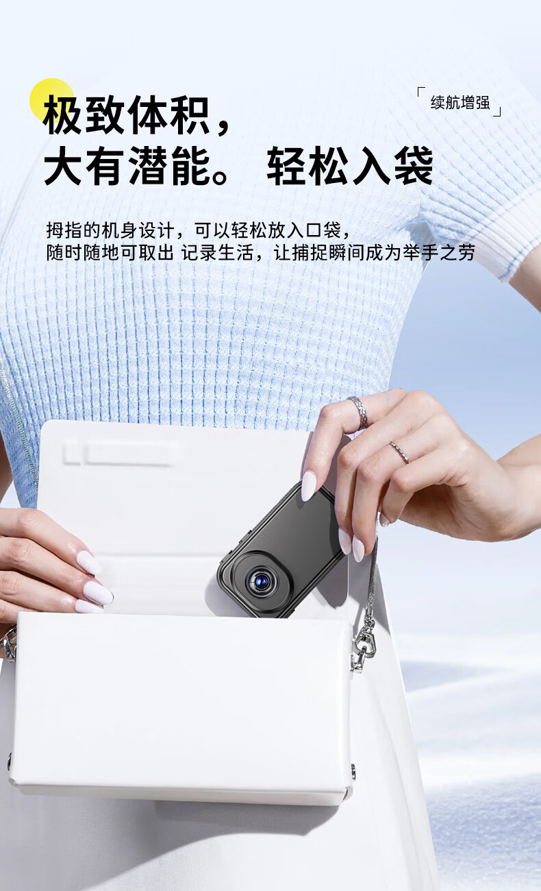 九目拇指运动相机 迷你随身超清运动防抖智能遥控骑行Vlog会议记录行车记录仪长续航数码口袋摄像机 星耀黑超清长续航升级版标准套装 2025新品上市 32G