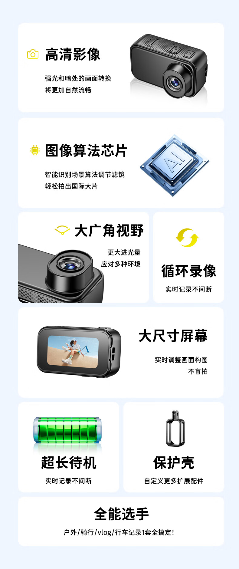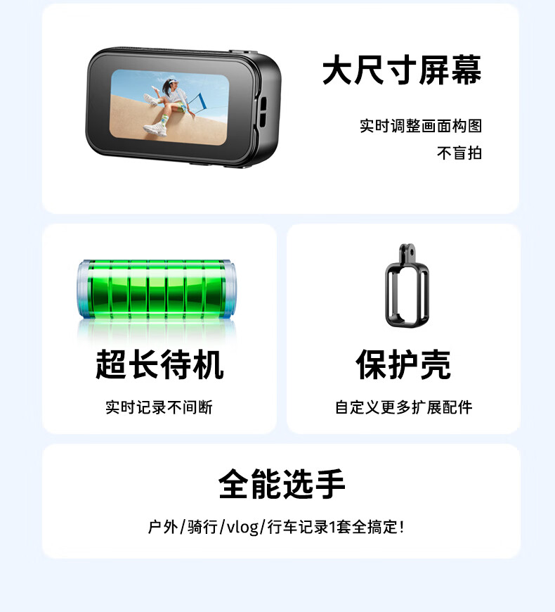 九目便携式相机行车记录仪随身高清夜视执法仪微型胸前小型运动相机会议工作留痕记录仪 【带屏直连】超长续航+超清显示+无网录像+美颜补灯 无内存版 口袋运动相机新品促销