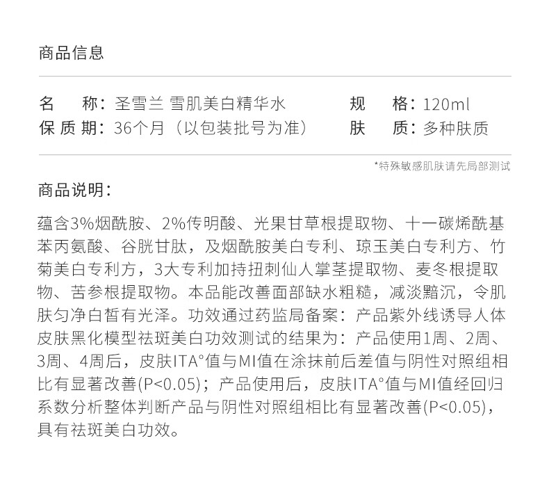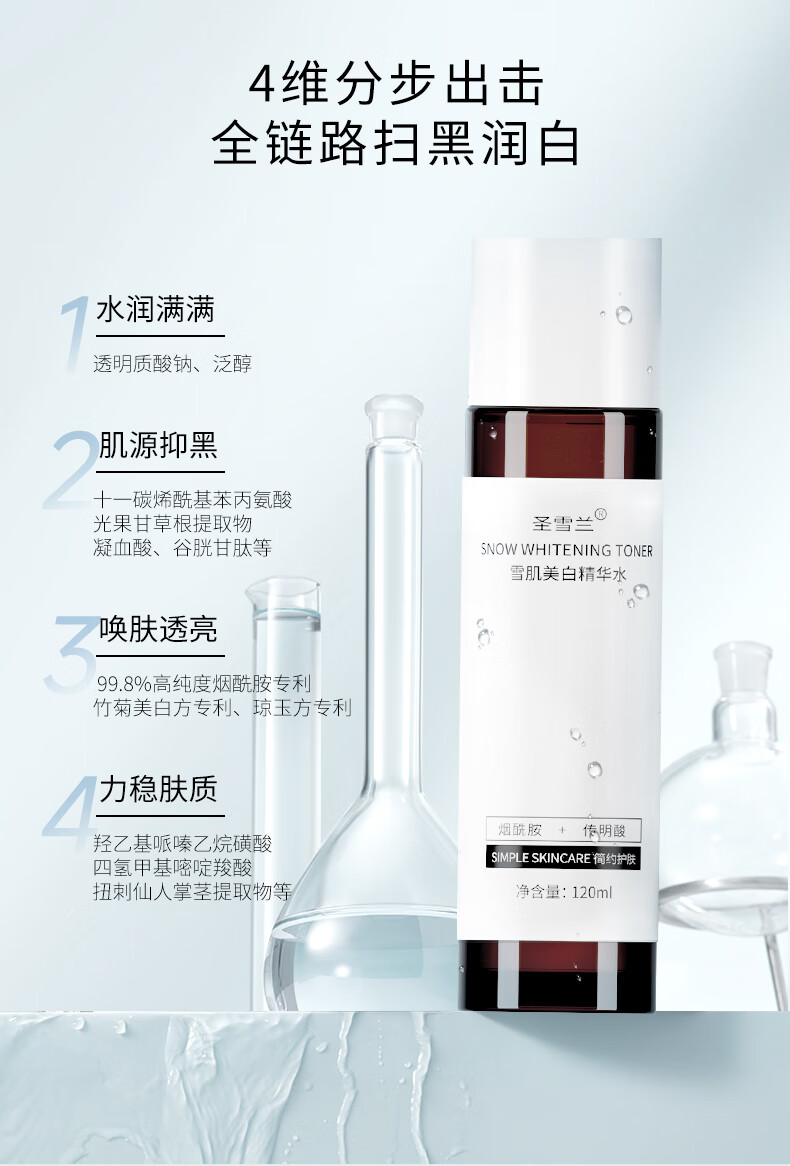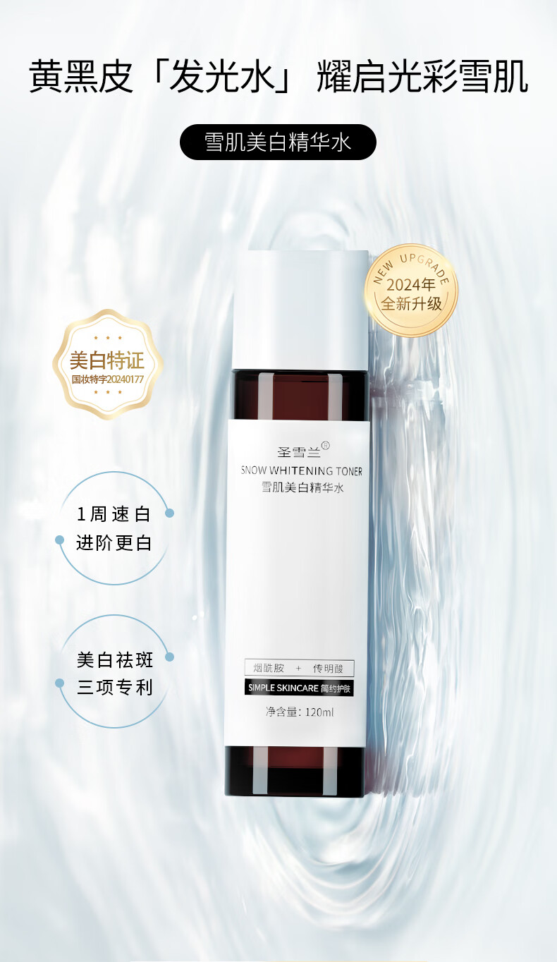 圣雪兰美白精华水 烟酰胺美白去黄湿敷补水保湿提亮肤色爽肤水 120ml