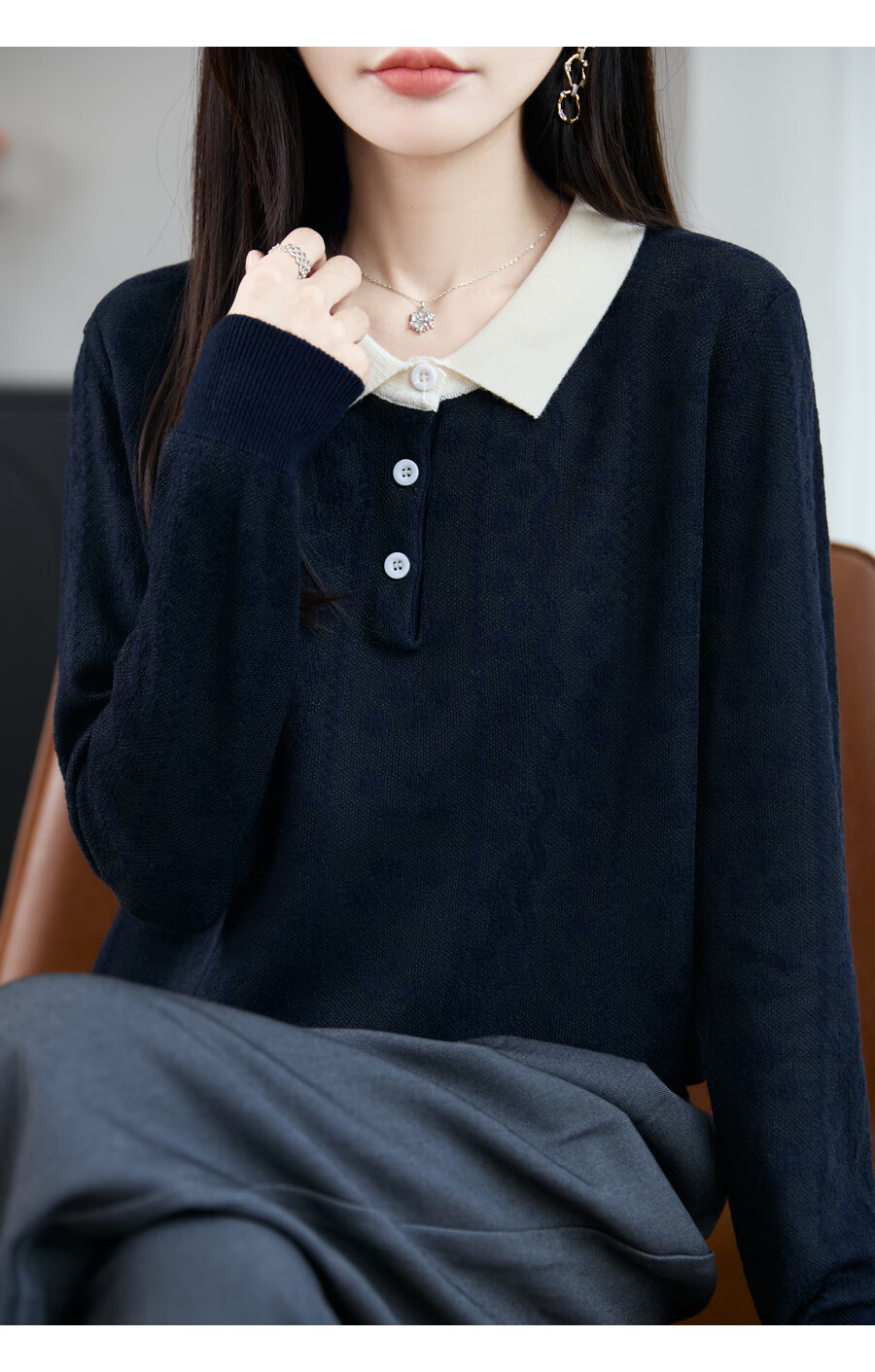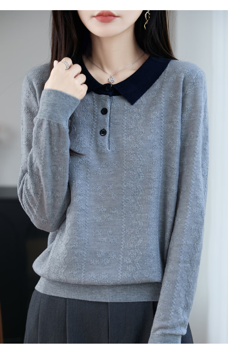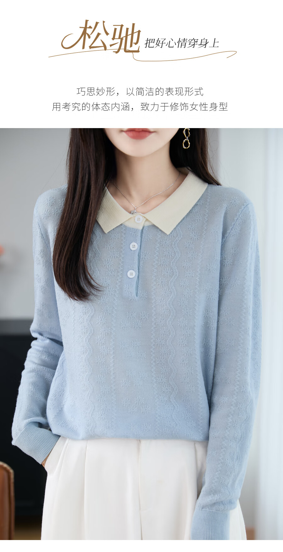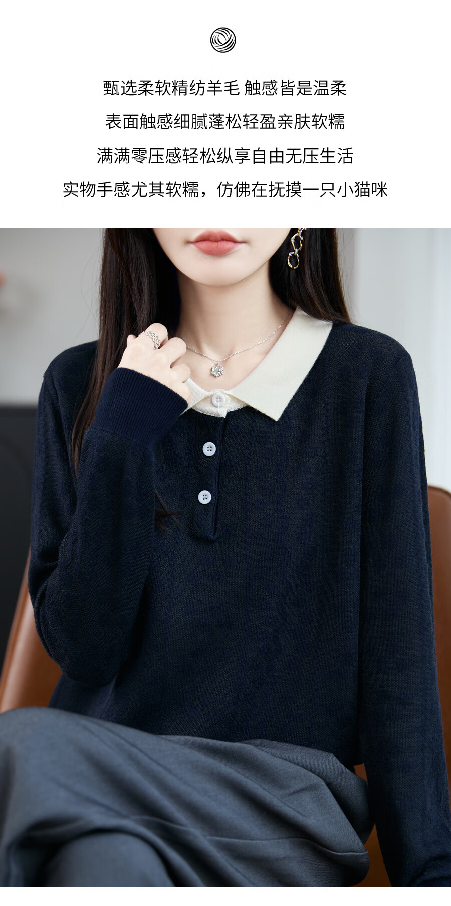 香影芬针织衫女娃娃领套头毛衣女2025秋冬新款洋气翻领宽松外穿打底衫女 蓝色 L (建议105-115斤)