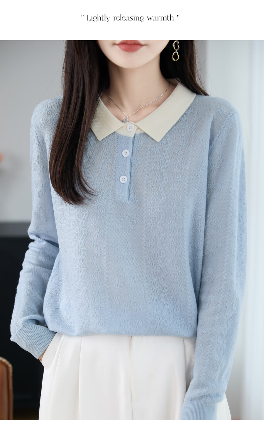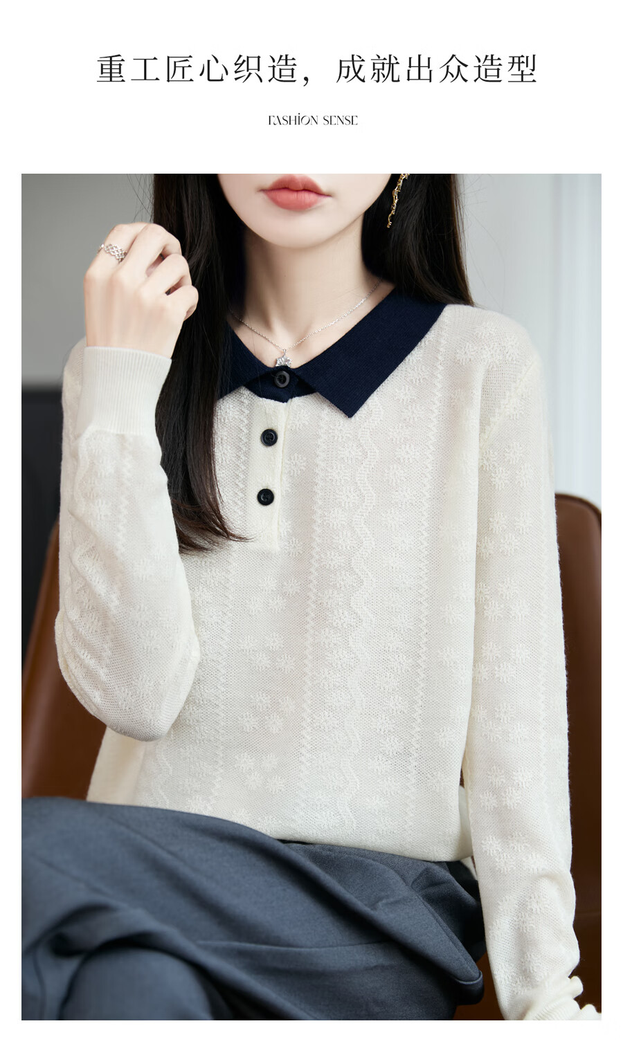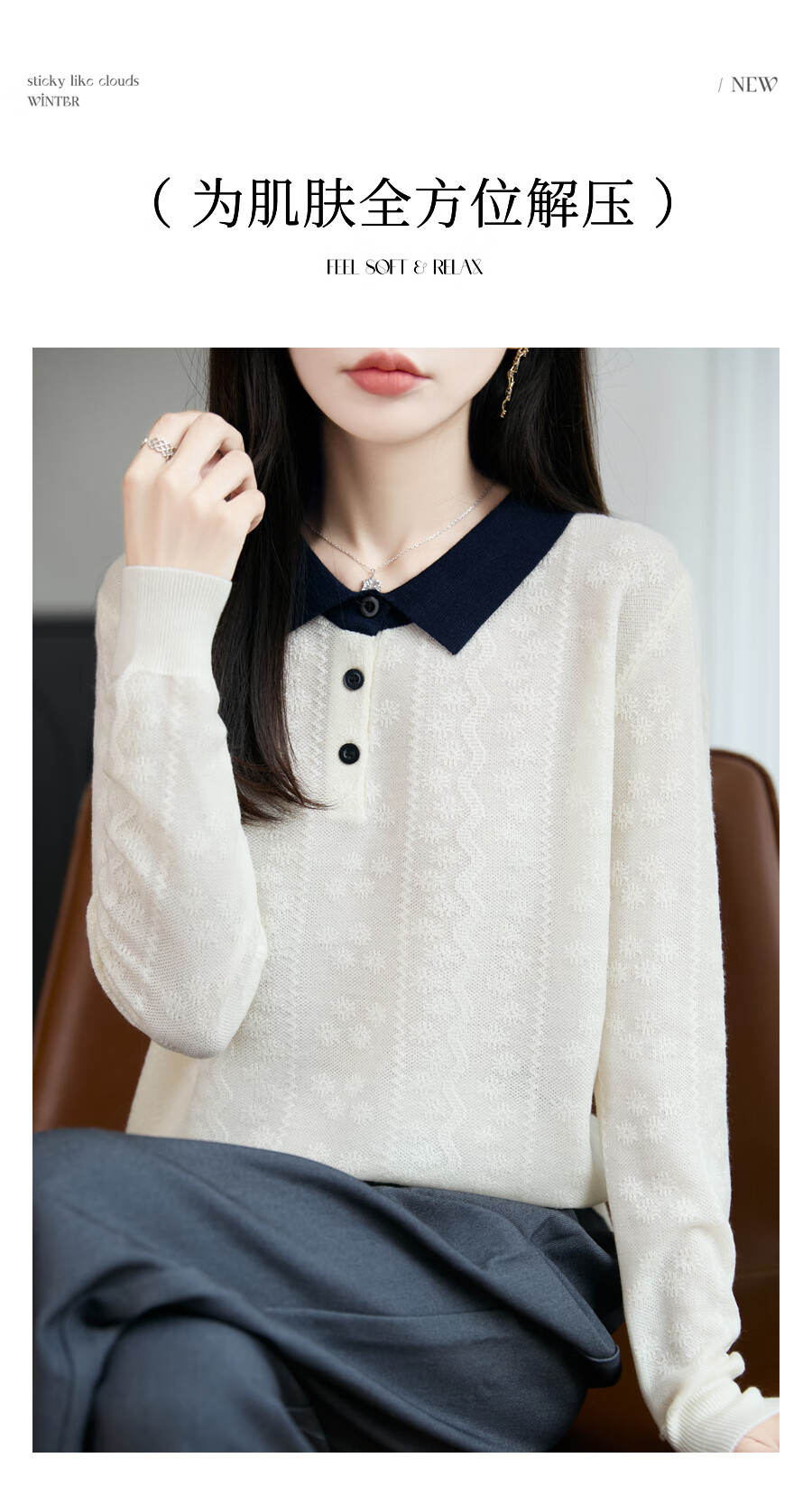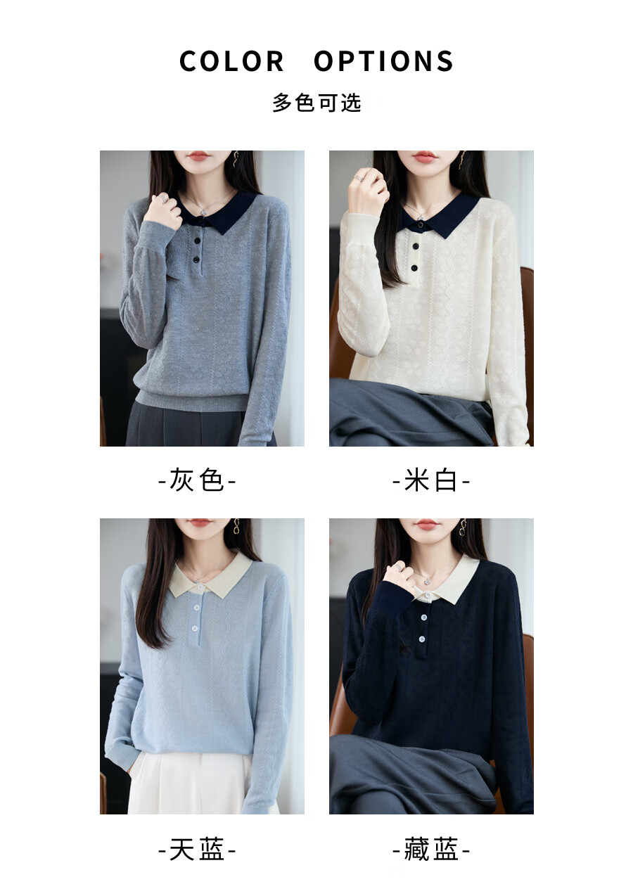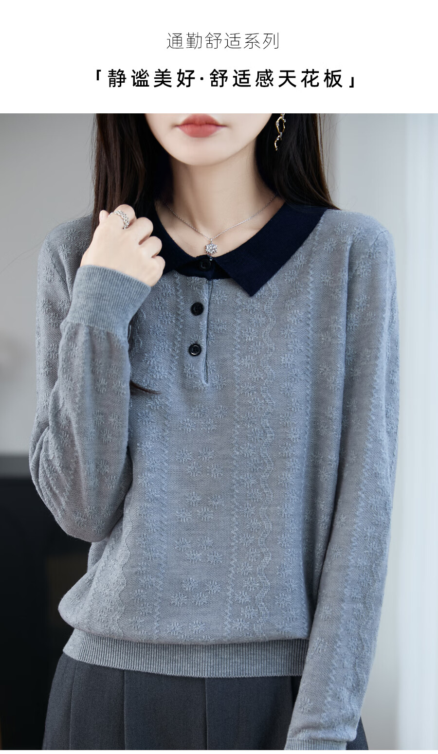 香影芬针织衫女娃娃领套头毛衣女2025秋冬新款洋气翻领宽松外穿打底衫女 蓝色 L (建议105-115斤)