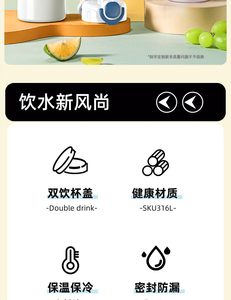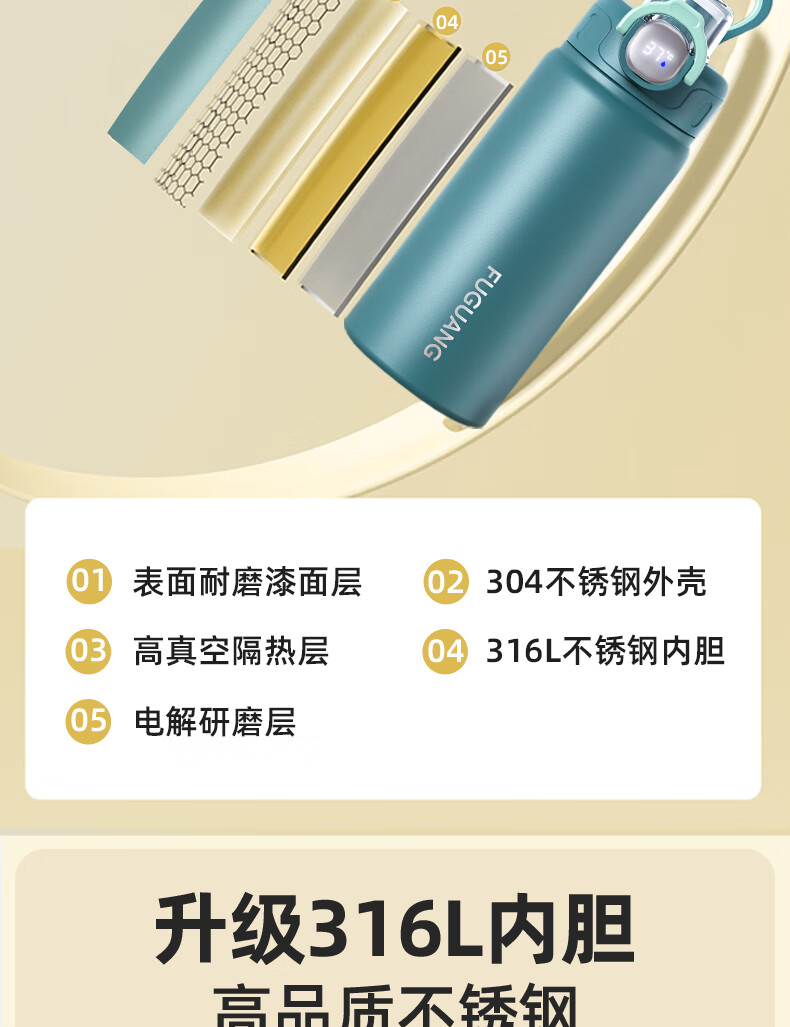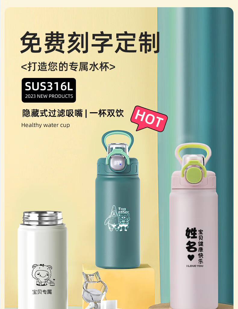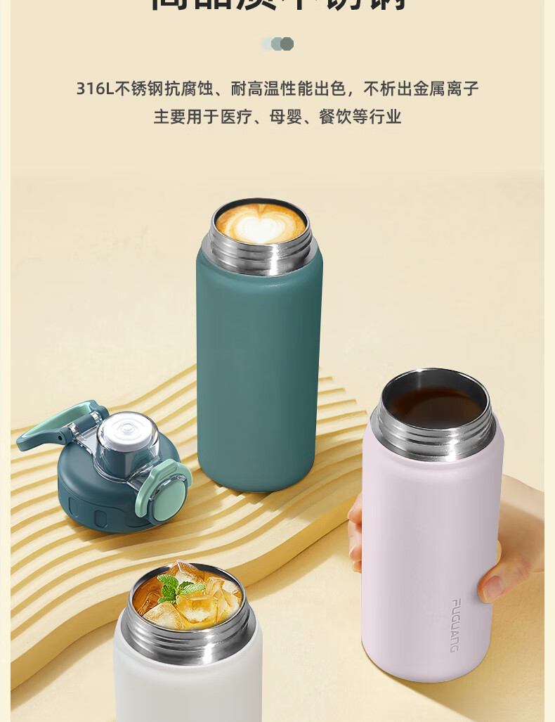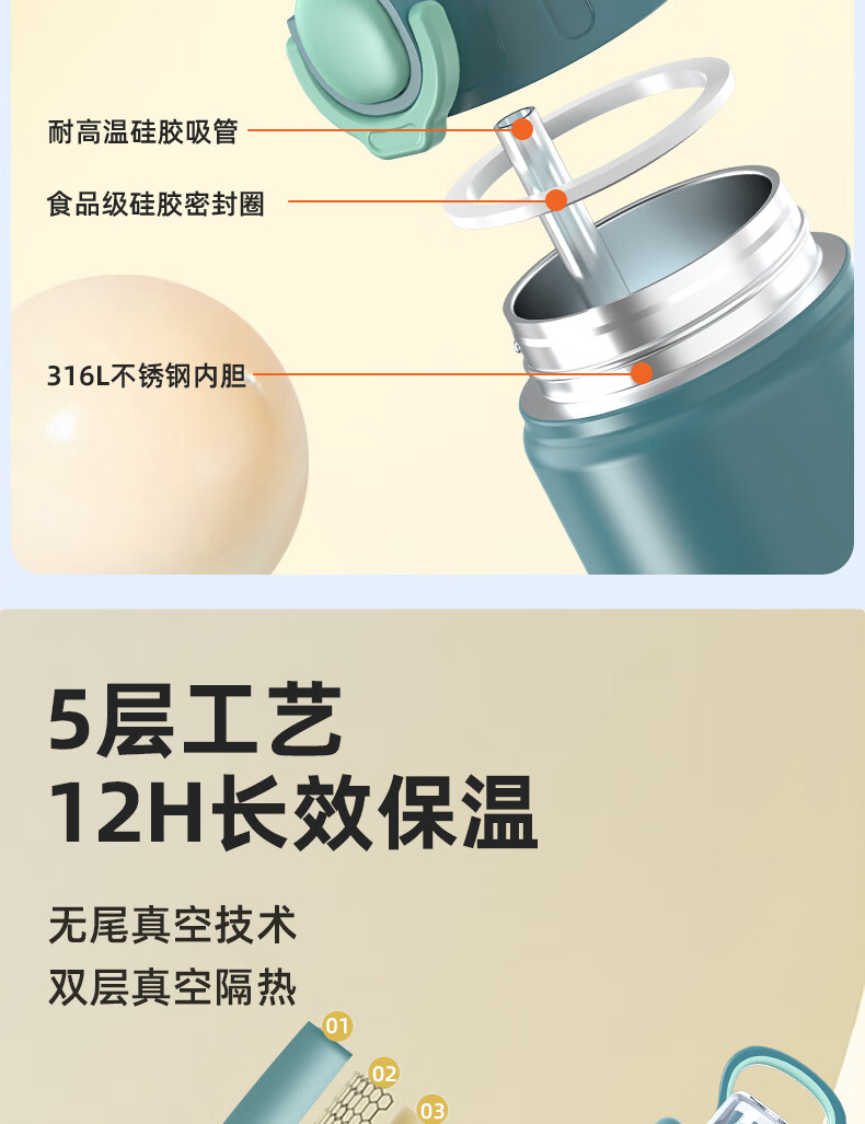 富光儿童保温杯316L带吸管小学生上学专用水杯男孩女孩2025新款水杯 (升级滤网吸管+升级316L)白色600ml