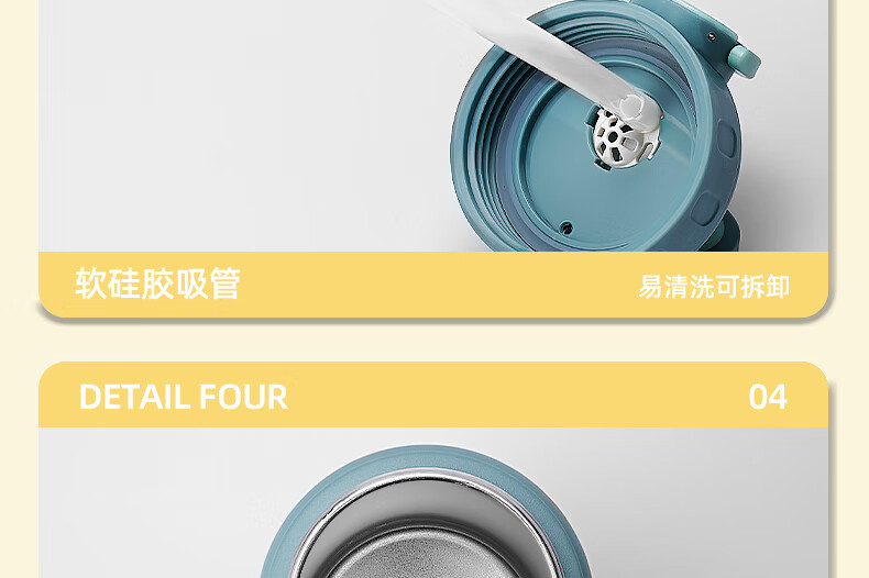 款卡通动物浮球杯316不锈钢保温吸管杯 奶油小熊--黄色 600ml