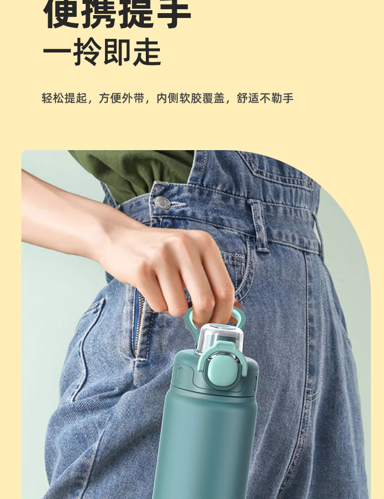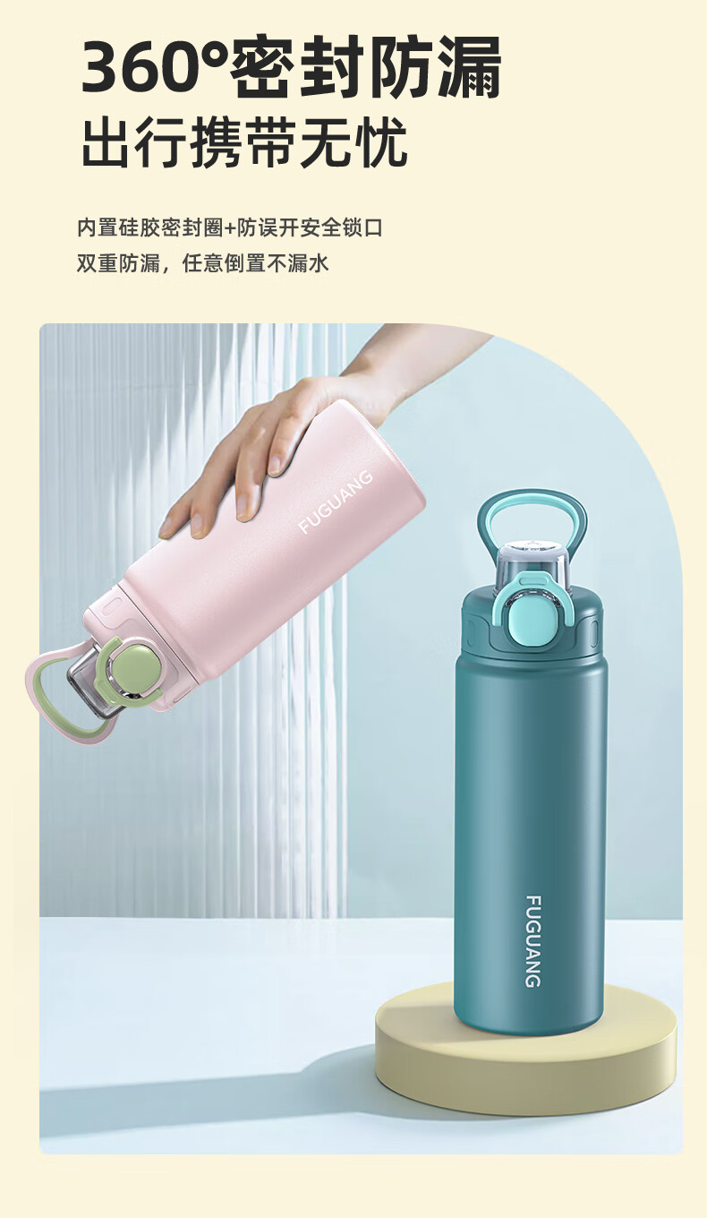 富光保温杯大容量水杯女2025新款高颜值不锈钢户外便携水壶保冷杯子 温柔粉1000ML-316L不锈钢内胆