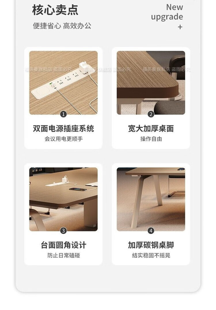 弘星隆会议桌长桌会议室家具办公桌椅组合简约现代商务洽谈大小型培训桌 1.6*0.8米会议桌