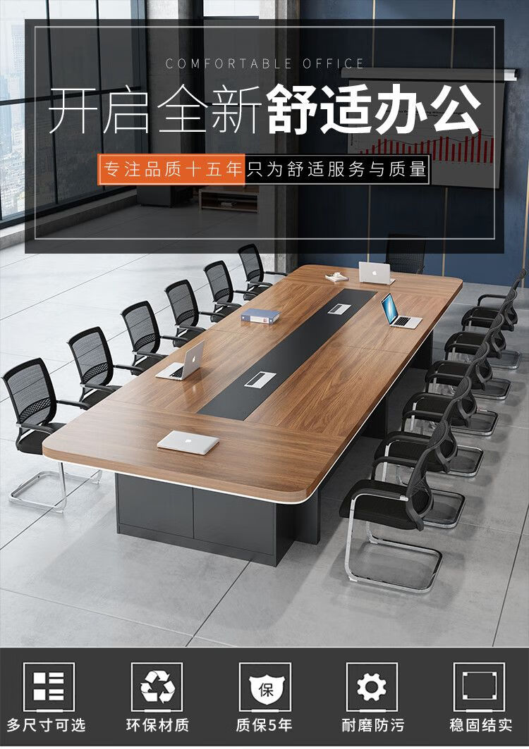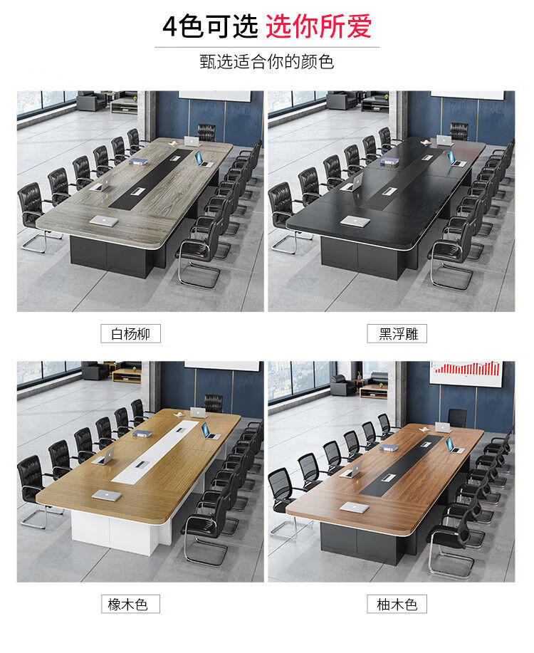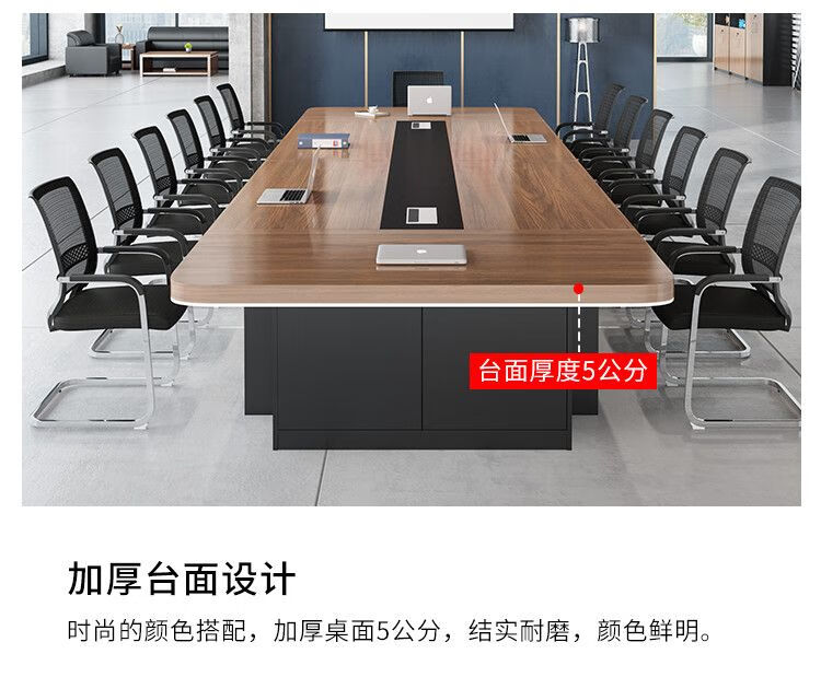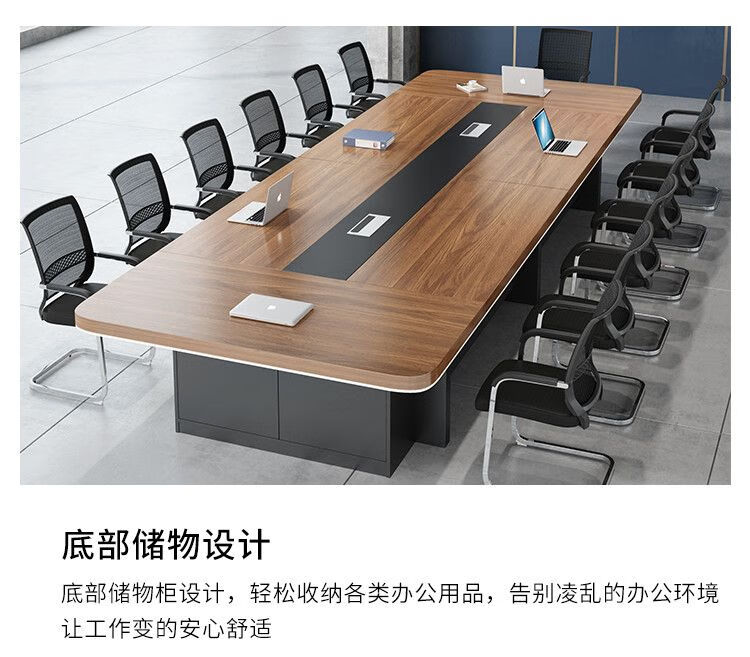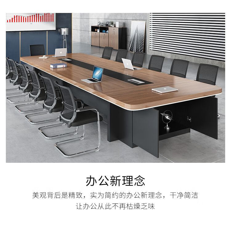 弘星隆办公家具新款大型会议桌长桌简约现代办公桌会议室桌椅组合圆角 2.2*1.0(加厚带储物柜)