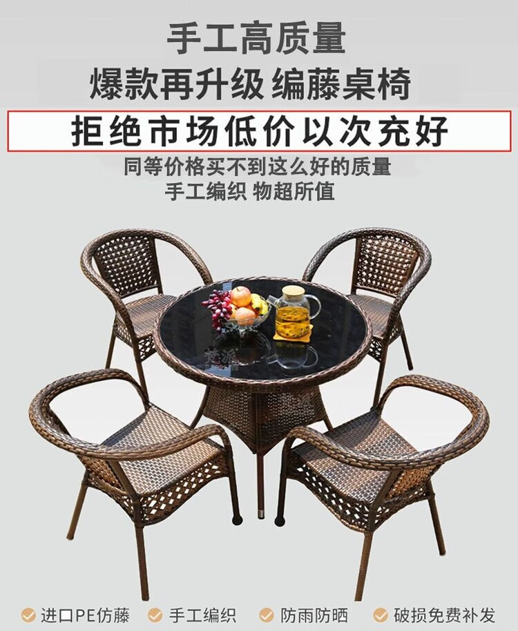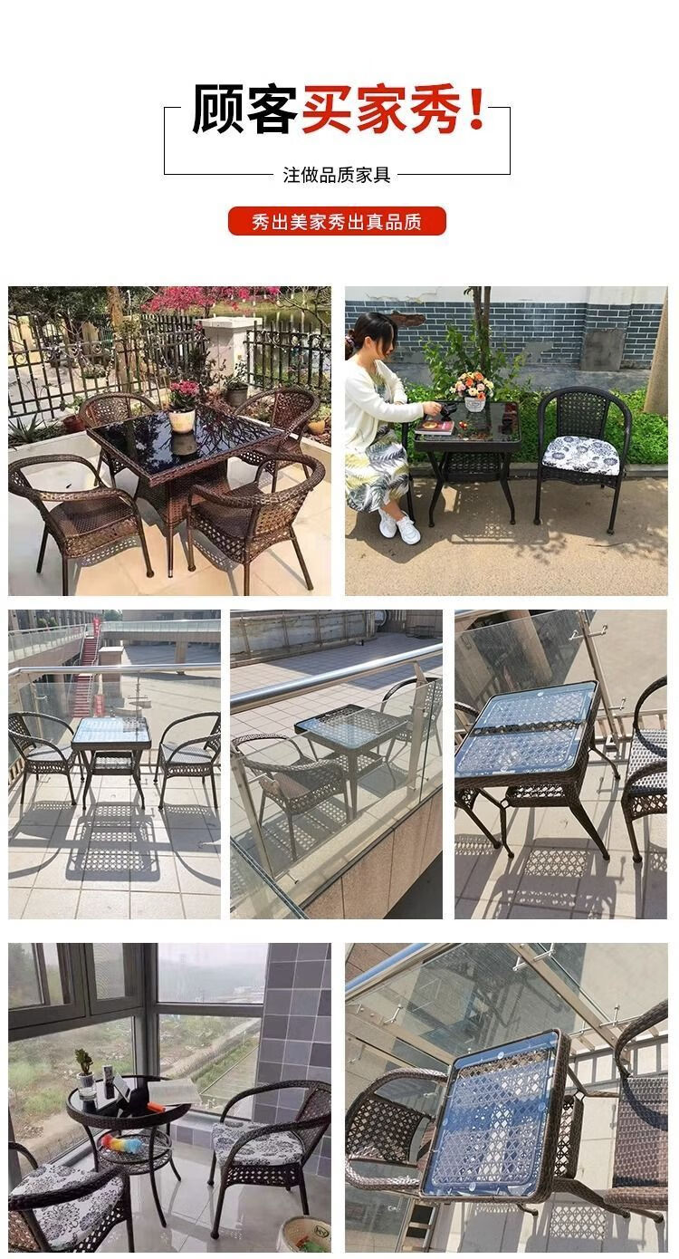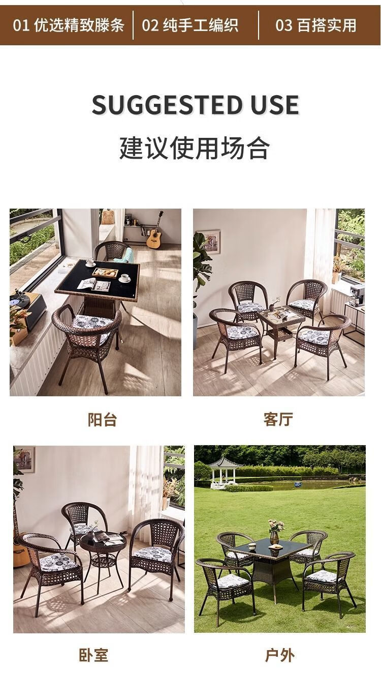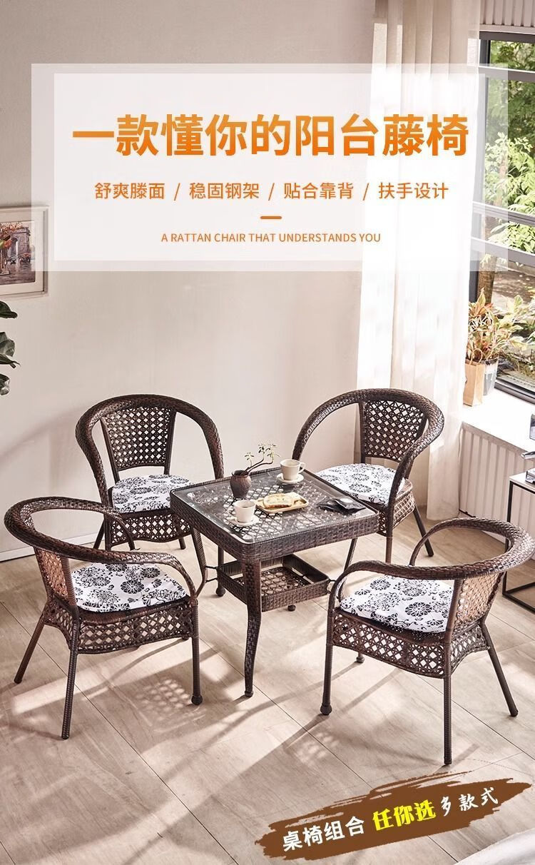弘星隆阳台休闲桌椅三件套组合休闲茶桌椅庭院藤椅子室外藤编户外桌椅 升级款2椅+64透明方桌+坐垫 带坐垫