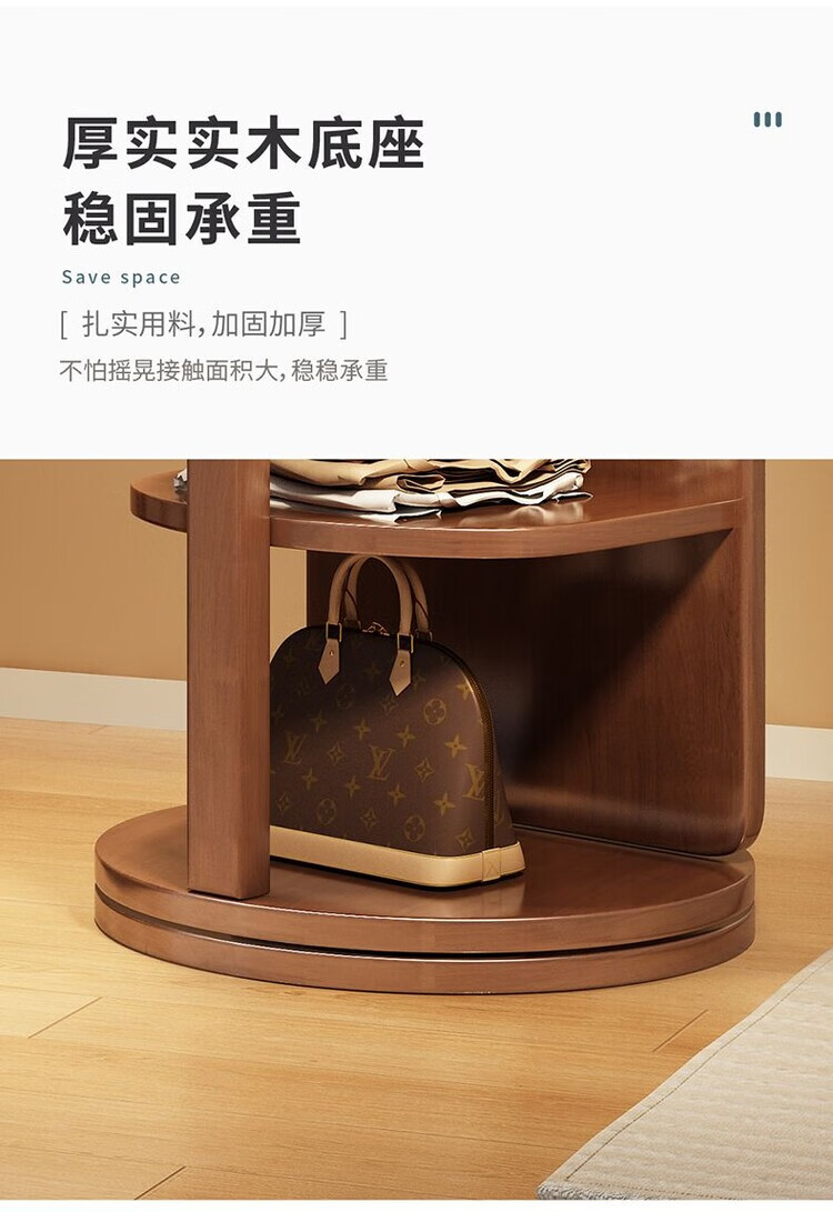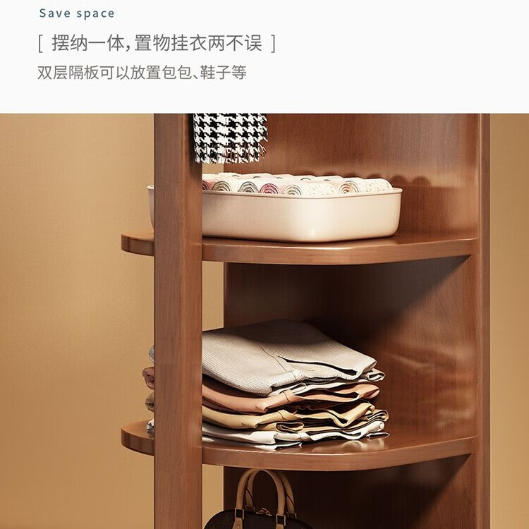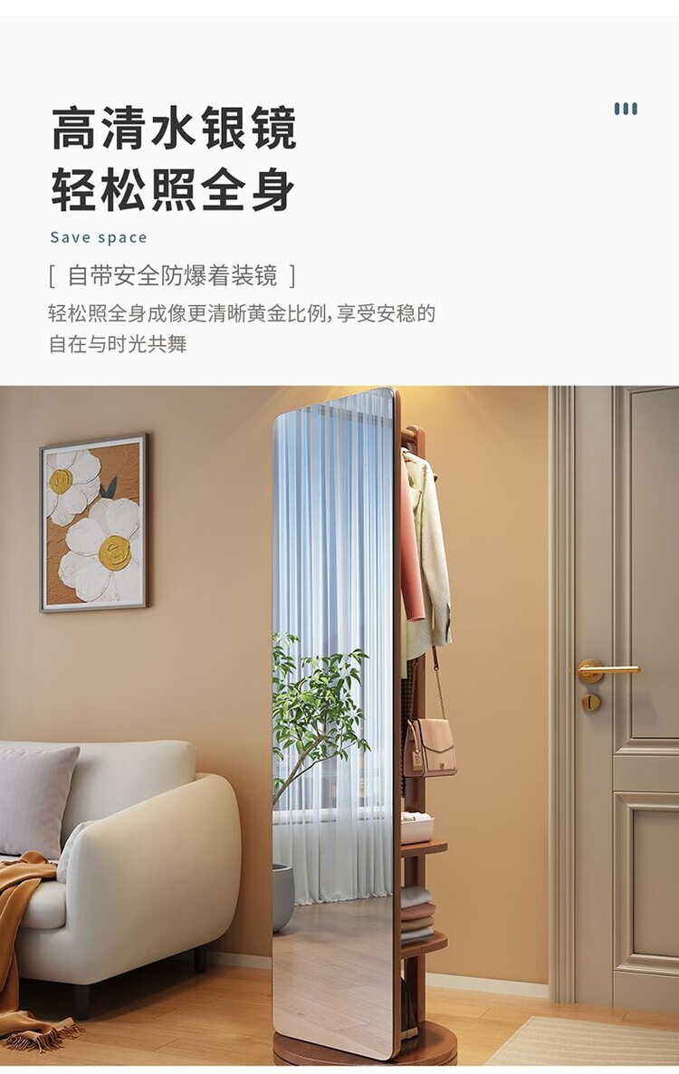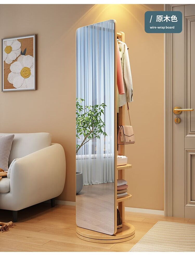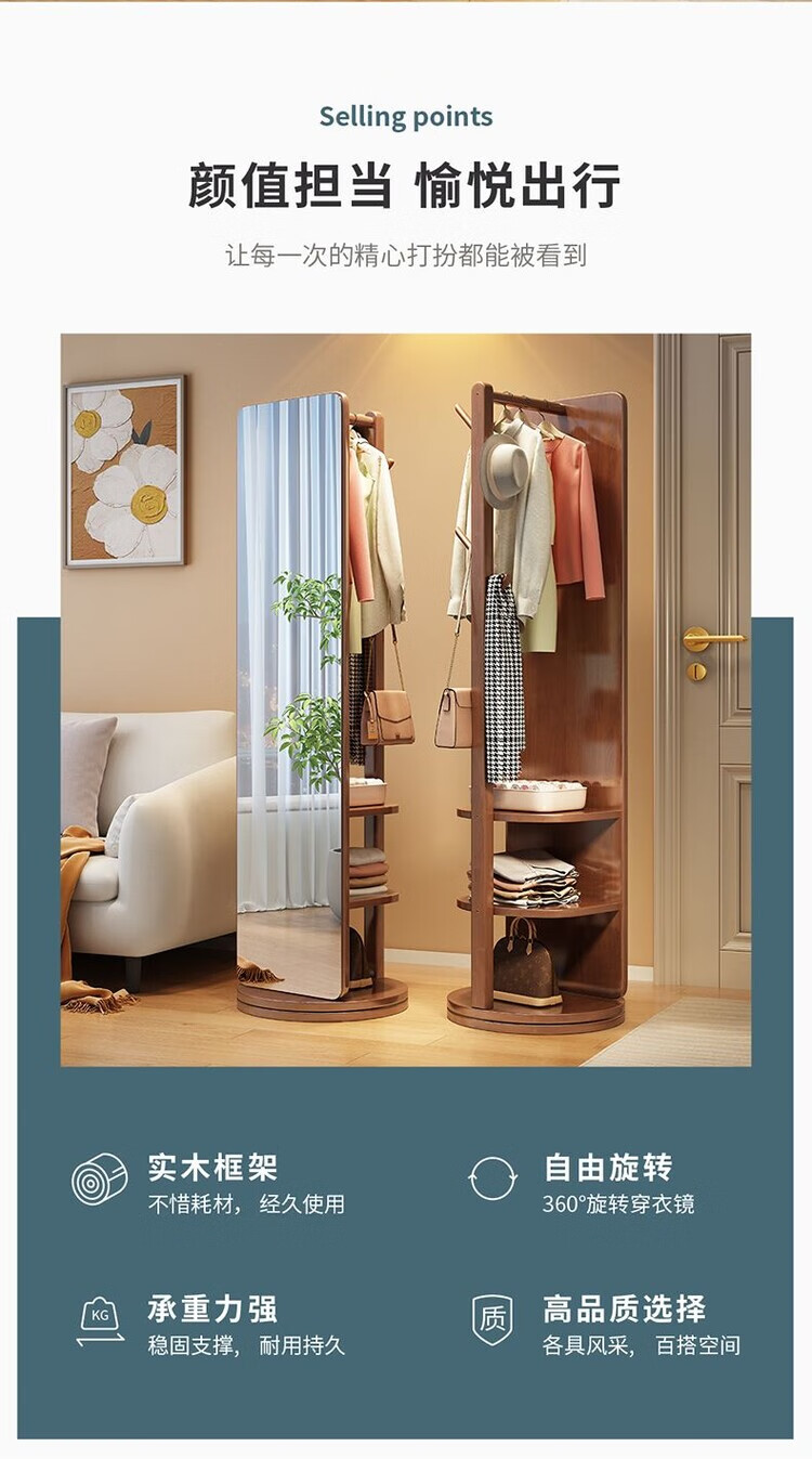 弘星隆实木穿衣镜家用可旋转落地镜卧室一体全身镜简约衣服收纳架 胡桃色 501底盘款(普通款)