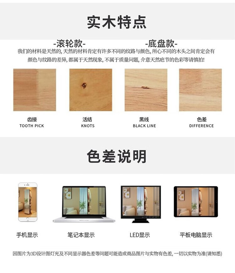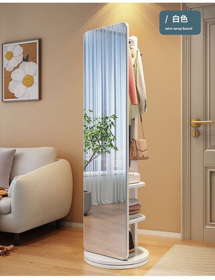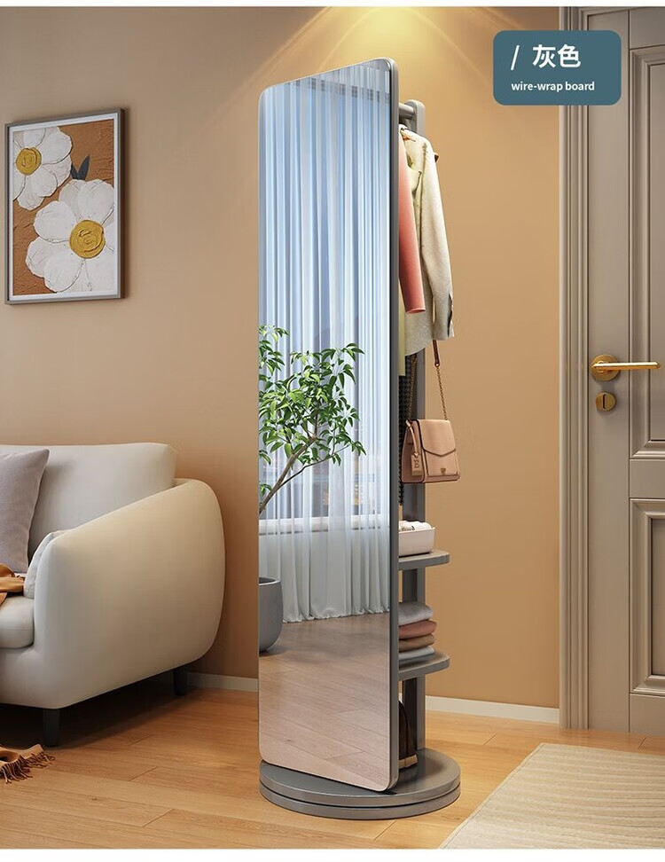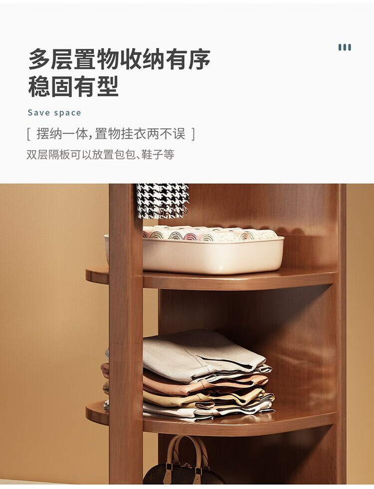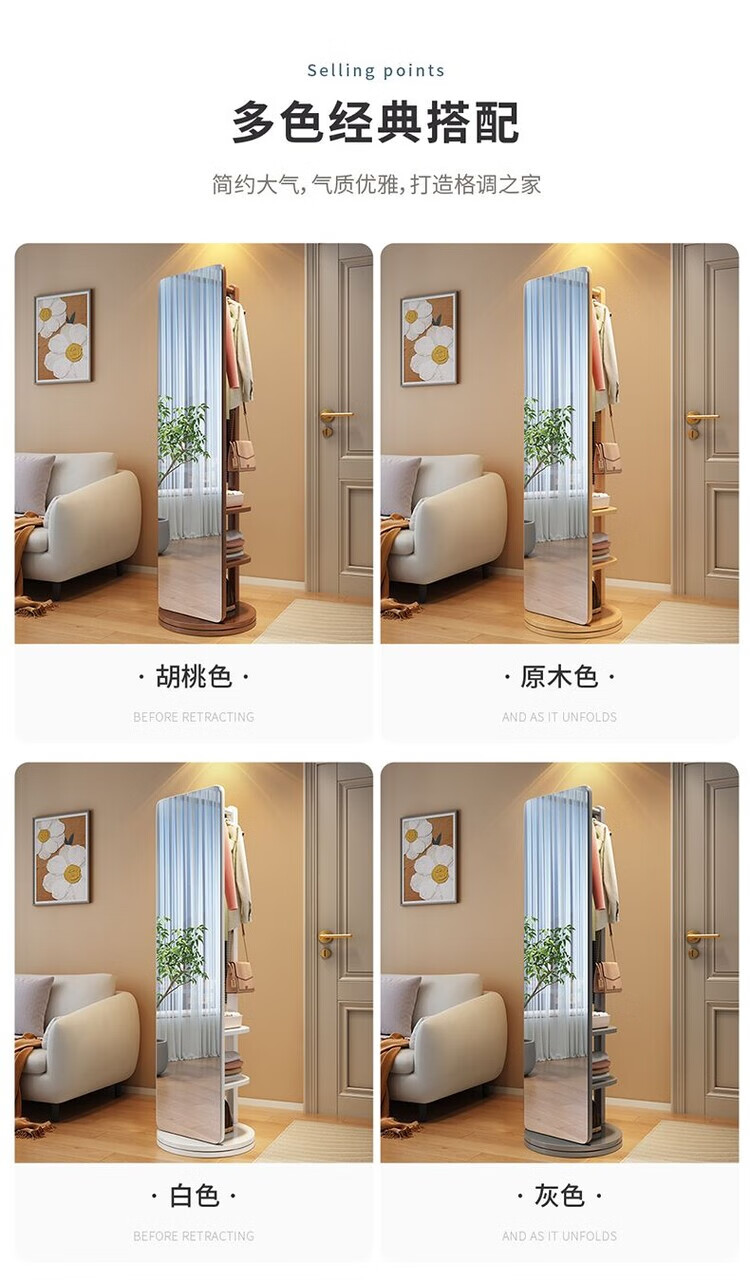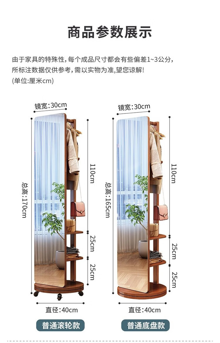 弘星隆实木穿衣镜家用可旋转落地镜卧室一体全身镜简约衣服收纳架 胡桃色 501底盘款(普通款)