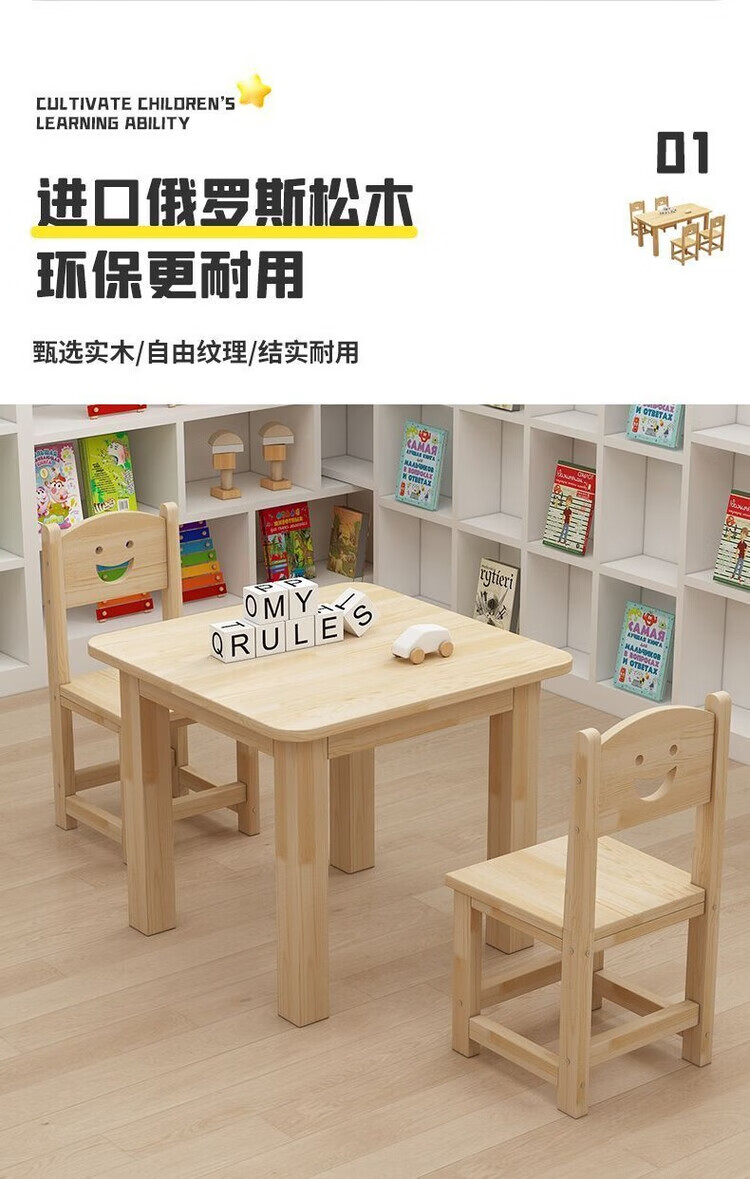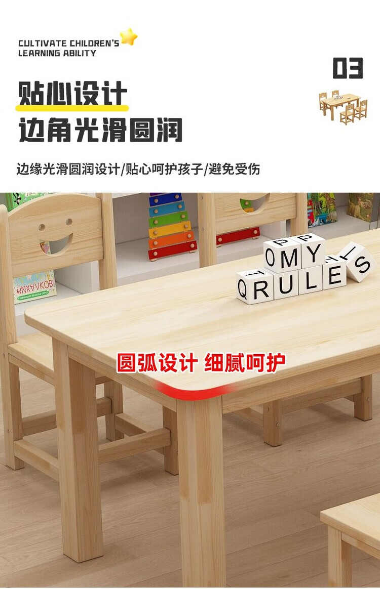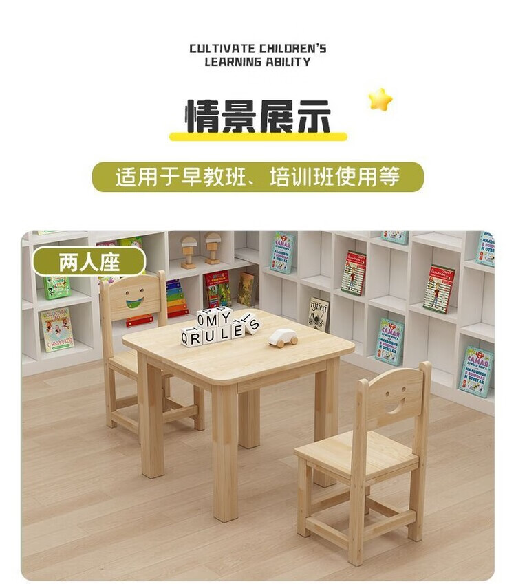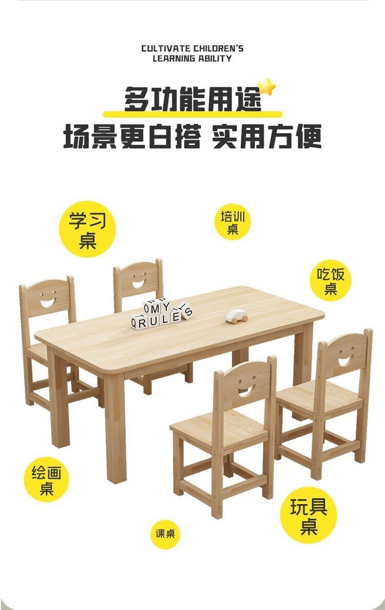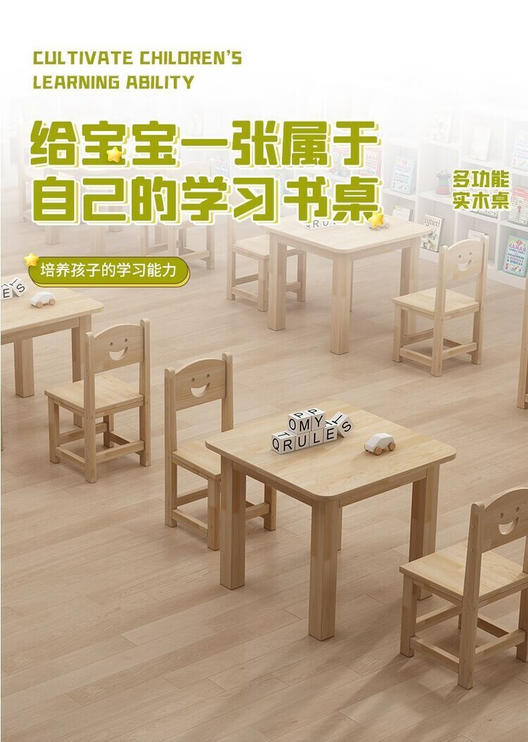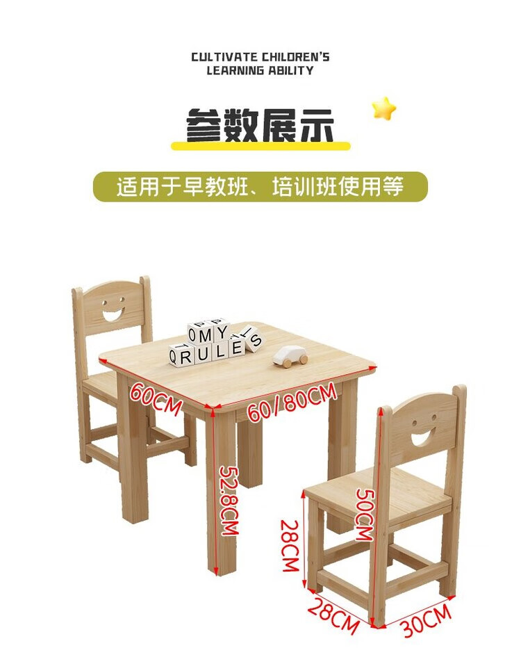 欣慕雅幼儿园桌椅儿童学习实木桌子家用可书写组合套装培训班早教学习桌 加厚实木桌60*60*52.8