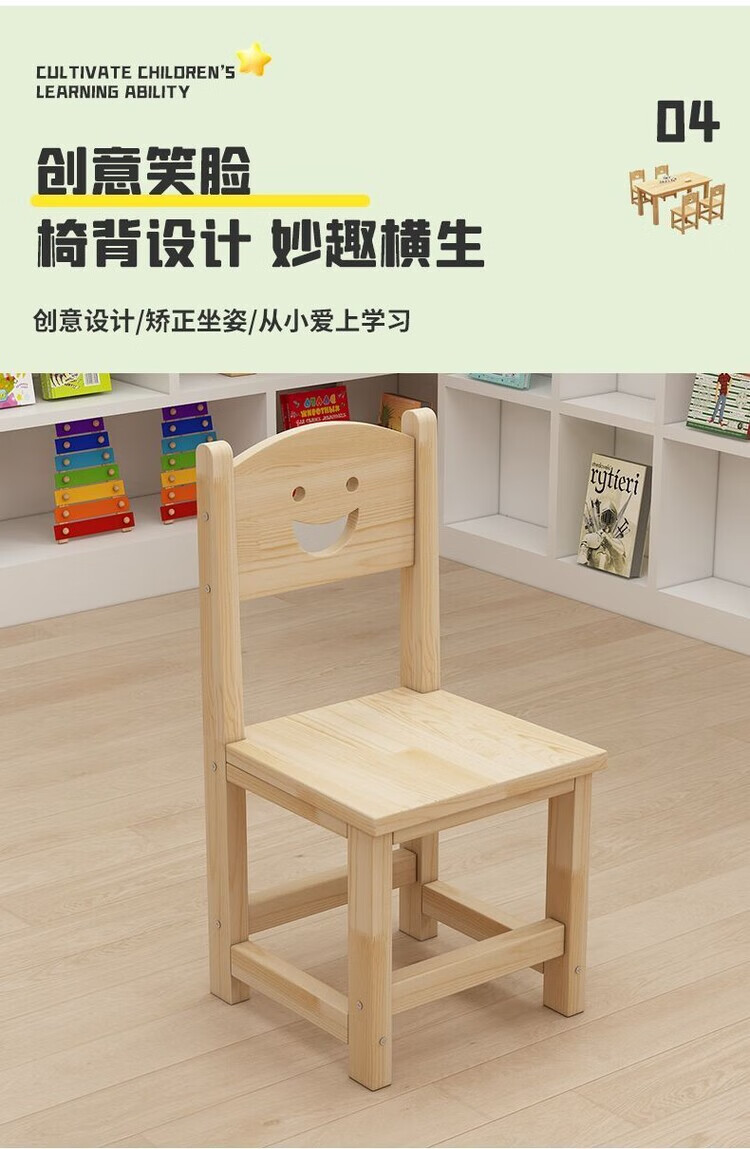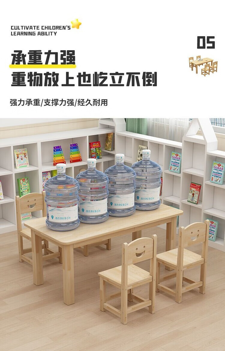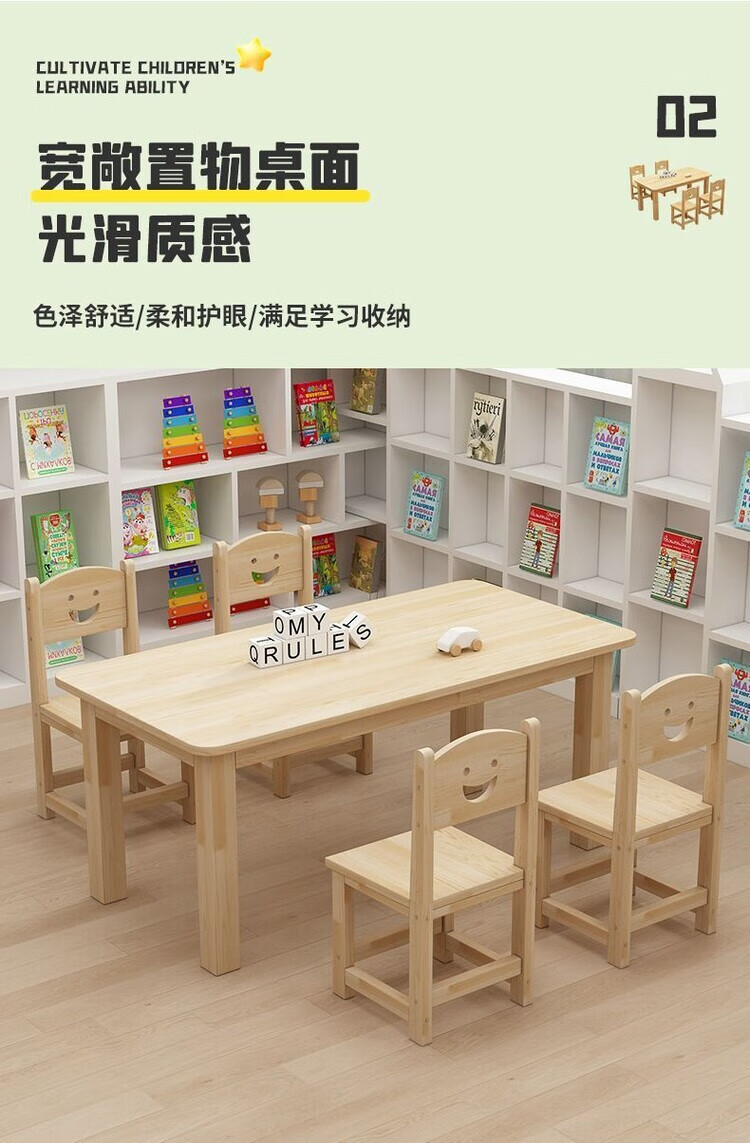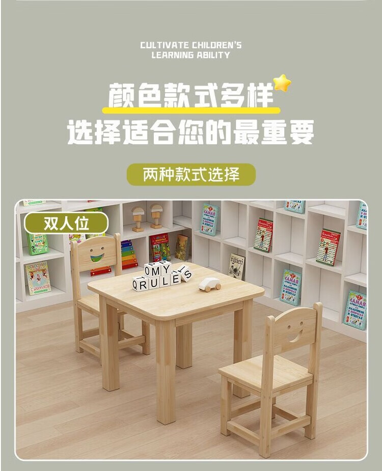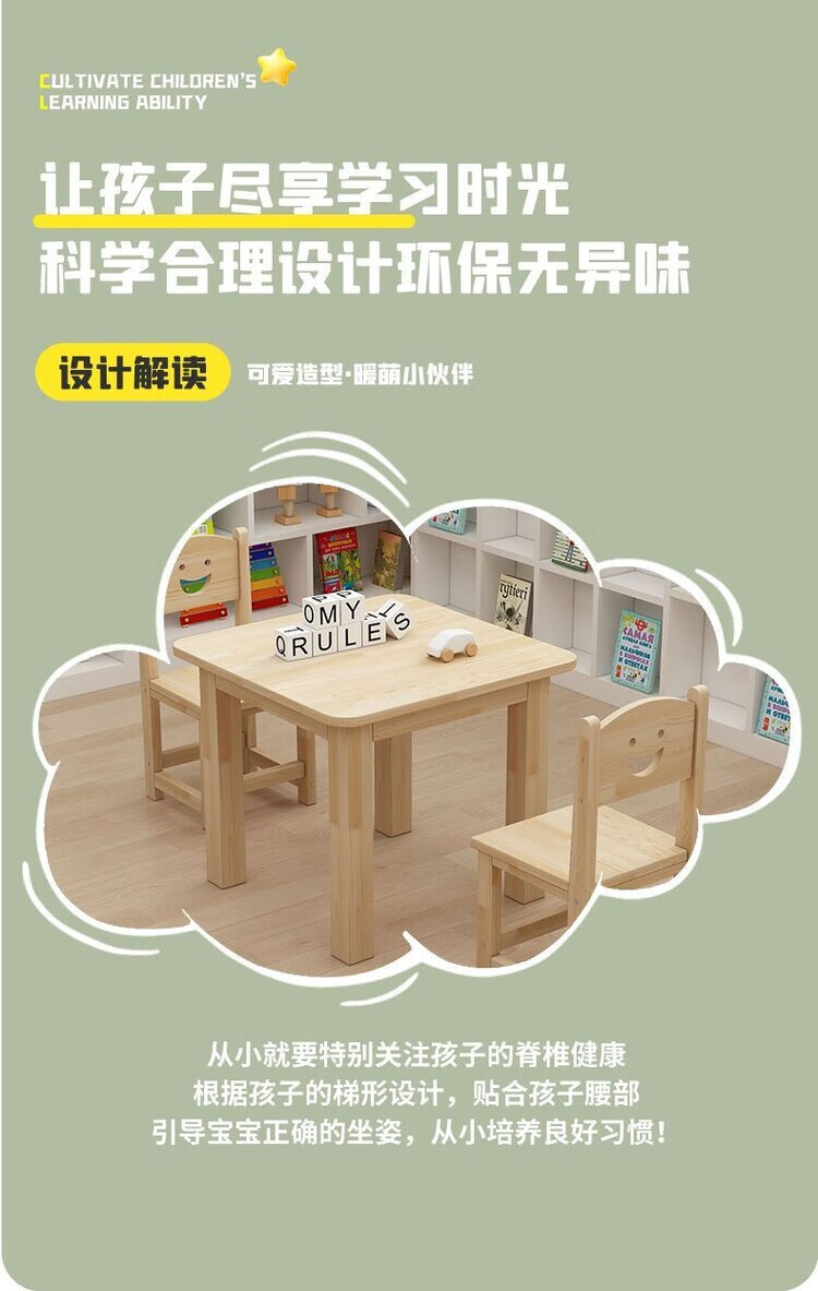 欣慕雅幼儿园桌椅儿童学习实木桌子家用可书写组合套装培训班早教学习桌 加厚实木桌60*60*52.8