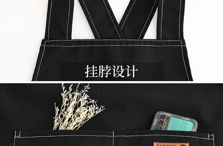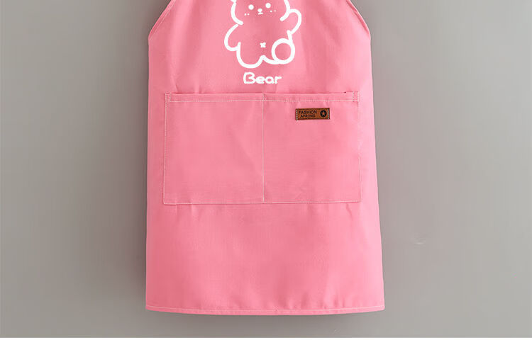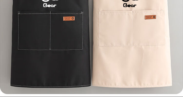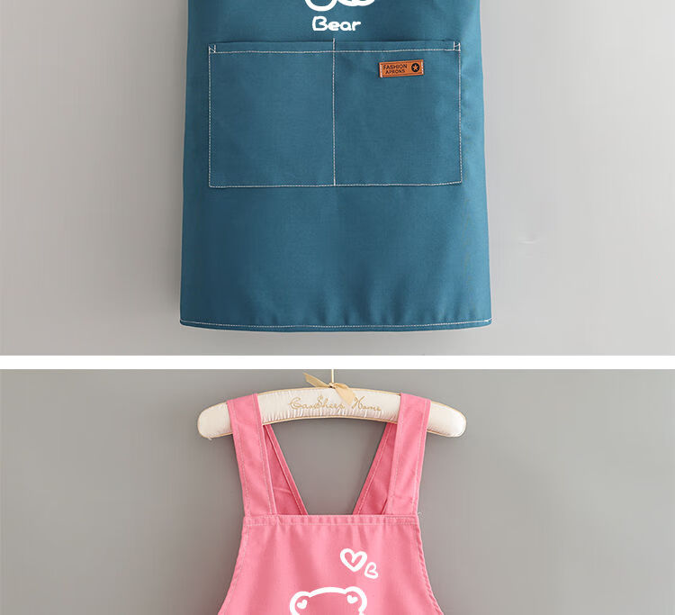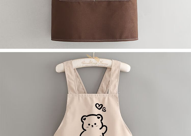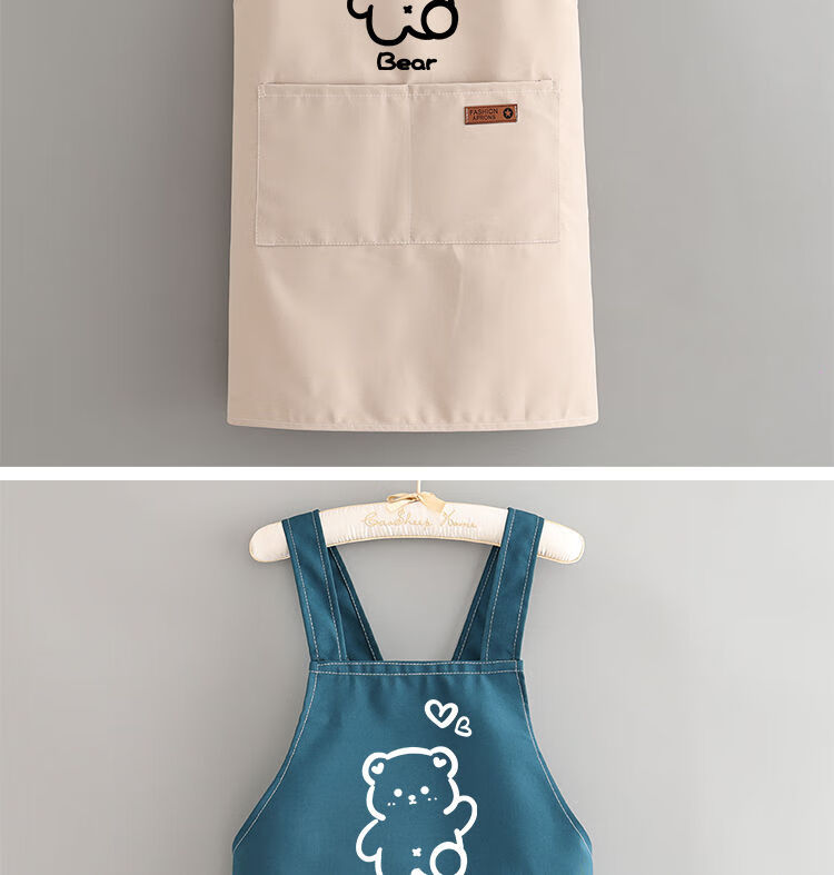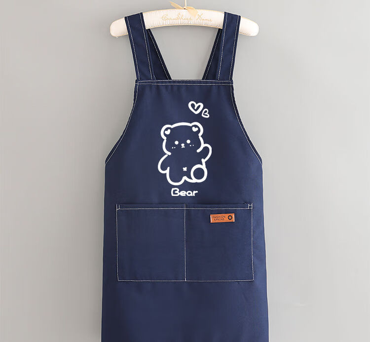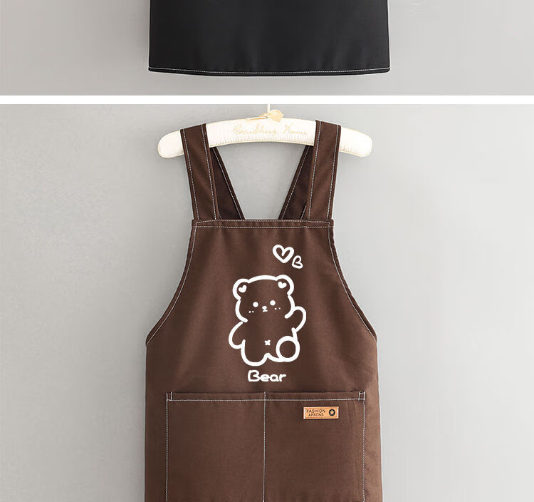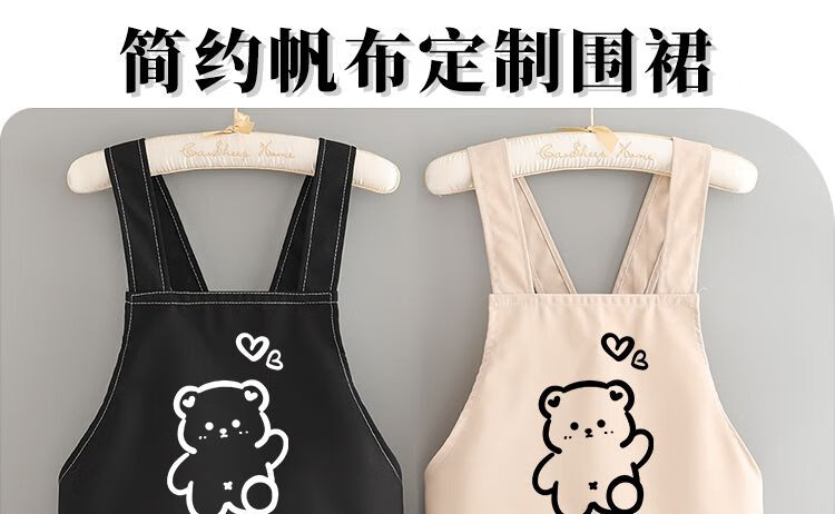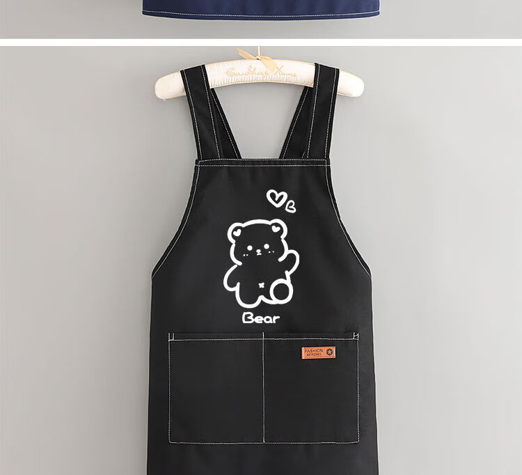 简漾洋气可爱围裙厨房防油家用新款工作服餐饮时尚印字做饭围腰女简约 拜拜熊黑色