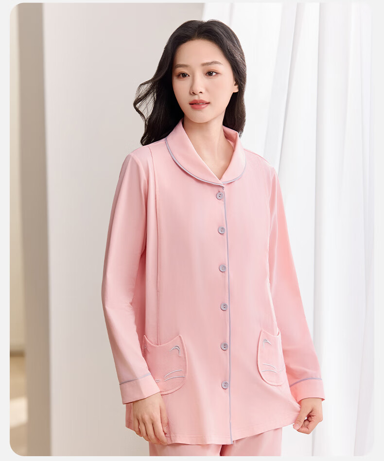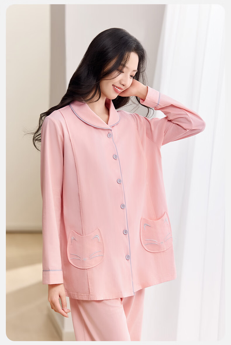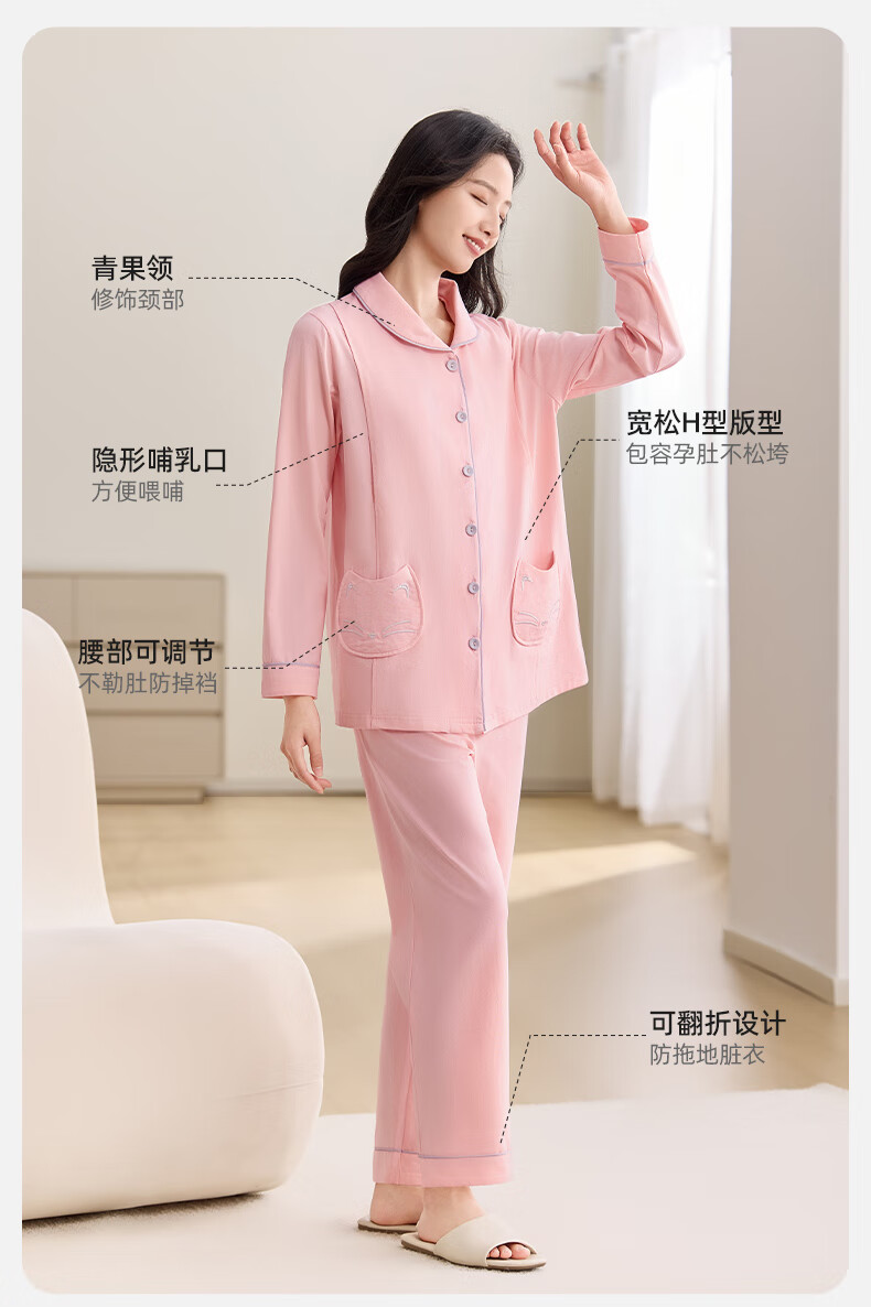 十月结晶月子服春秋薄款产妇棉产后孕妇睡衣哺乳家居服套装粉色 XL码京东自营