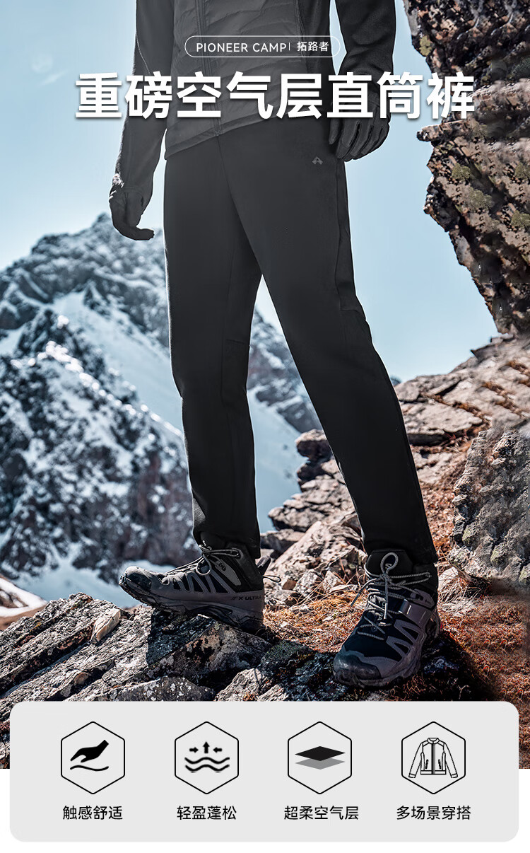 拓路者休闲裤男弹力运动直筒裤男士空气棉长裤针织卫裤 黑色 XL