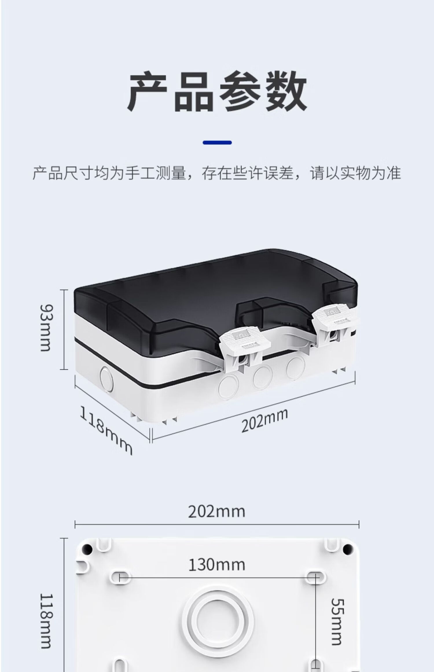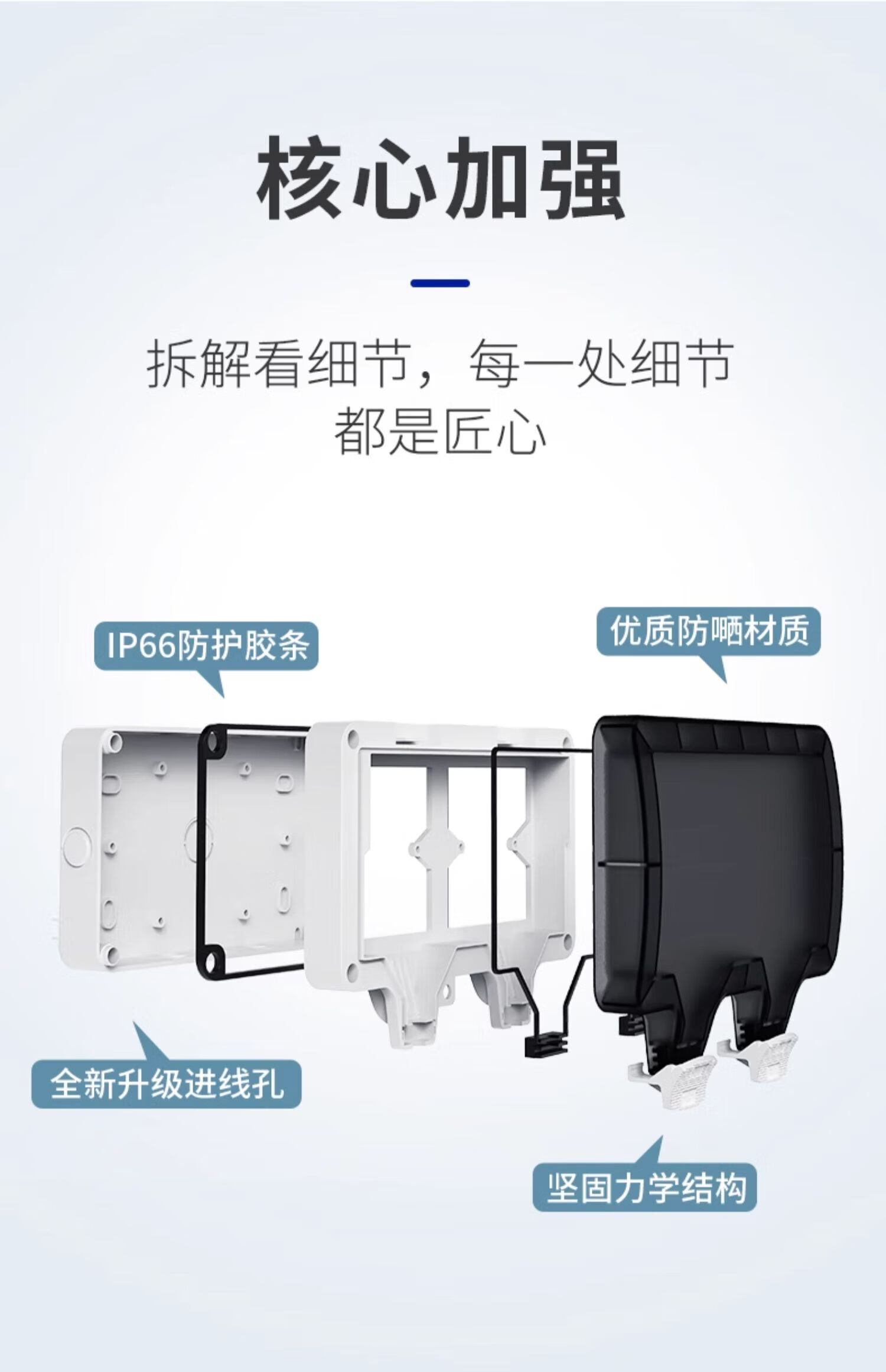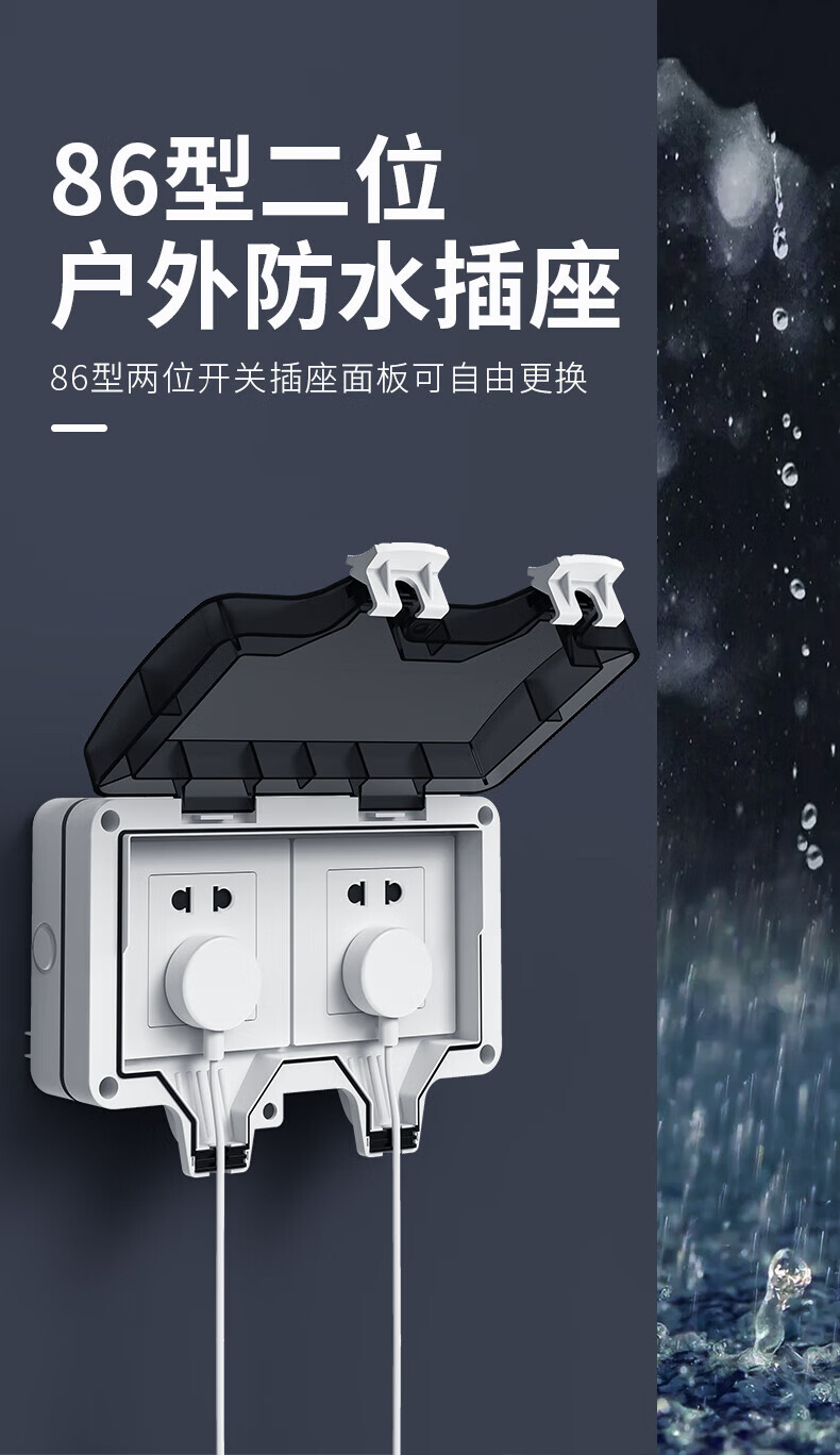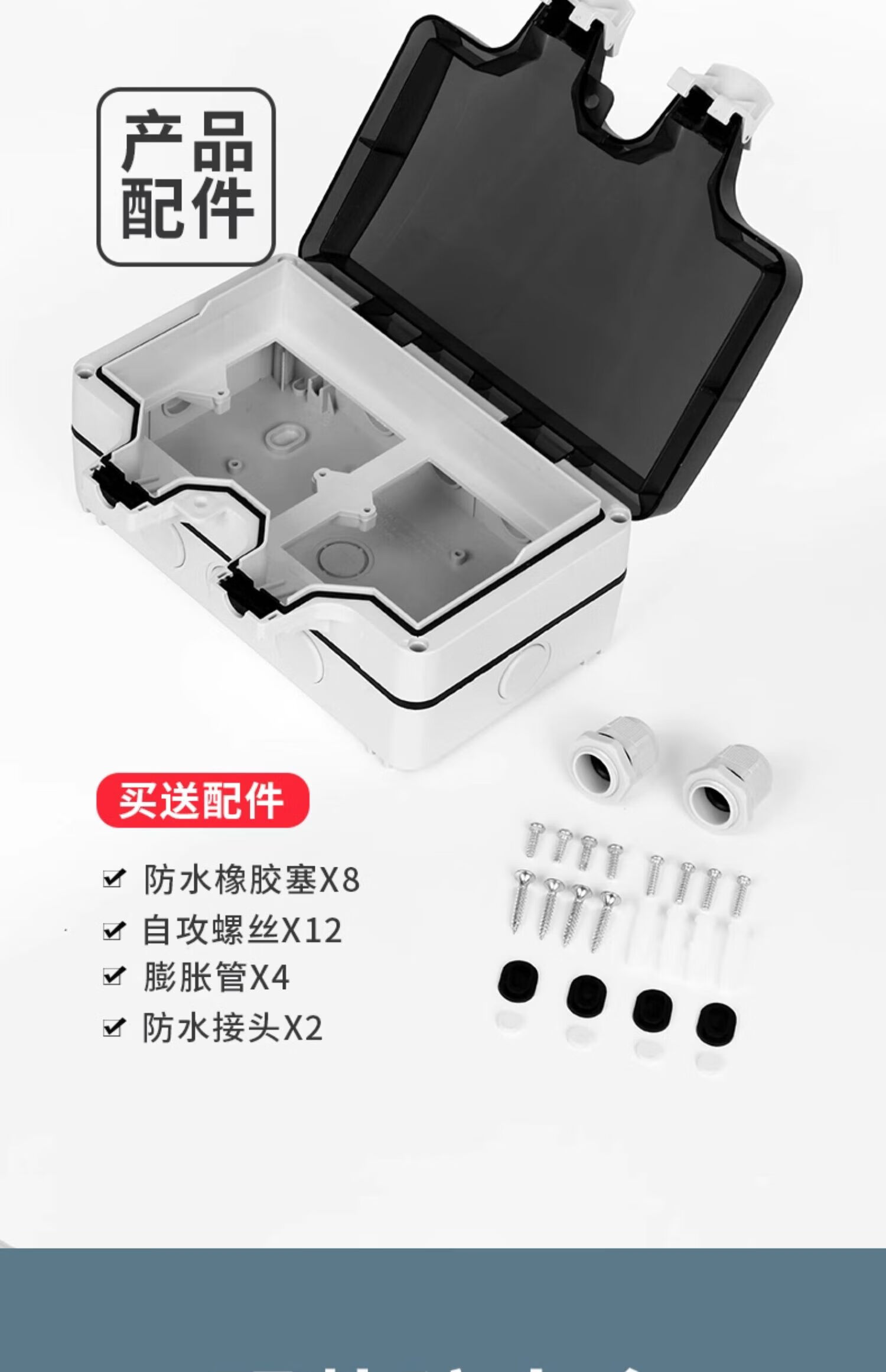 国际电工(FDD)户外防水插座室外接线板排插IP66全密封双联二位86型插座防雨盒 暗装双位防水盒空盒