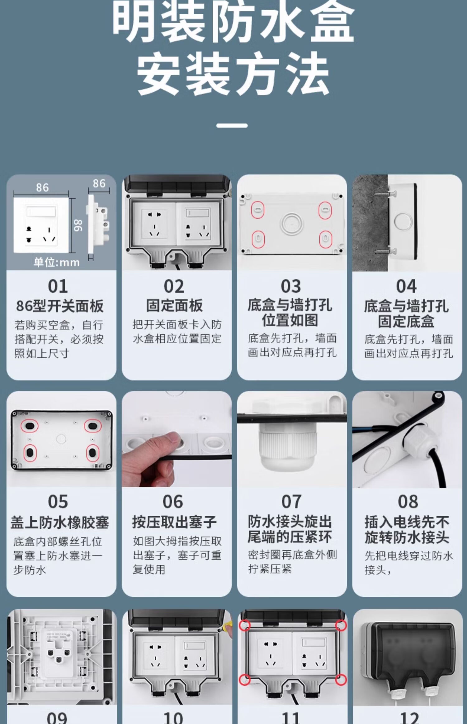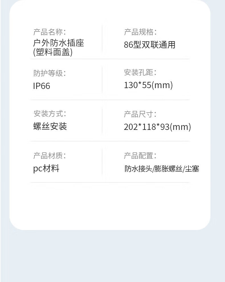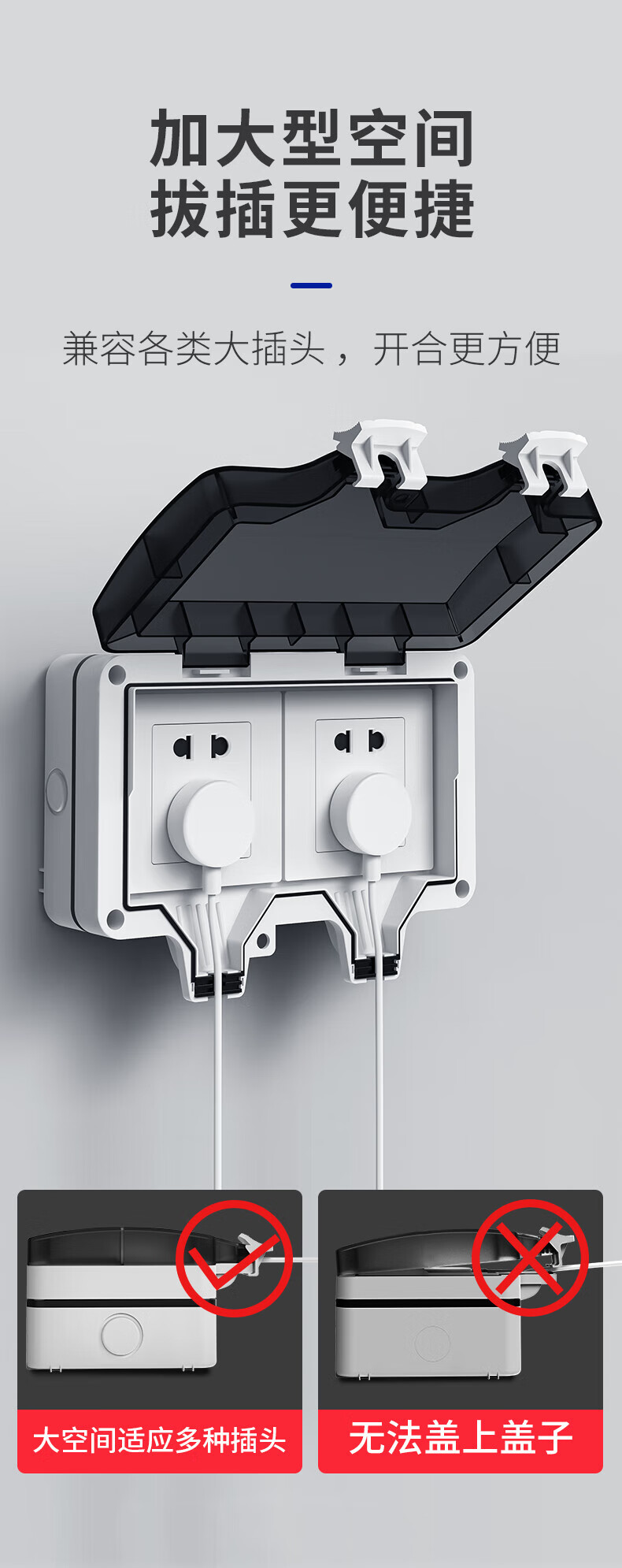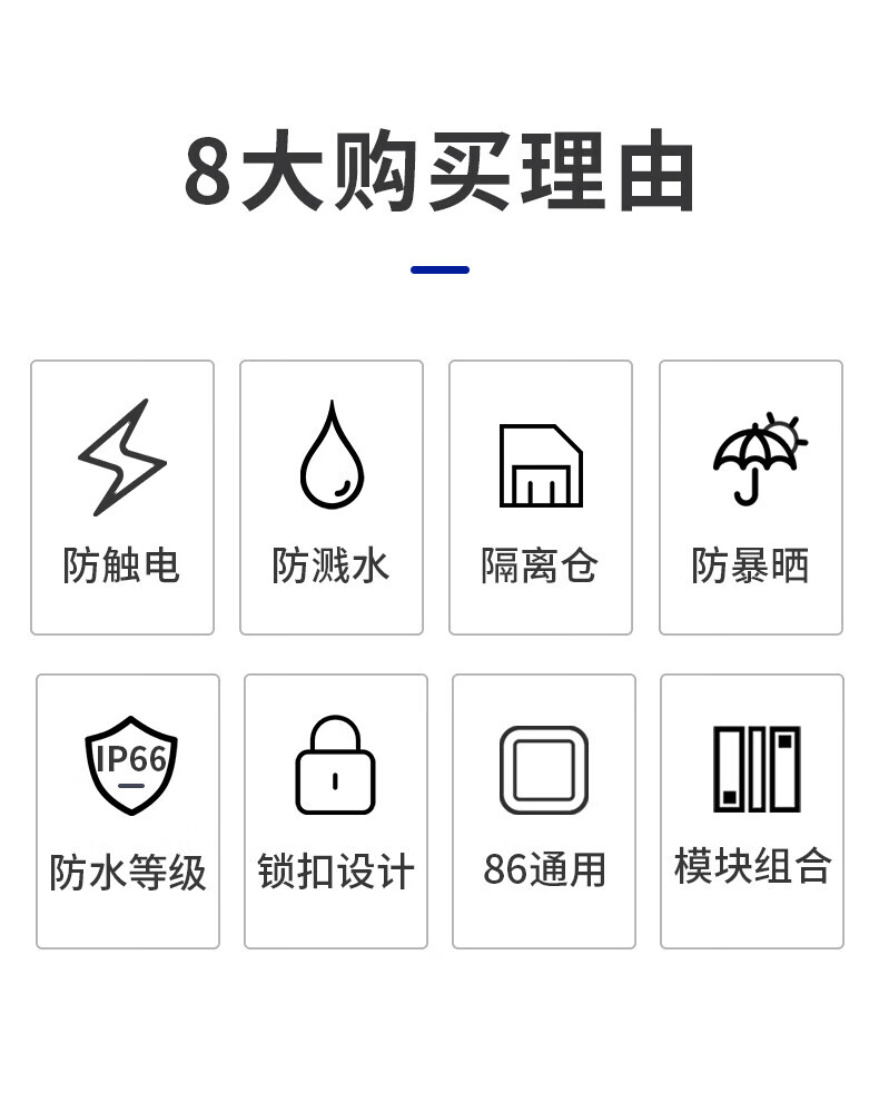 国际电工(FDD)户外防水插座室外接线板排插IP66全密封双联二位86型插座防雨盒 暗装双位防水盒空盒