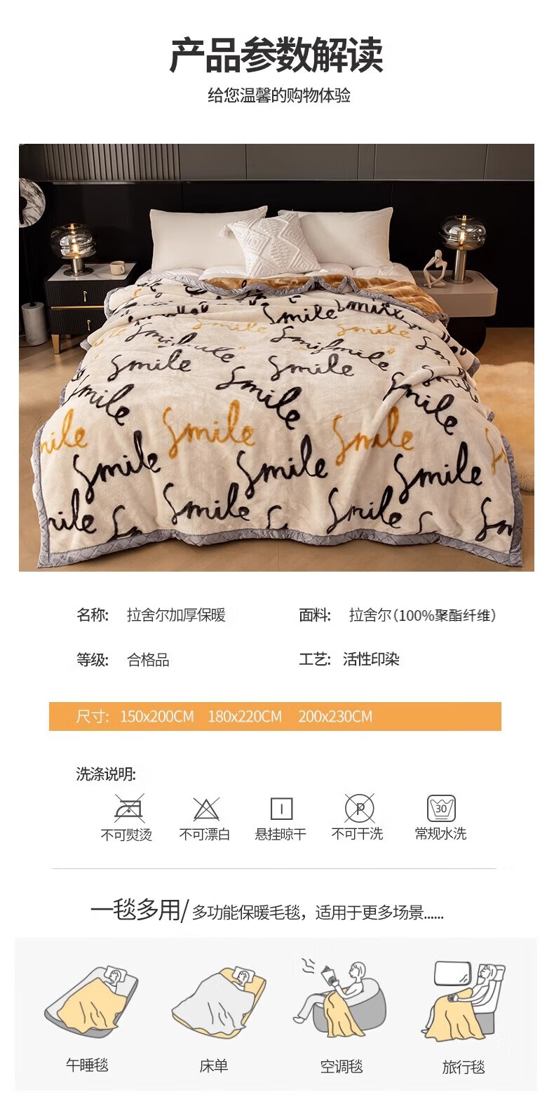猫人(MiiOW)拉舍尔毯子毛毯被 冬季加厚盖毯午睡毯珊瑚绒沙发小毯子被子 自由自在 150x200cm约4斤