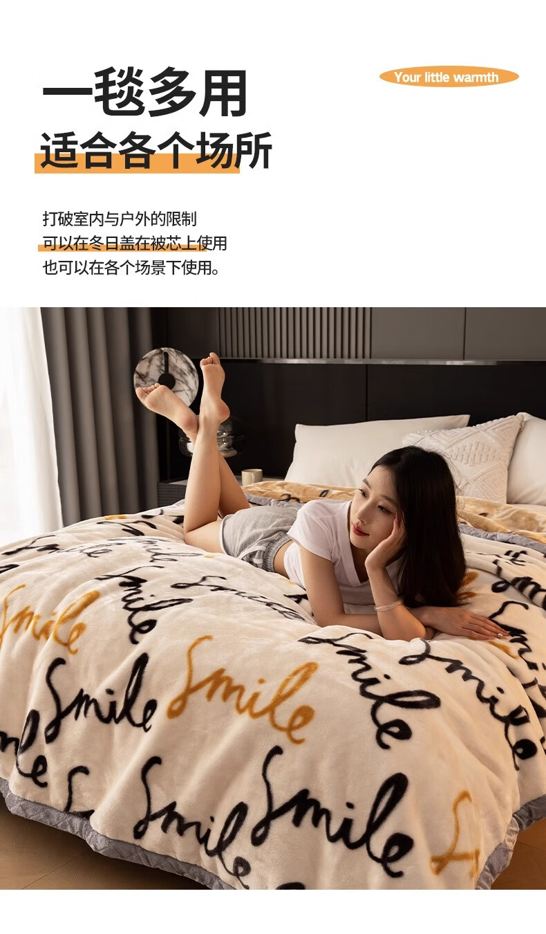 猫人(MiiOW)羊羔绒毛毯冬季加厚办公室午睡法兰珊瑚绒小毯子铺床沙发盖毯 卡其【塔芙绒+羊羔绒 双面植绒 一毯多用】 200*230cm【双人盖毯】