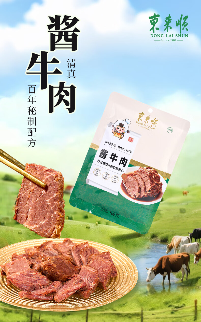 东来顺酱牛肉100g便捷包装真牛肉老卤慢炖不柴开袋即食老字号