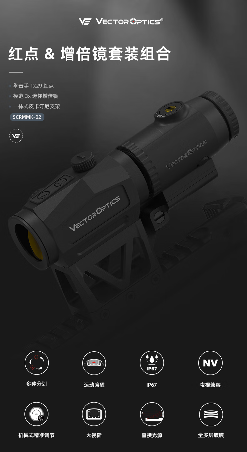 维特光学(VECTOROPTICS)拳击手红点瞄准镜增倍镜组合套装防水抗震瞄准器吃鸡SCRMMK-01