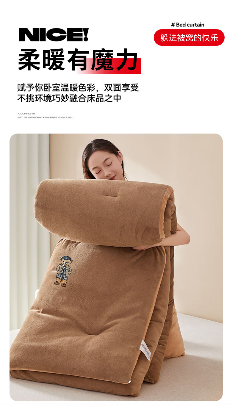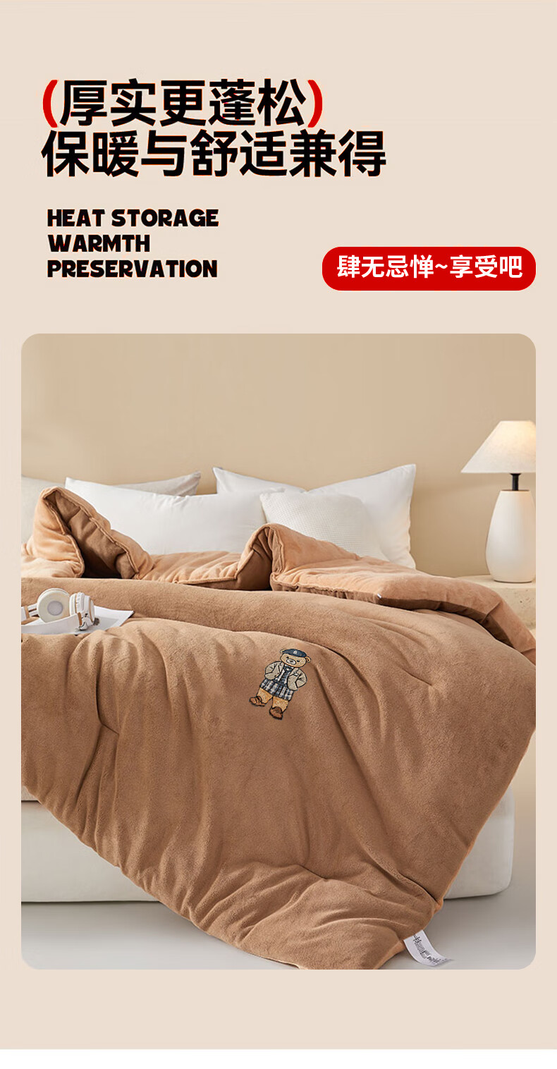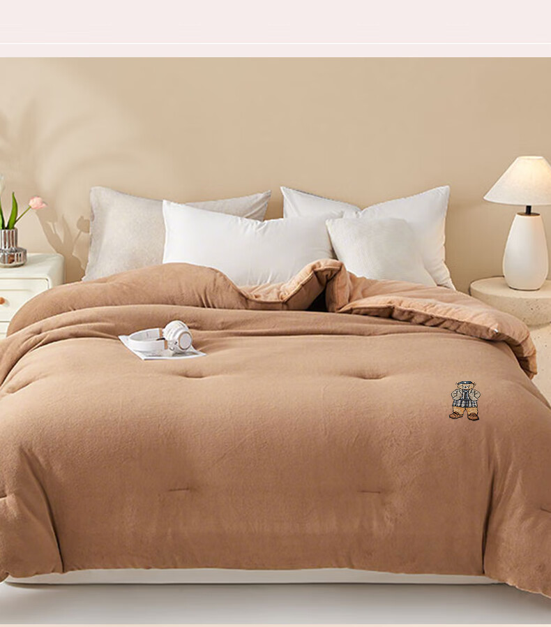 猫人(MiiOW)牛奶绒被套被芯冬被子 冬季加厚保暖棉被可拆洗单双人被褥春秋被 青沐-豆沙 冬被:200*230cm总重约10斤