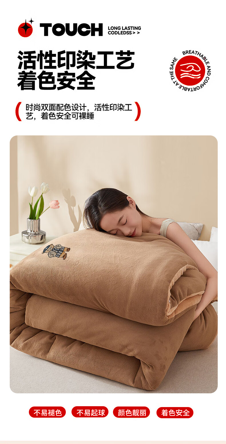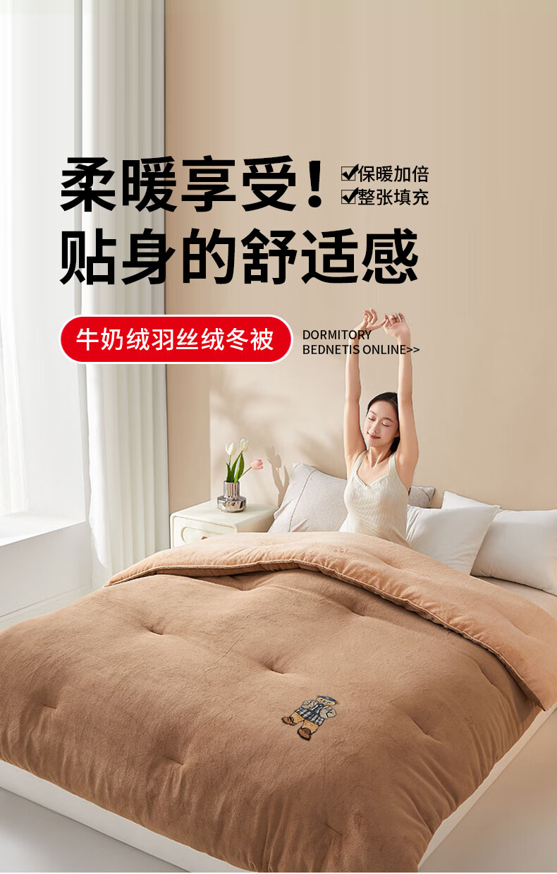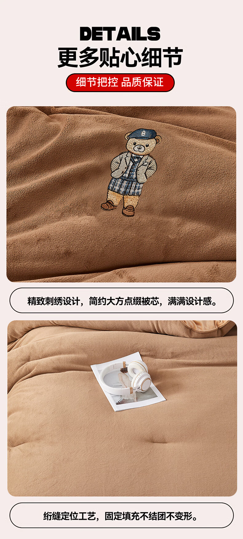 猫人(MiiOW)牛奶绒被套被芯冬被子 冬季加厚保暖棉被可拆洗单双人被褥春秋被 青沐-豆沙 冬被:200*230cm总重约10斤