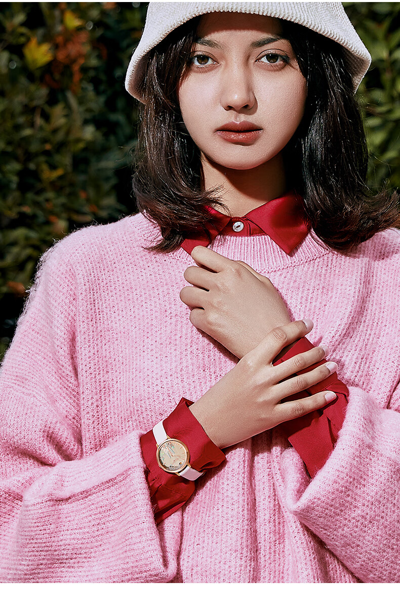 凯度(GAIDU)轻奢小众手表正品名牌时尚机械风镶钻陶瓷大表盘女士石英表礼物 陶瓷粉(送高档礼盒套装)