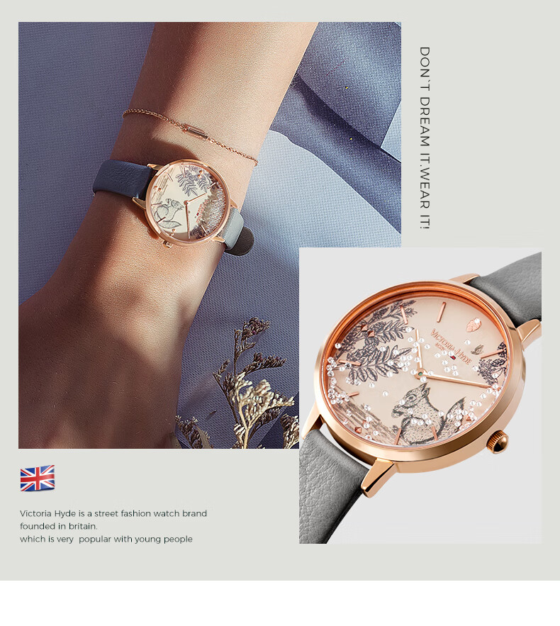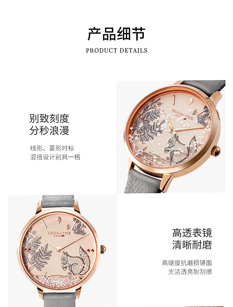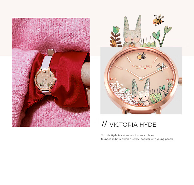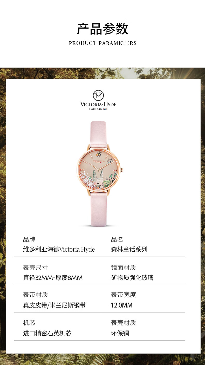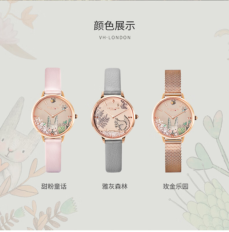 VICTORIA HYDE 女士手表森林童话公主风vh女表卡通学生个性石英腕表维多利亚海德送女生礼物 钢带款