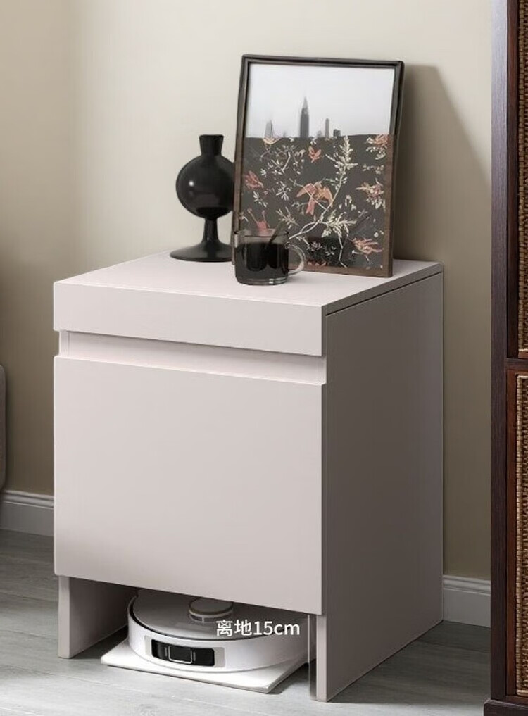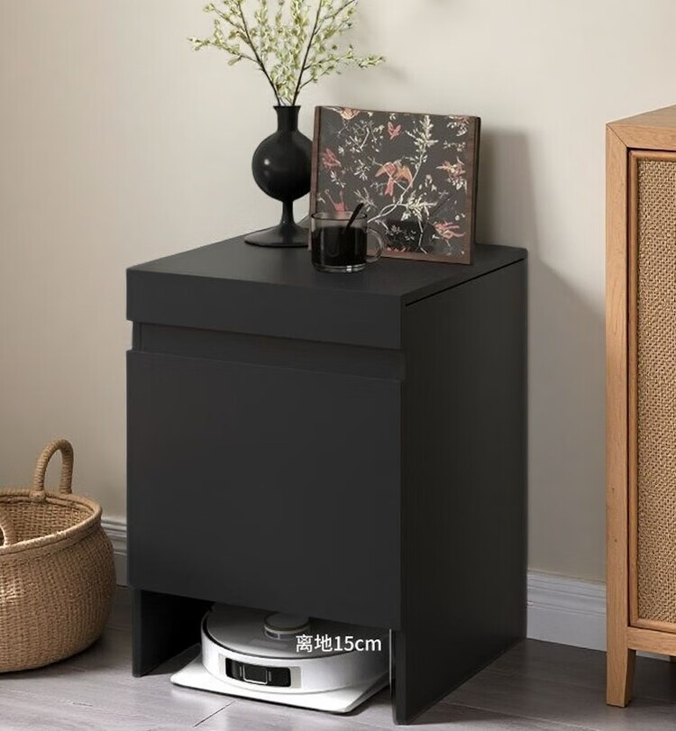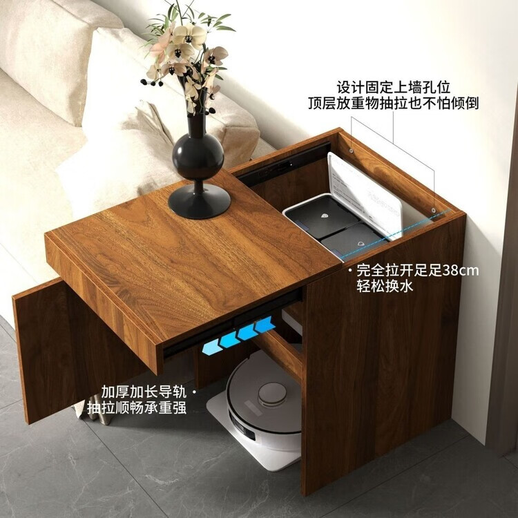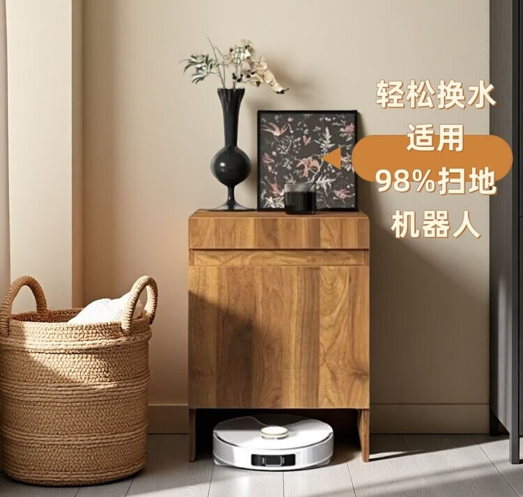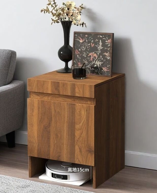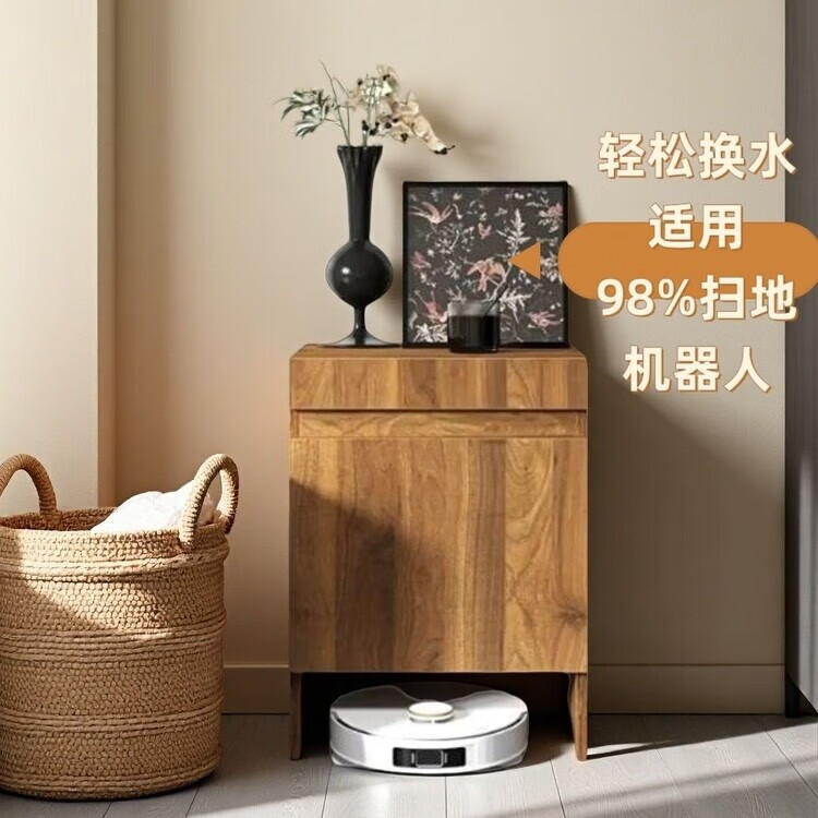 迈途森实木扫地机器人柜子室内适用石头科沃斯小米追觅云鲸收纳柜可定制 复古胡桃色实木颗粒板 50宽*50深*67高