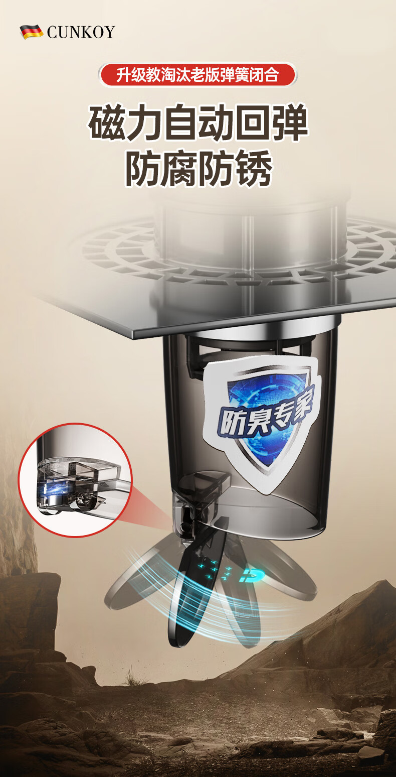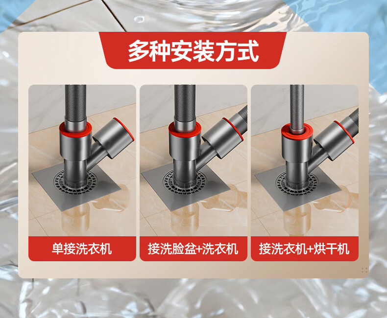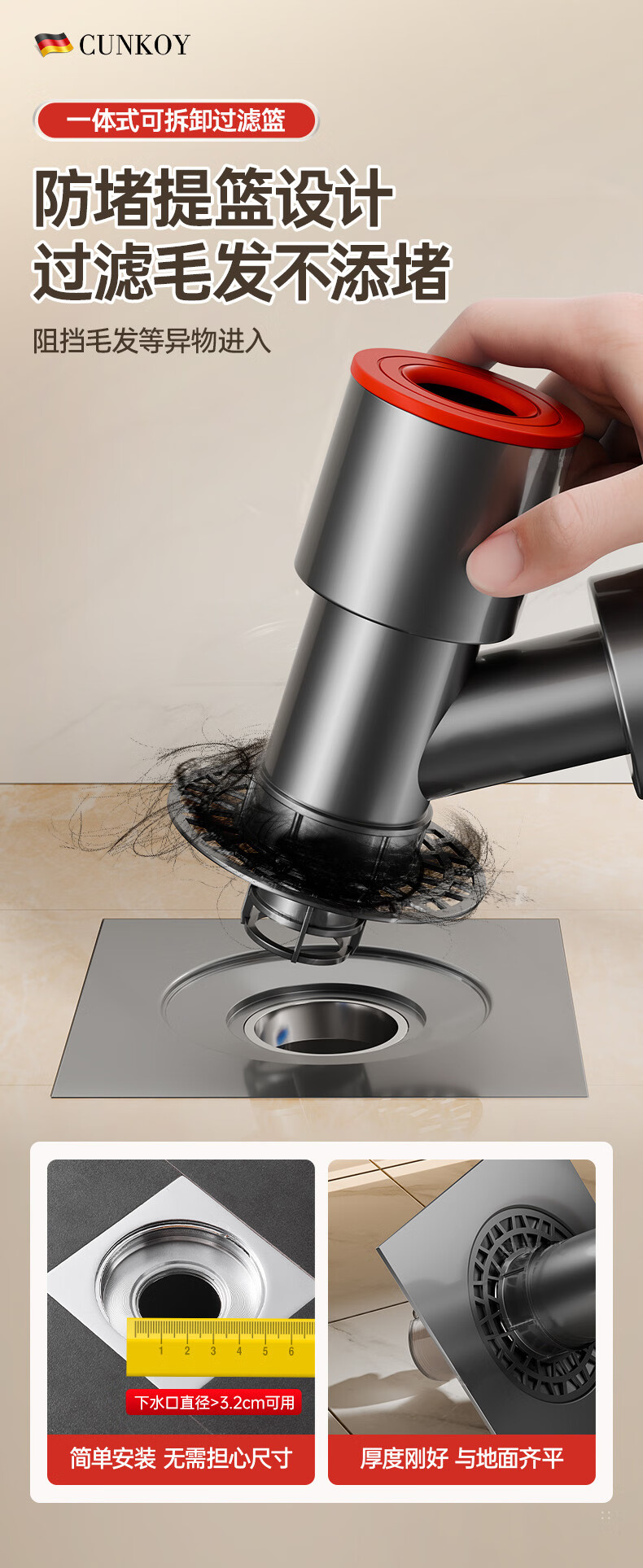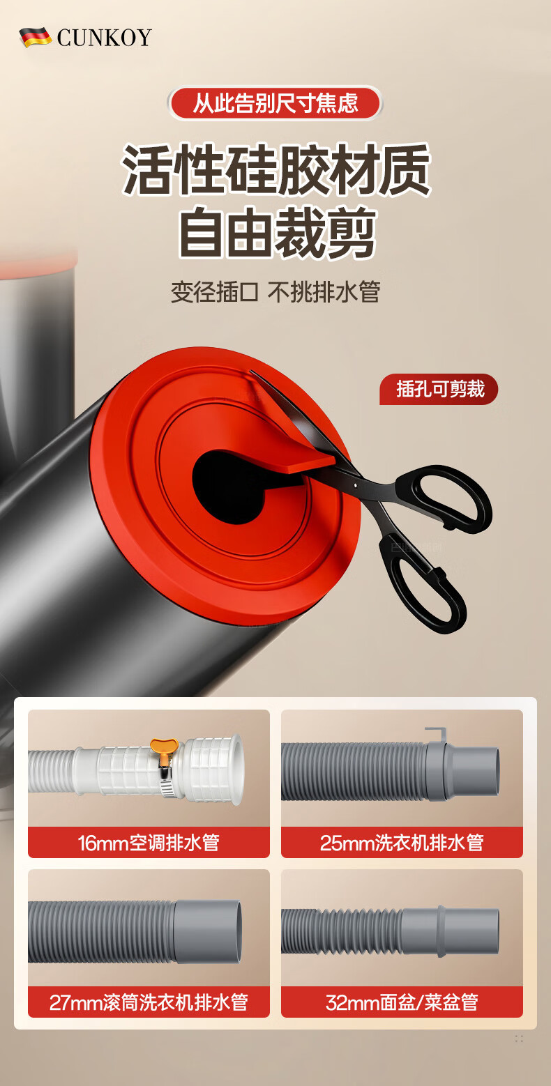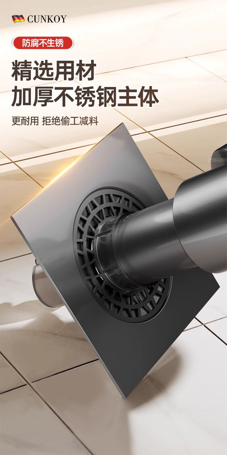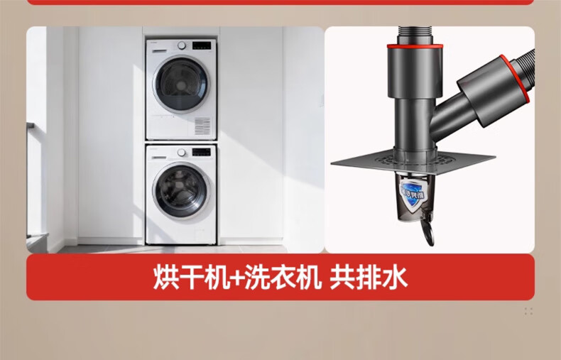 CUNKOY【德国】洗衣机下水三通下水管二合一地漏防臭排水管专用下水接头 斜三通防臭密封塞【枪灰】 防臭防溢水丨洗衣机+地面同时排水