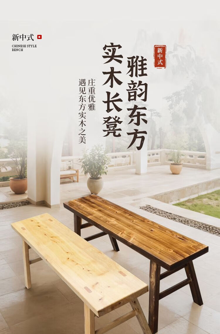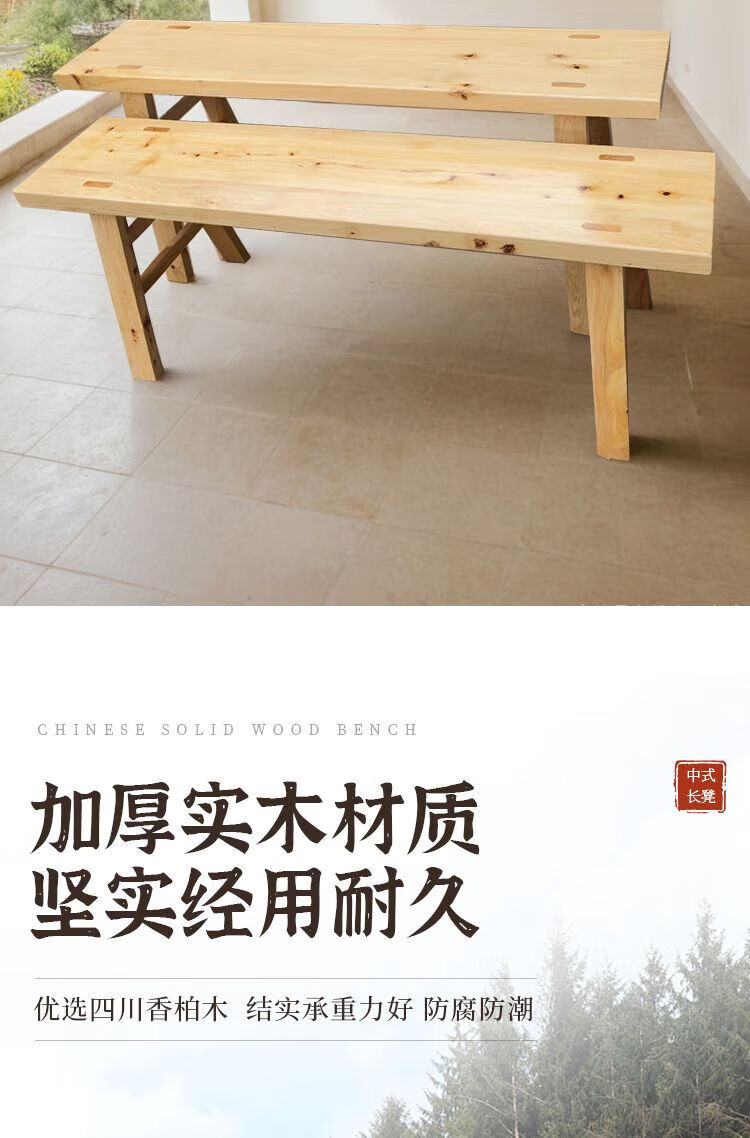 倘然之家实木木板凳长凳原木条凳家用长板凳火锅凳处理餐桌练功凳子 原木色98*21*42
