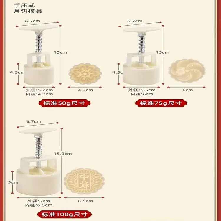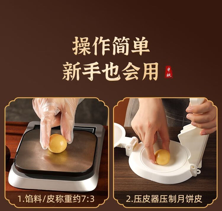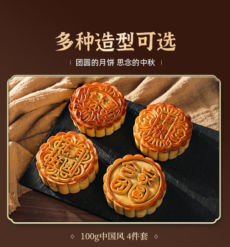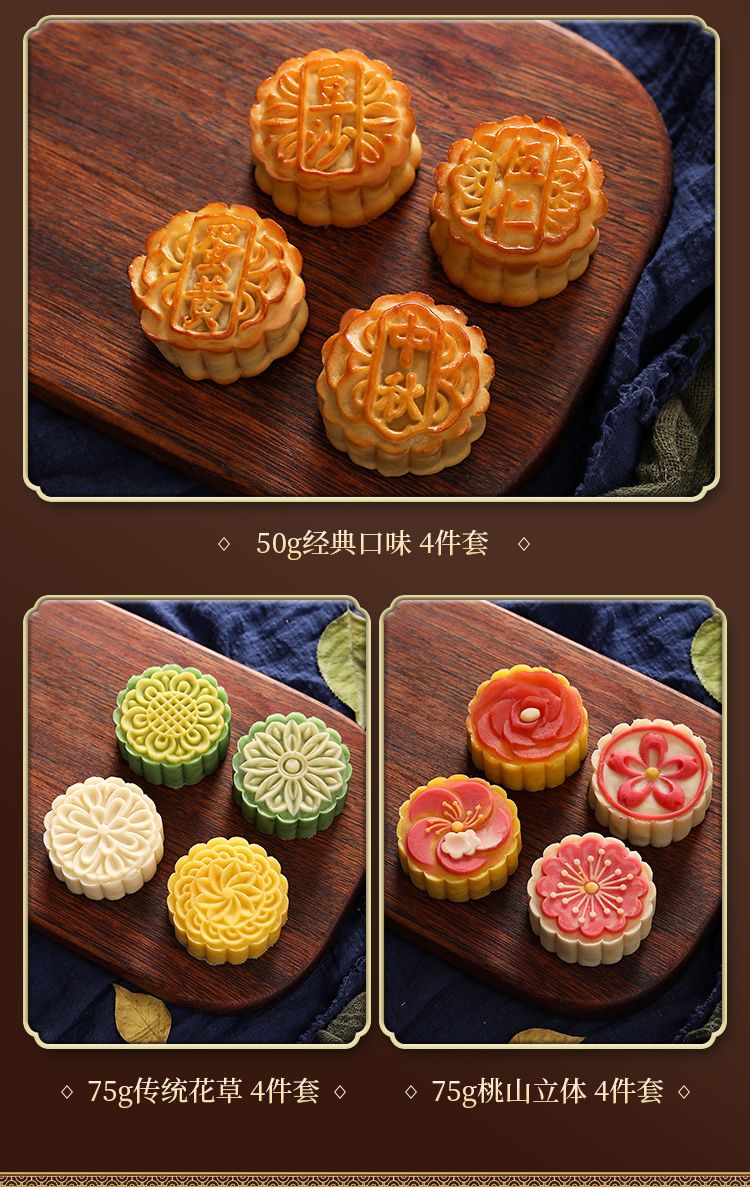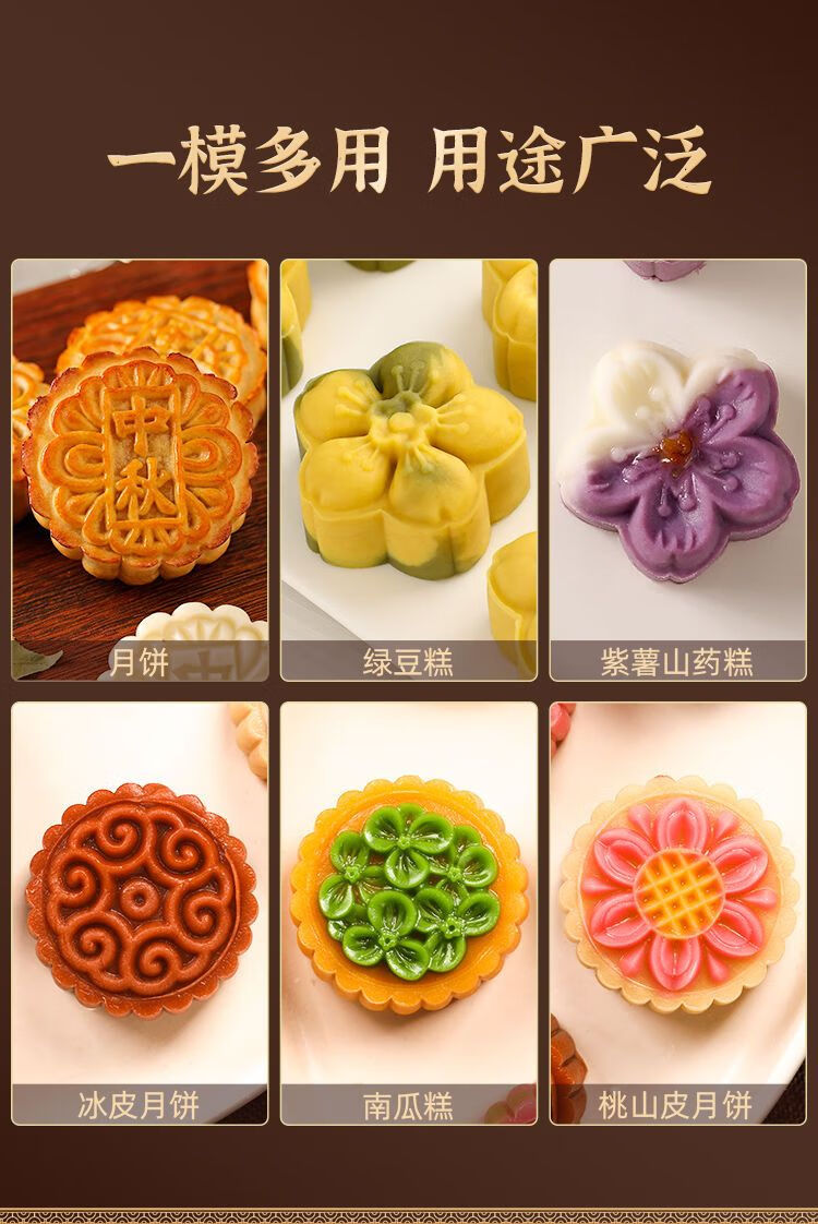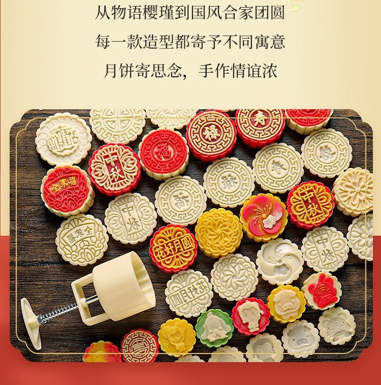 简漾2025新款月饼模具合家团圆花好月圆中秋家用绿豆糕点烘焙模型印具 50g中国风1模4底 送油刷