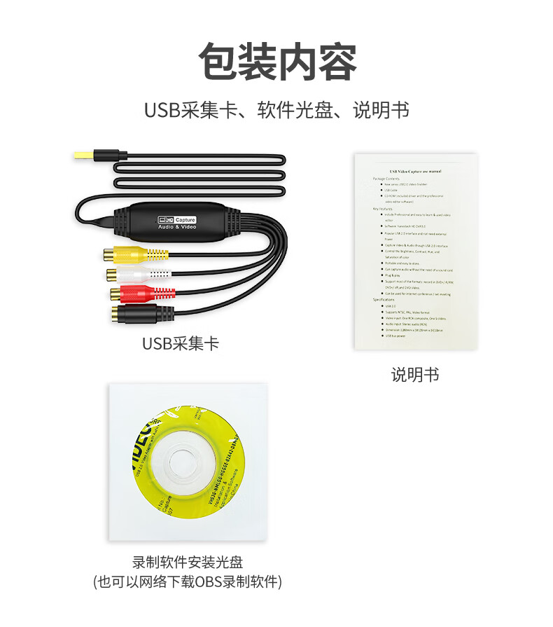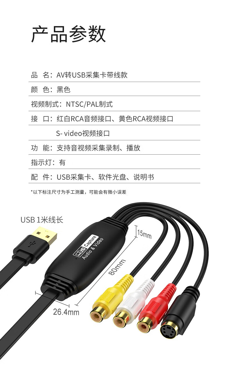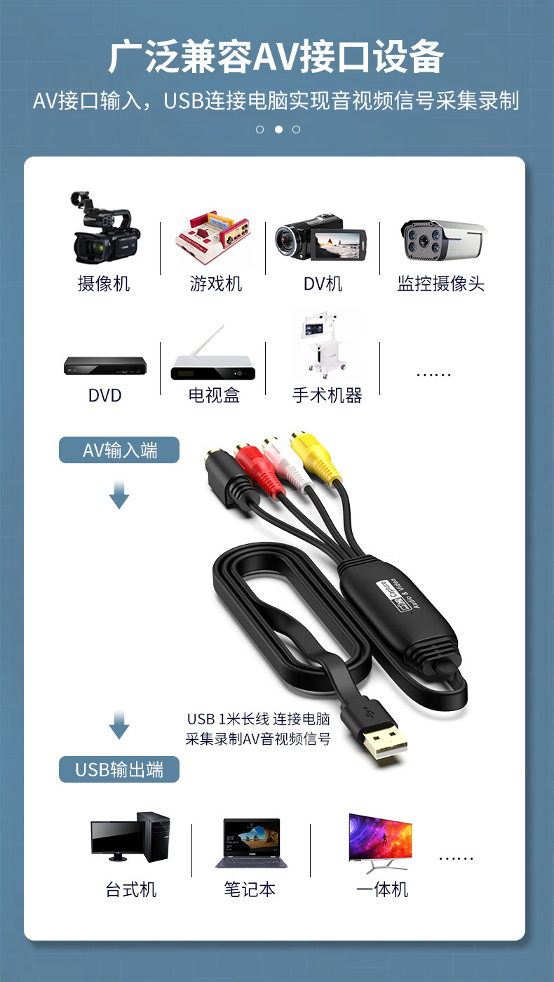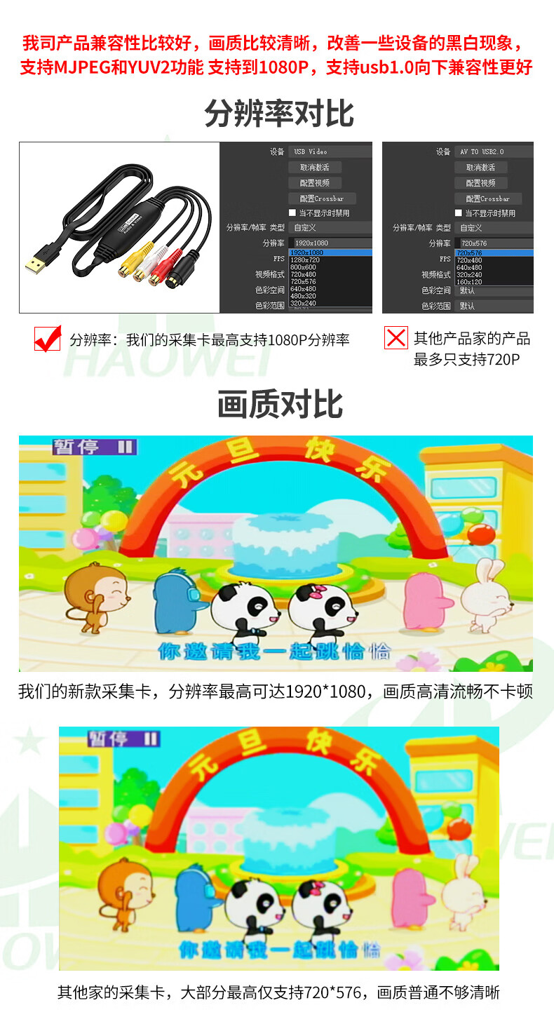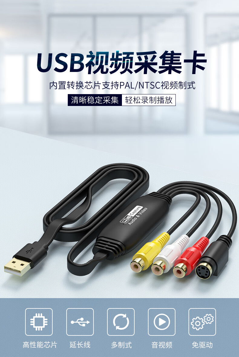春程USB转AV公母高清音视频采集卡 DV摄像机转录AV模拟 老式录像磁带导入电脑机顶盒 摄像机画面采集 USB转AV公采集卡