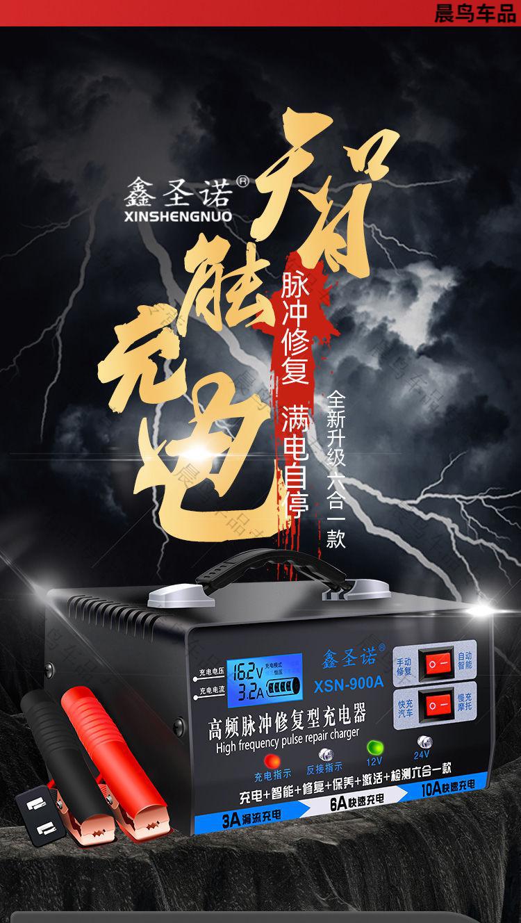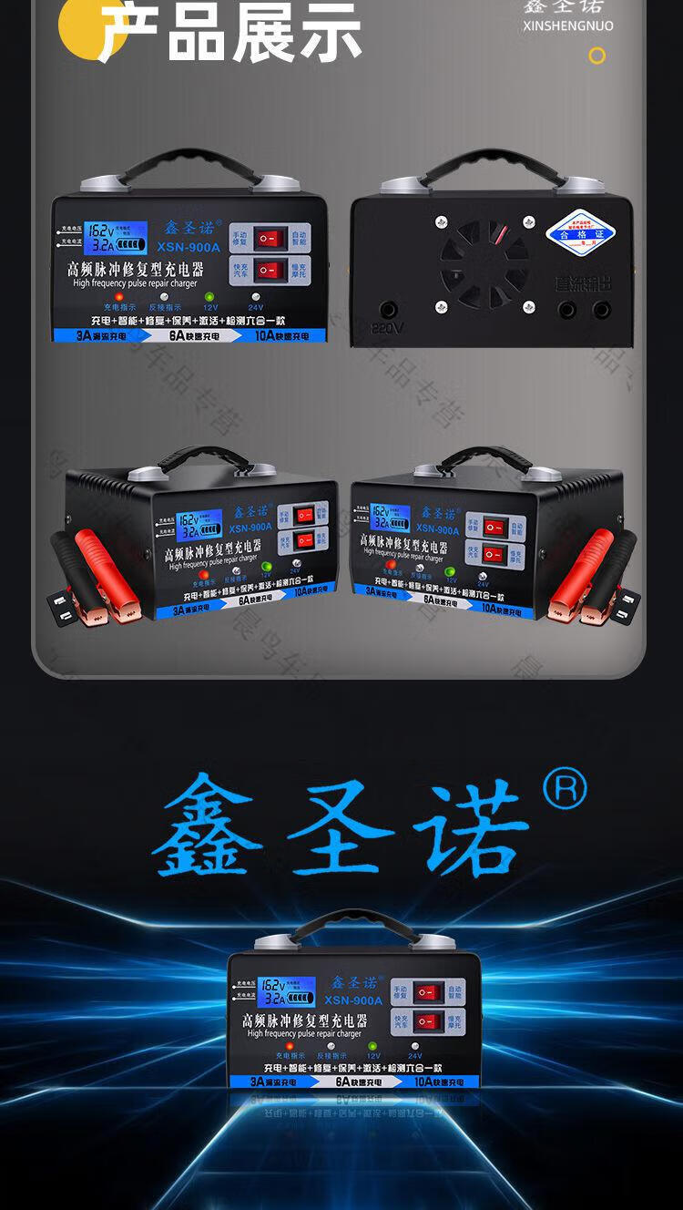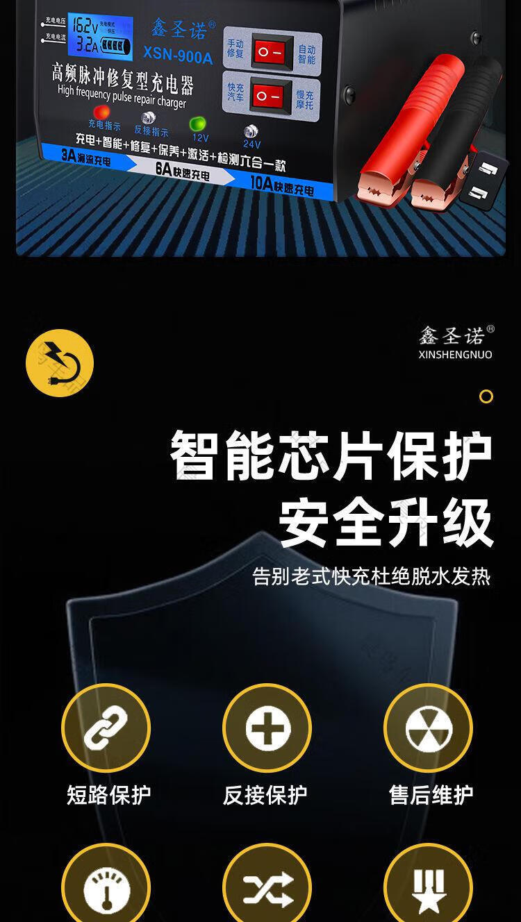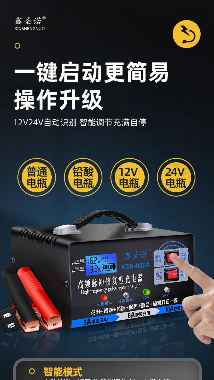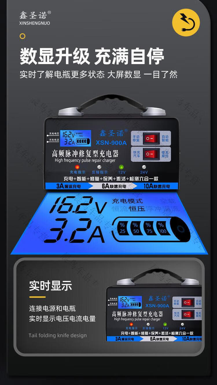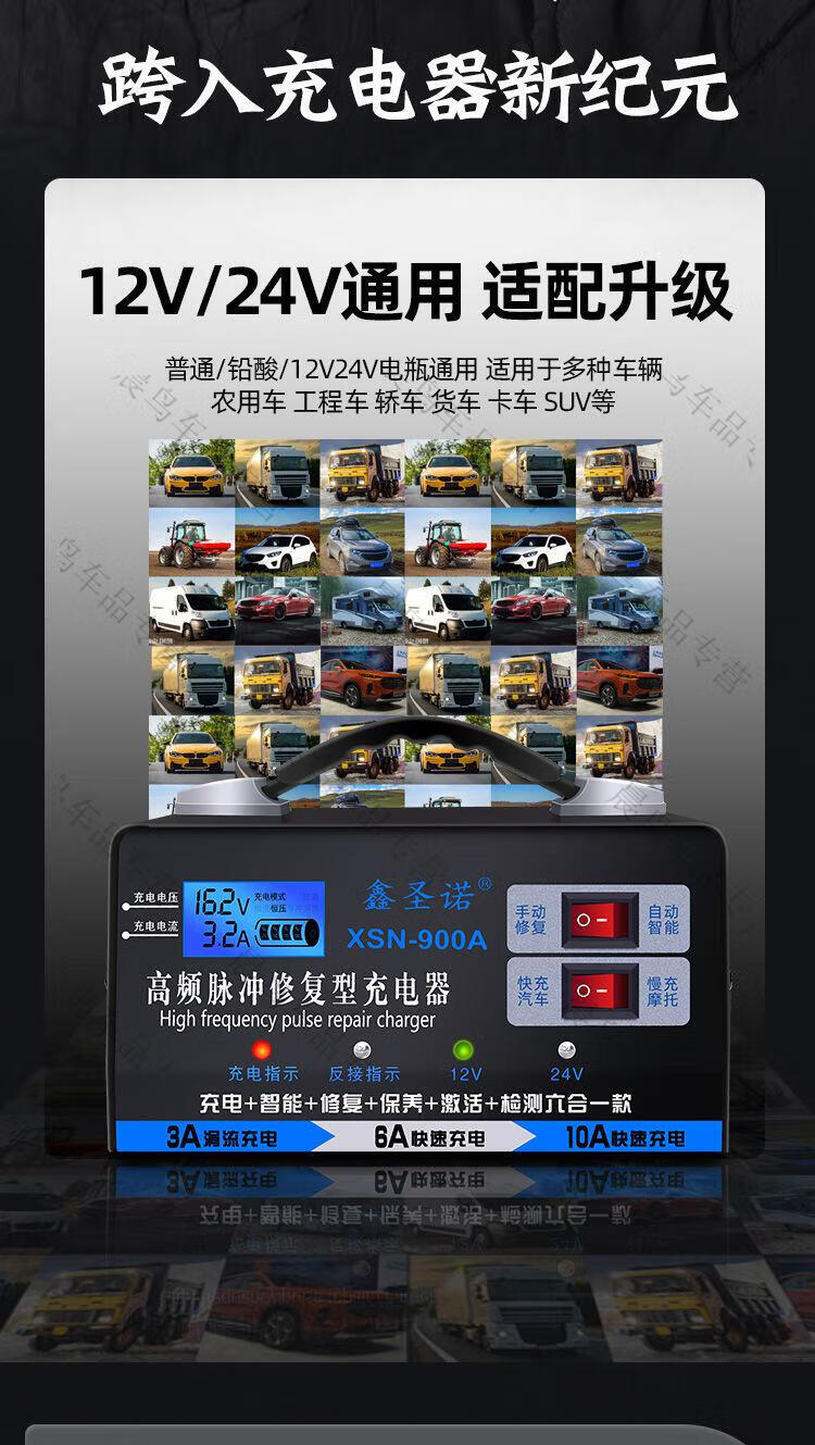 山头林村汽车电瓶充电器12v24v蓄电池充电机全自动智能脉冲纯铜修复神器