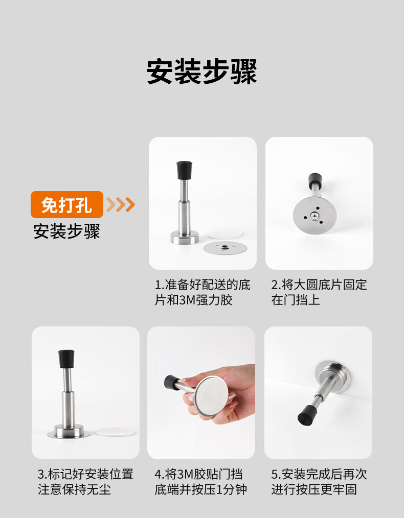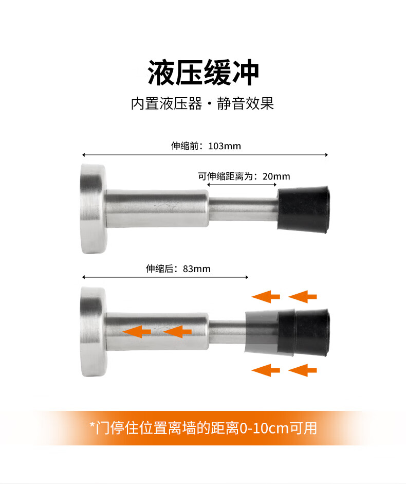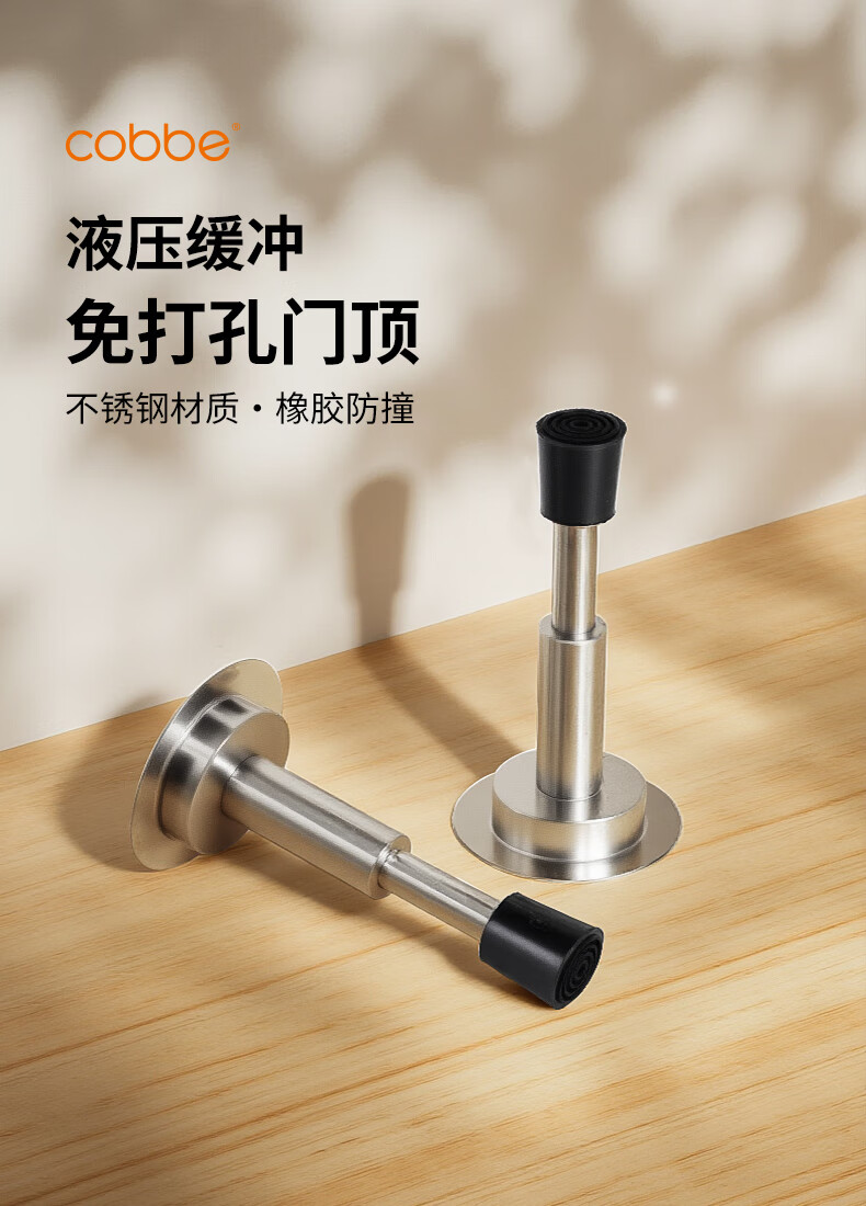 卡贝(cobbe)免打孔加长防撞门阻器橡胶门挡卫生间玻璃门防风静音门吸门顶 免打孔液压缓冲门挡