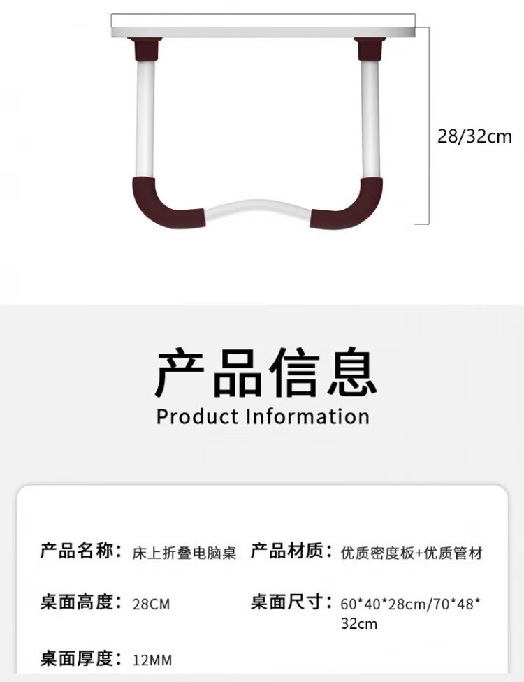 DEATKN德国床上小桌子床上折叠笔记本电脑桌懒人小桌子学生宿舍家用 【特价款】不可伸缩28cm