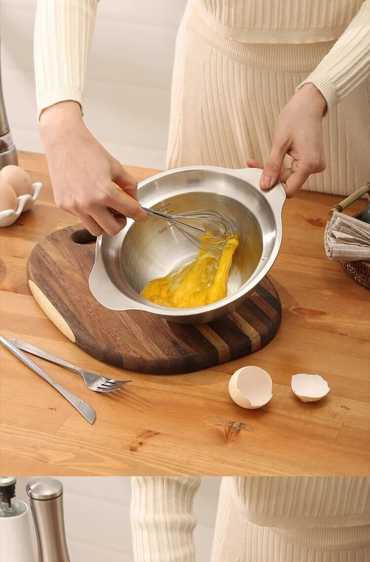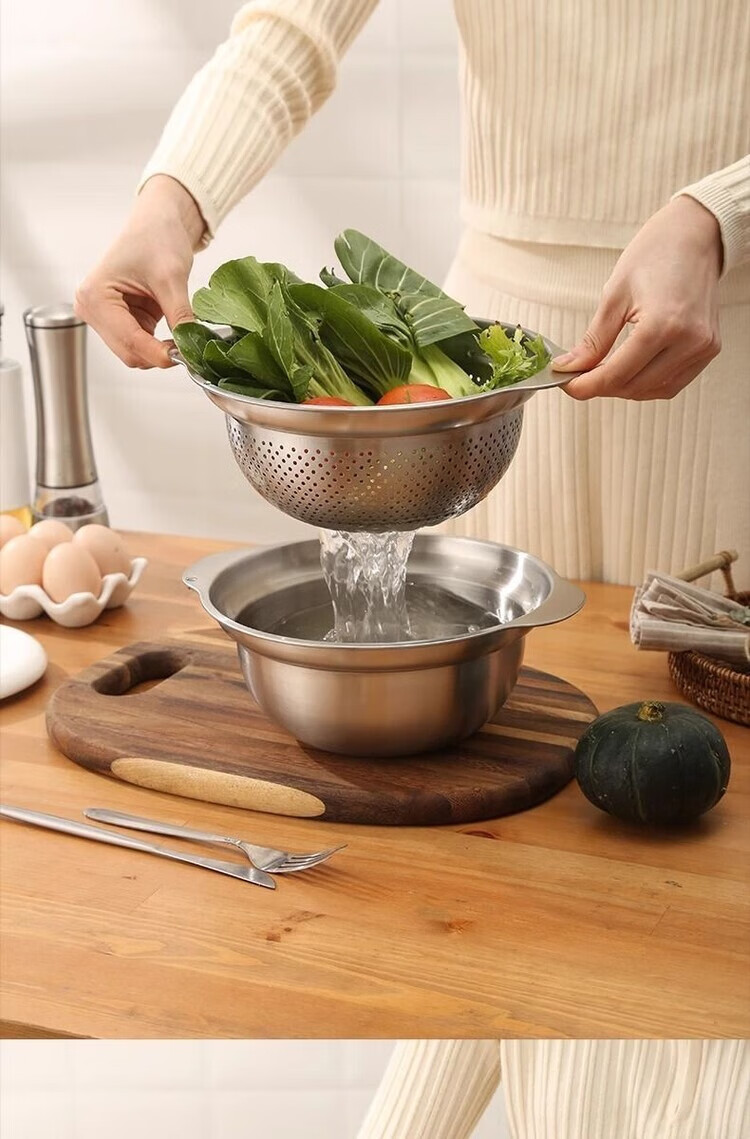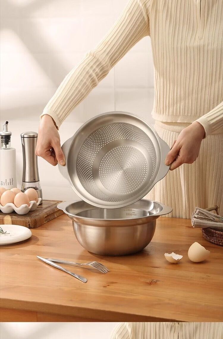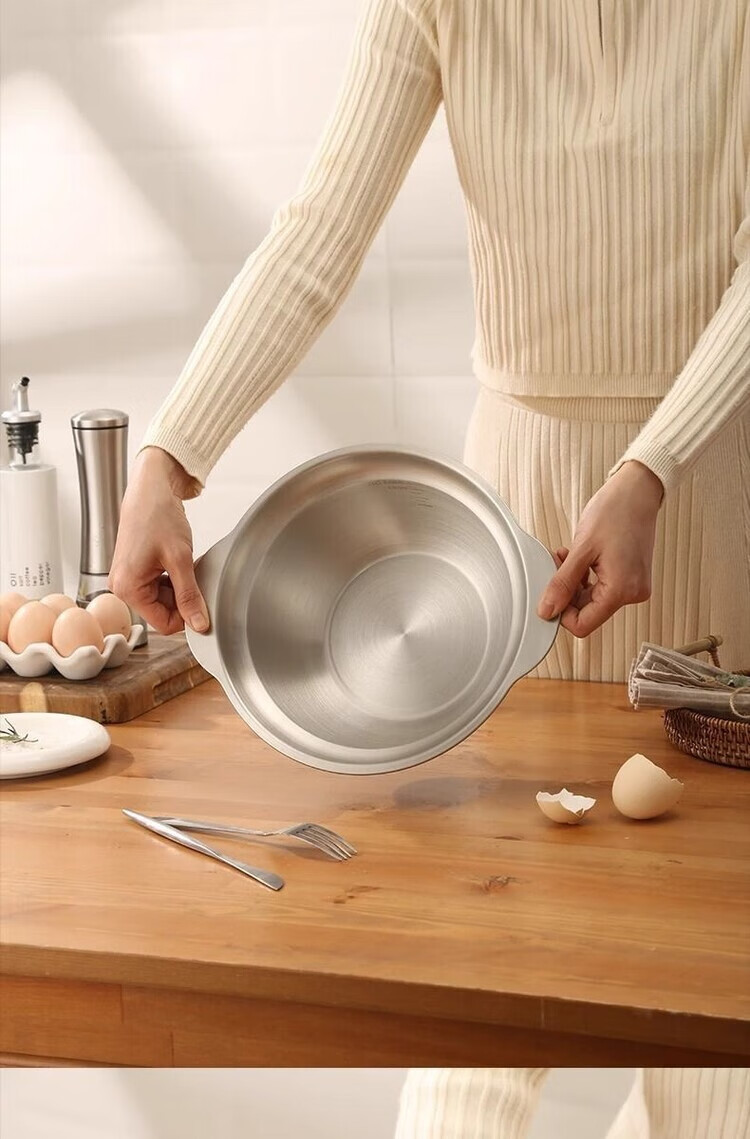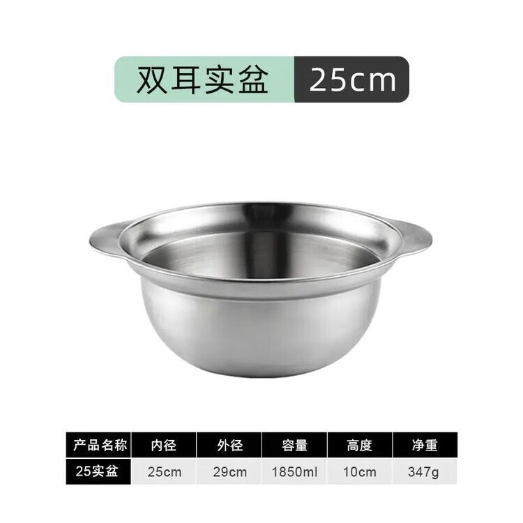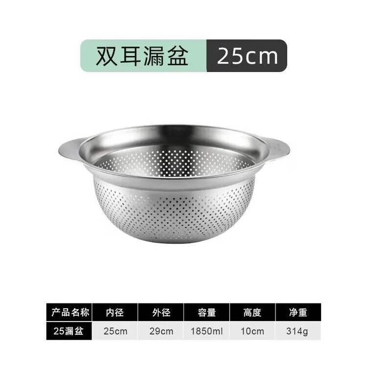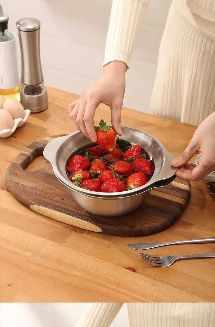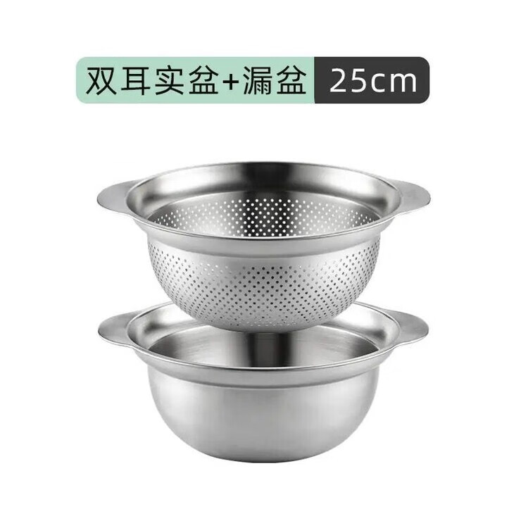 简漾304不锈钢盆双层厨房家用双耳加厚沥水篮揉面盆烘焙盆和面打发盆 25CM-双耳实盆