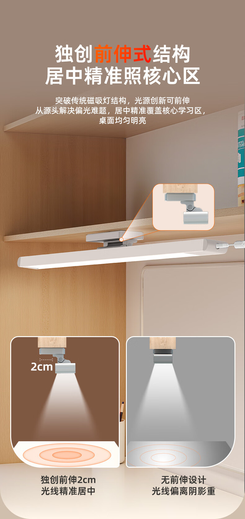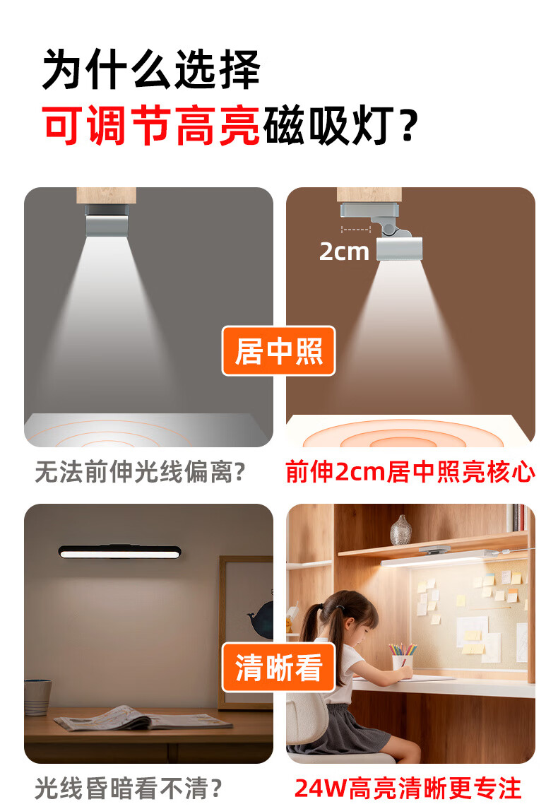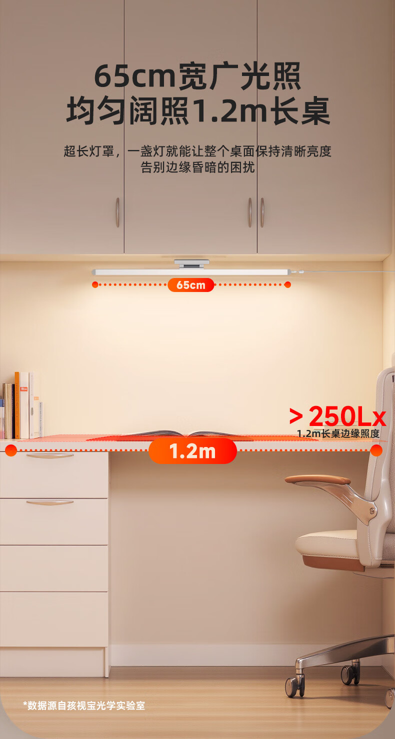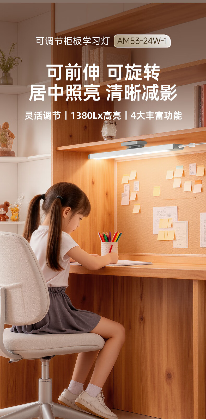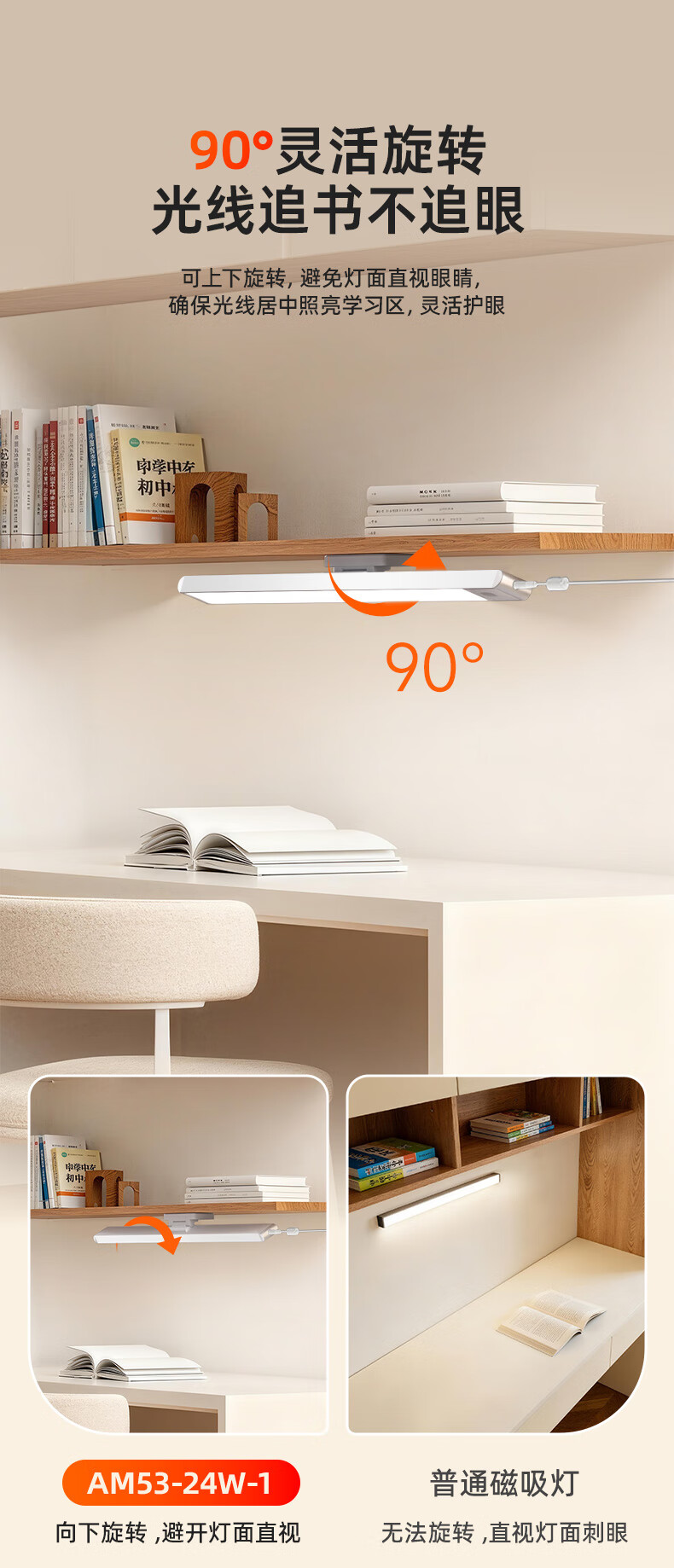 孩视宝护眼台灯全光谱悬挂壁挂书架吊柜磁吸学生儿童学习读写灯大路灯 【升级灯头前伸可旋转】精准居中照明 AM53-24W-1