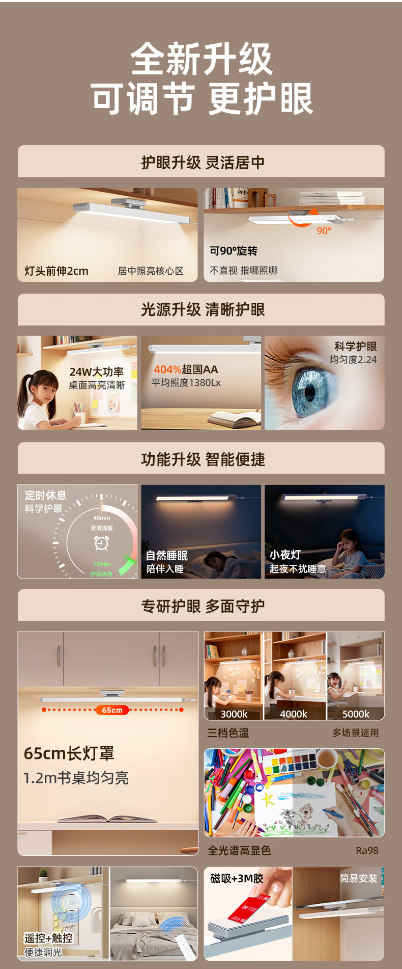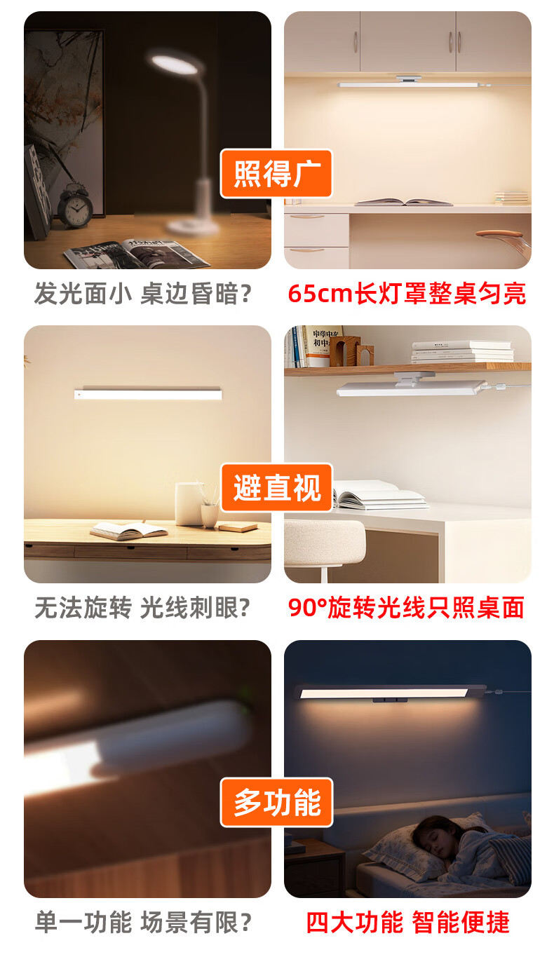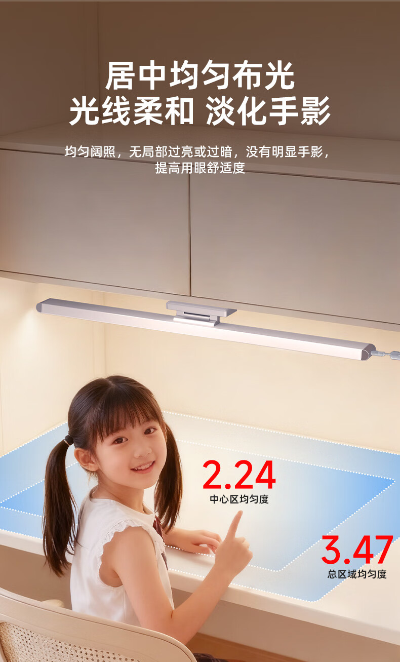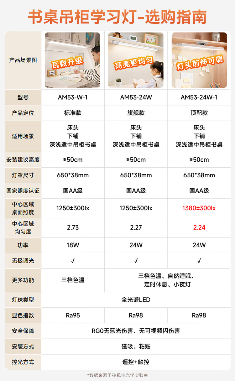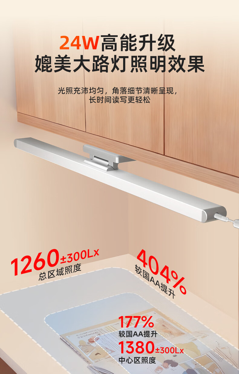 孩视宝护眼台灯全光谱悬挂壁挂书架吊柜磁吸学生儿童学习读写灯大路灯 【升级灯头前伸可旋转】精准居中照明 AM53-24W-1
