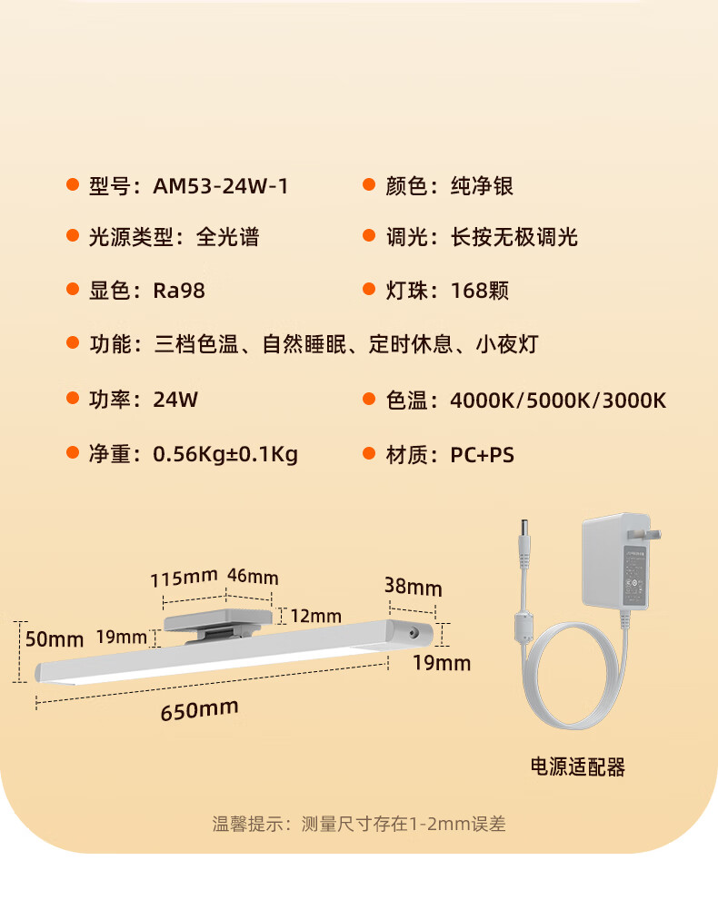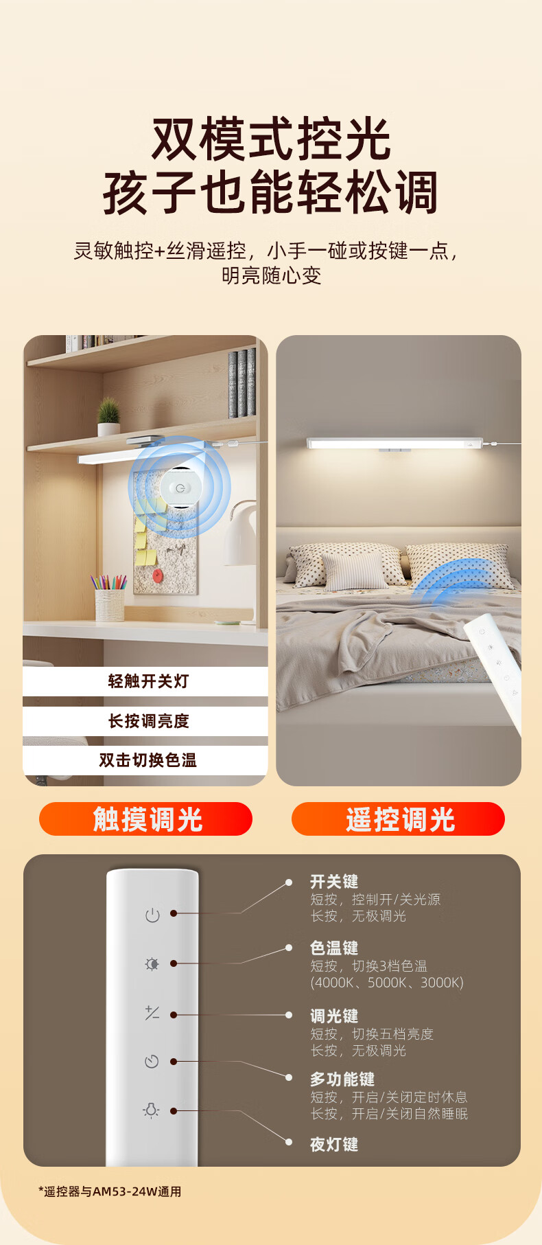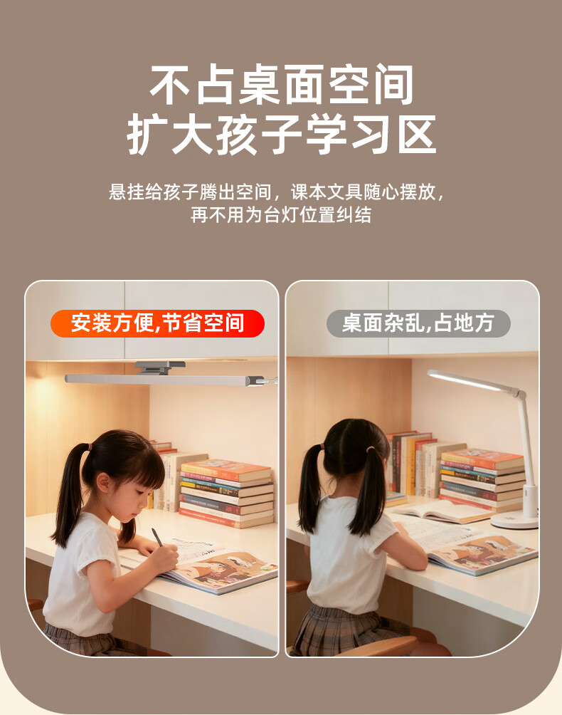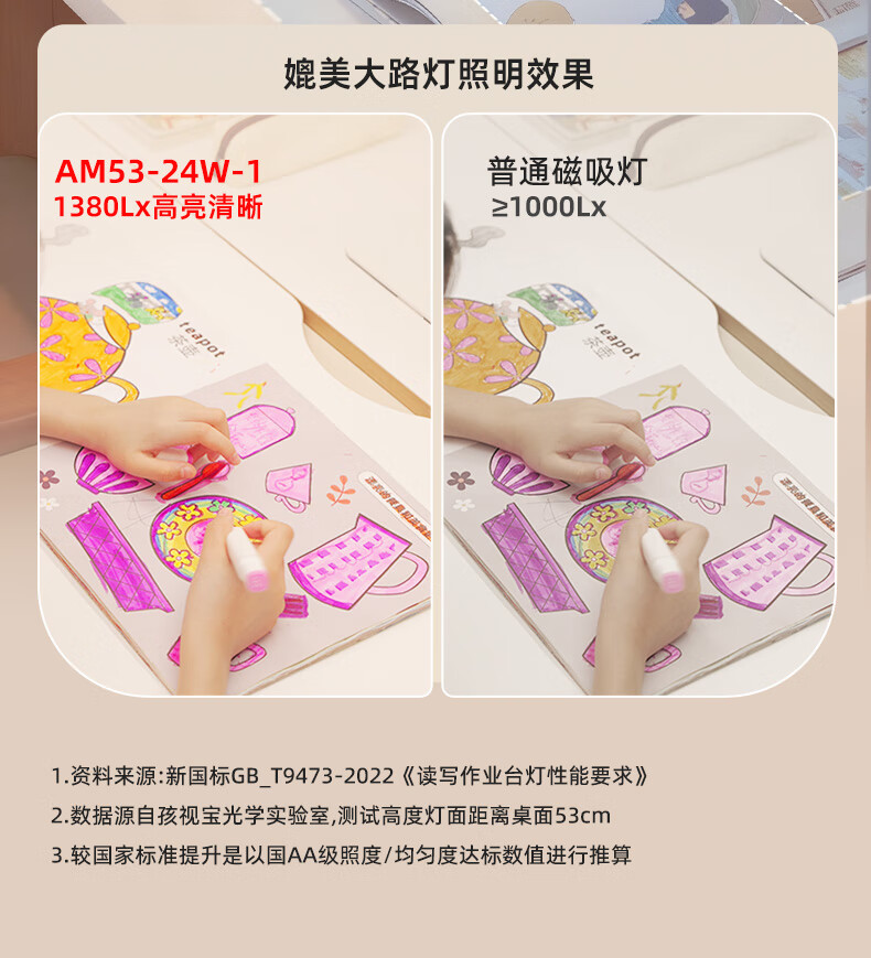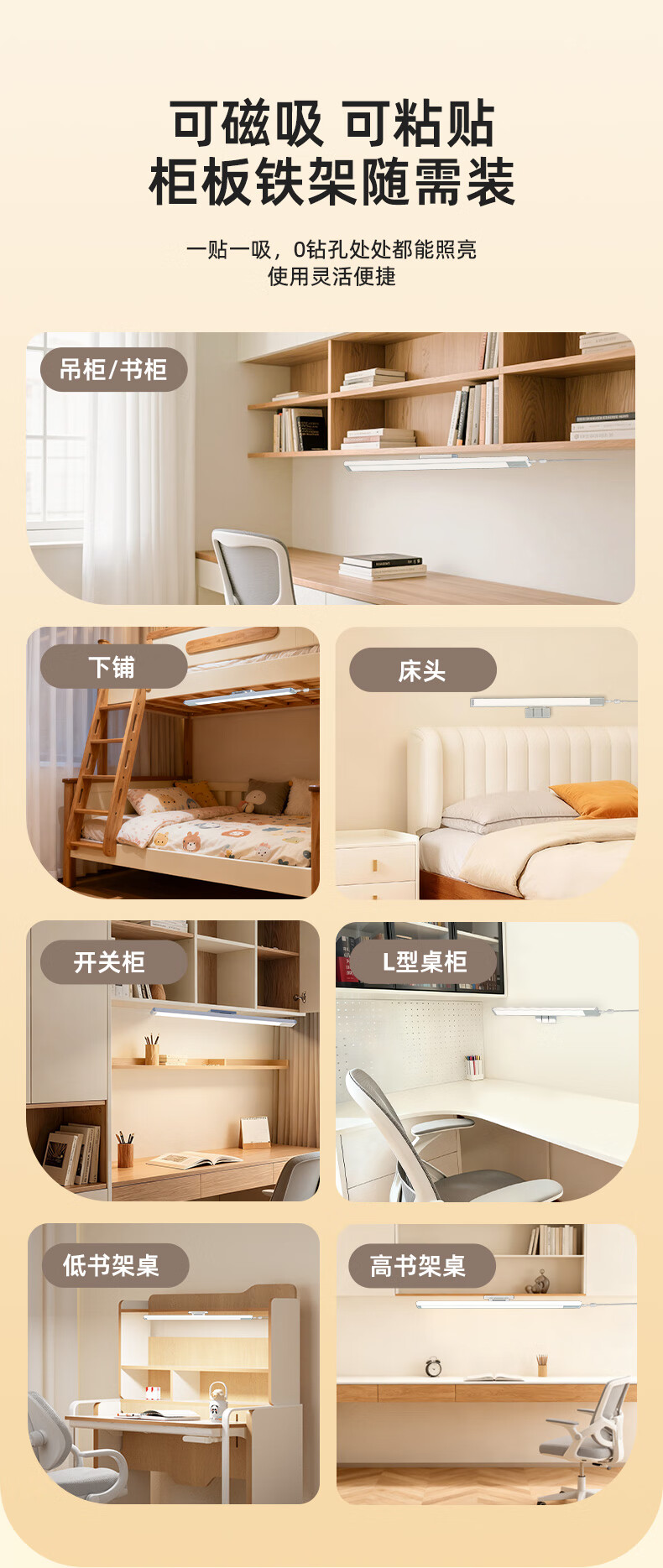孩视宝护眼台灯全光谱悬挂壁挂书架吊柜磁吸学生儿童学习读写灯大路灯 【升级灯头前伸可旋转】精准居中照明 AM53-24W-1