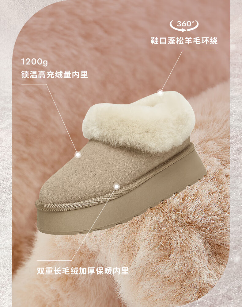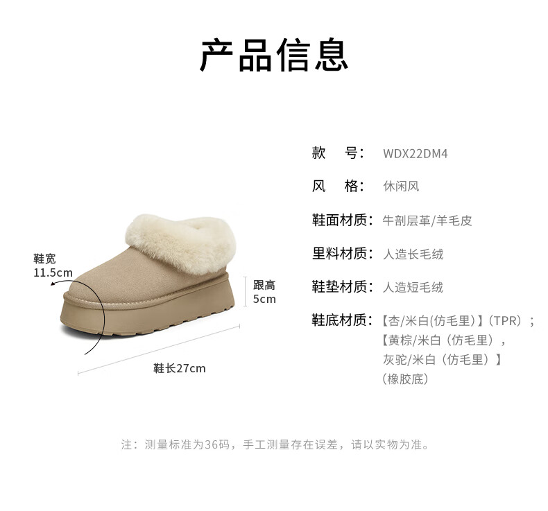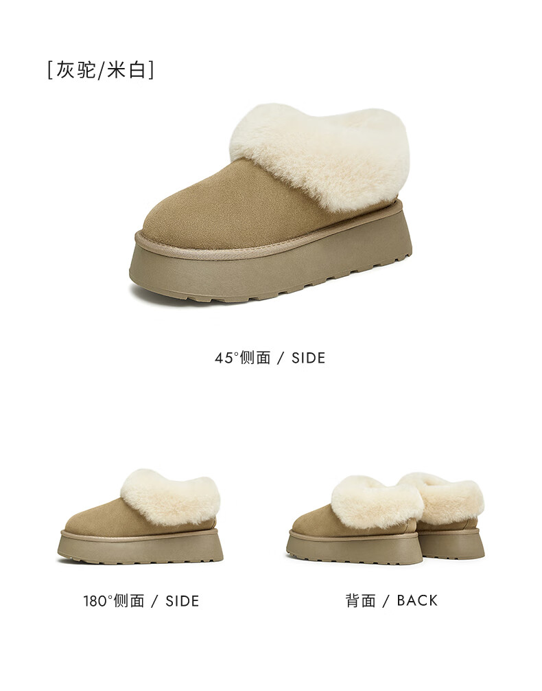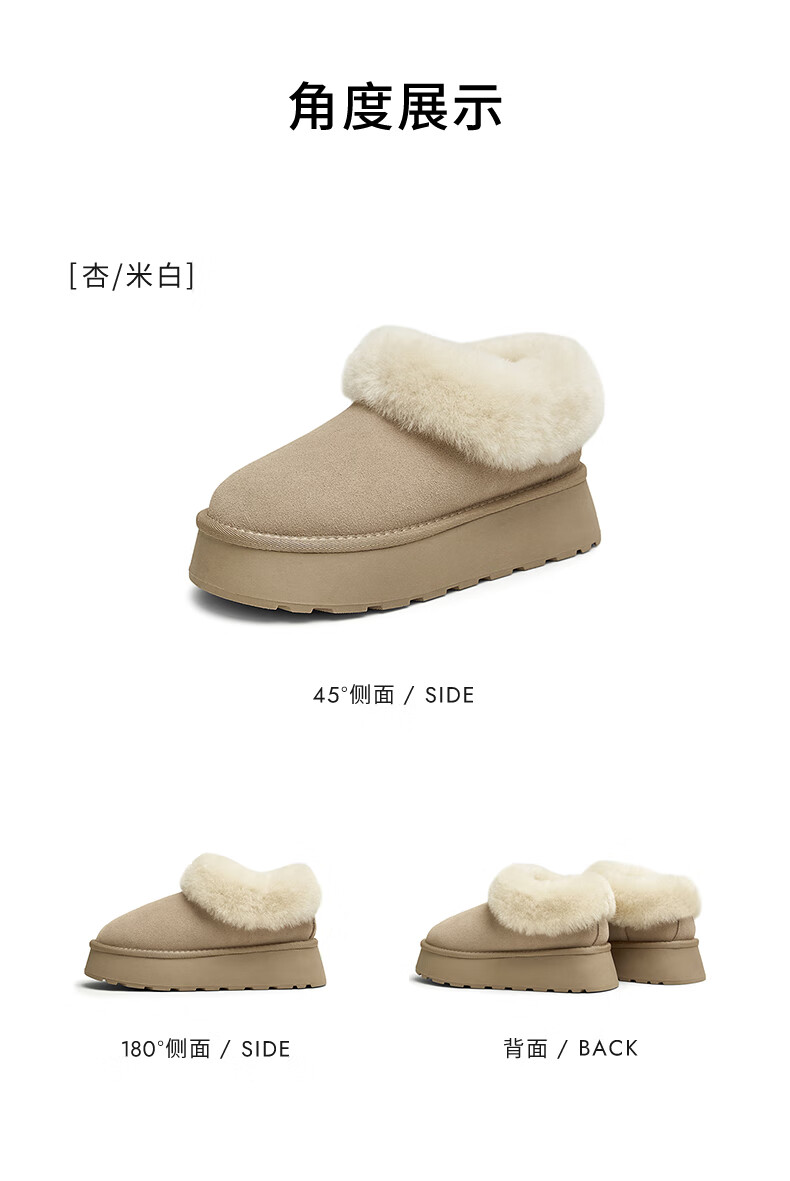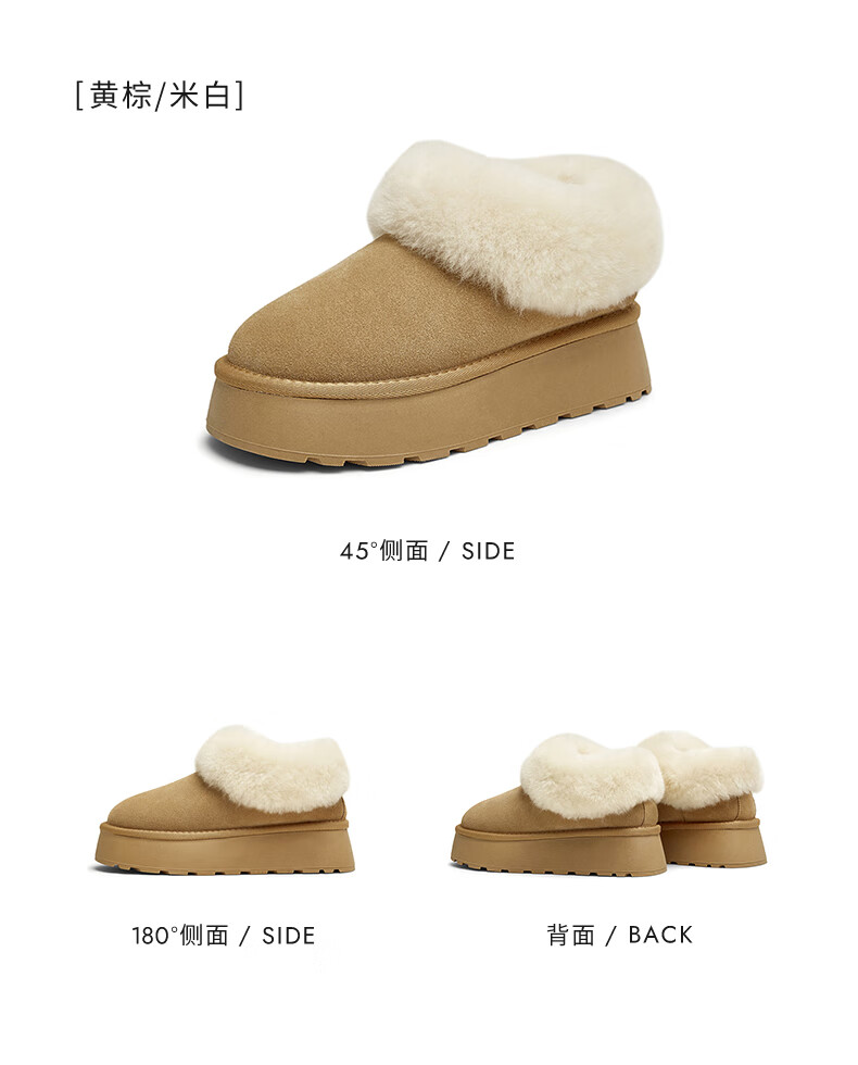 他她蓬蓬靴厚底毛毛鞋加绒保暖冬季WDX22DM4 杏/米白(仿毛里) 37
