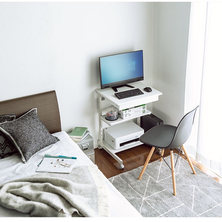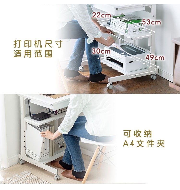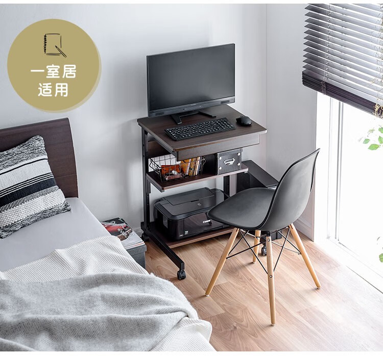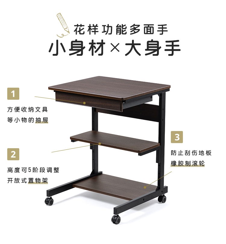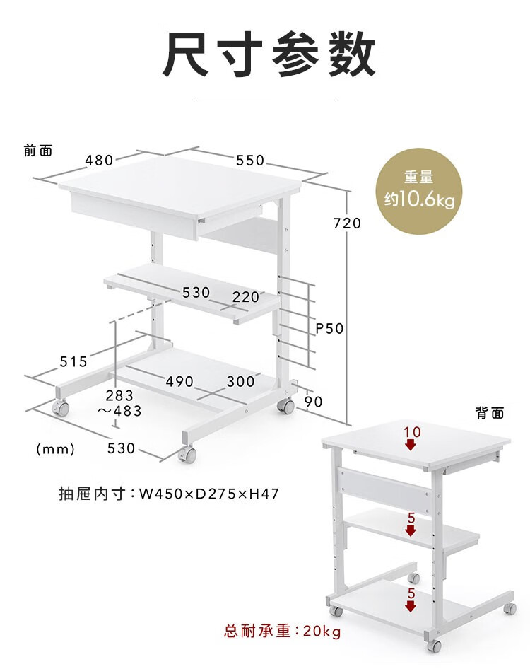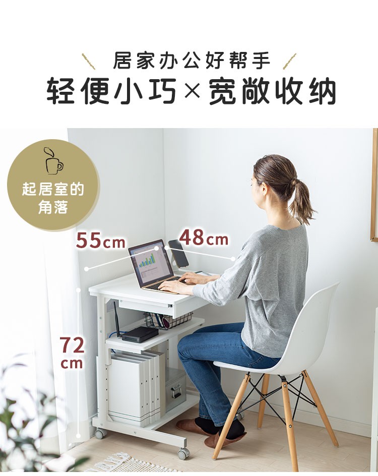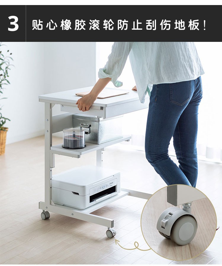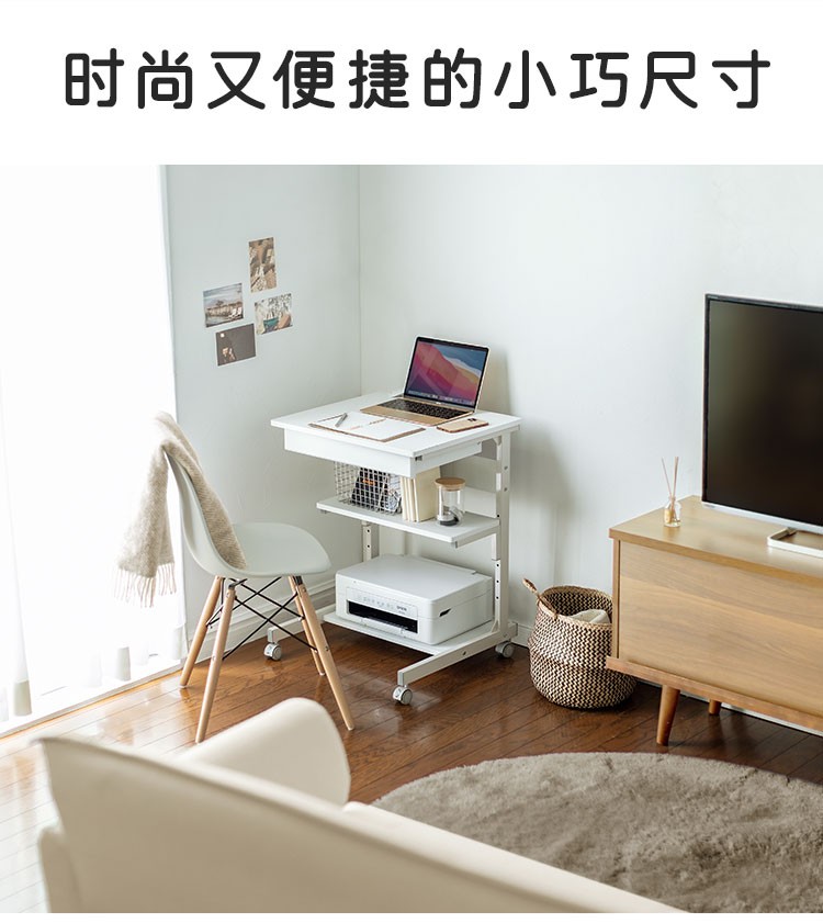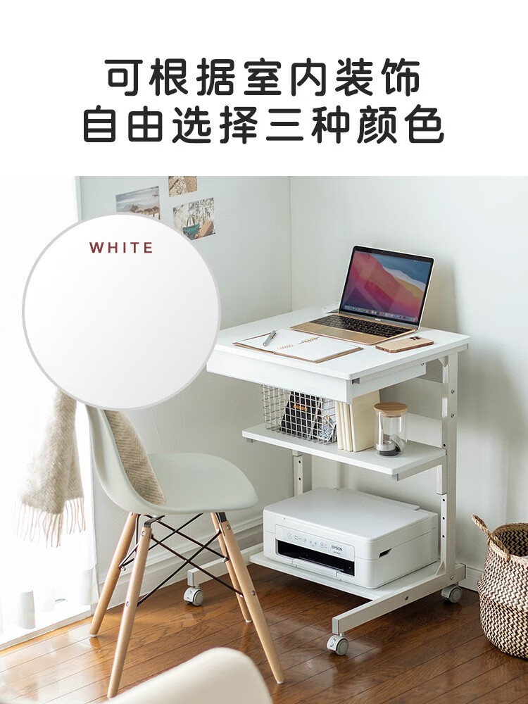 山业 移动桌 收纳桌 可升降调节桌 电脑桌子 卧室小户型桌 宿舍桌子 白色