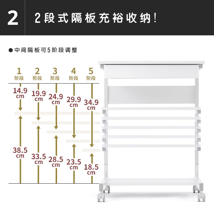 变形平行置物架阳台移动小推车可折叠带轮零食多肉花架摆摊收纳架 3层伸展推车白色 3层