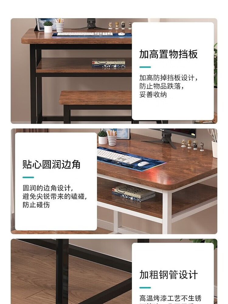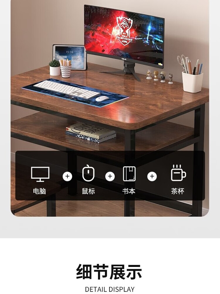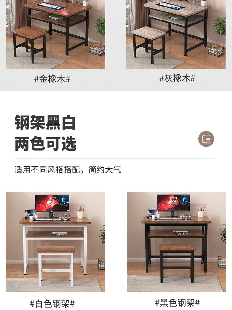 弘星隆专用课桌椅组合加厚简易儿童书桌小学写字桌书桌学习桌椅套装家用 浅胡桃白架 双层 长60CM宽40CM高80CM直角桌面