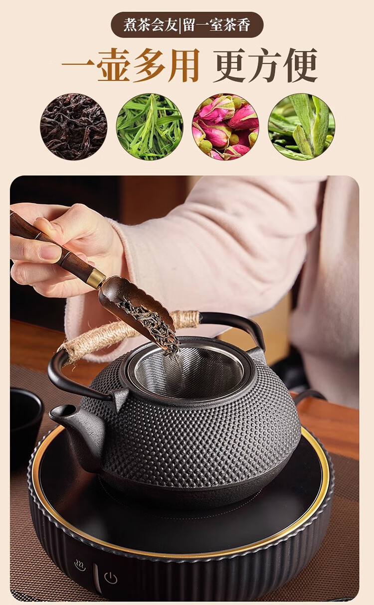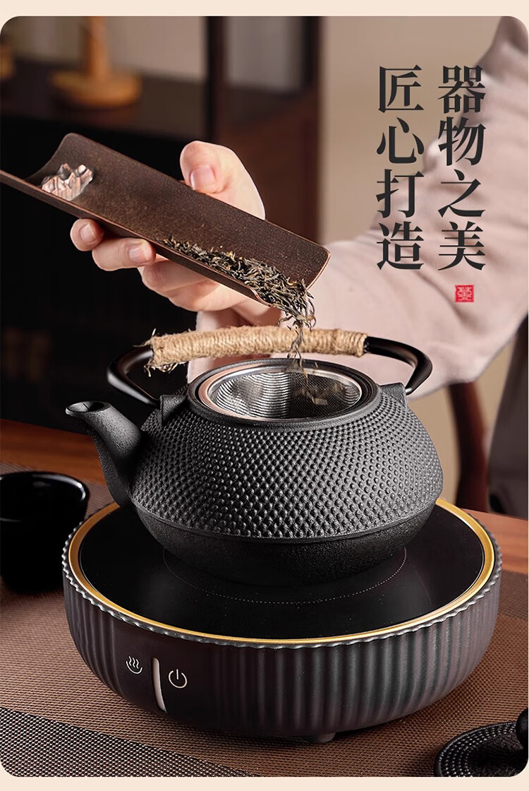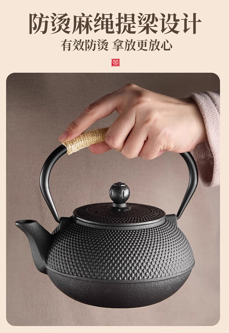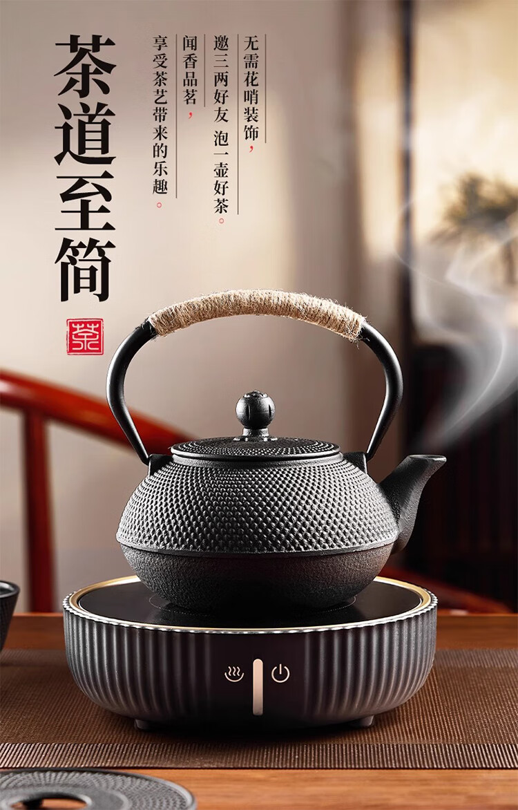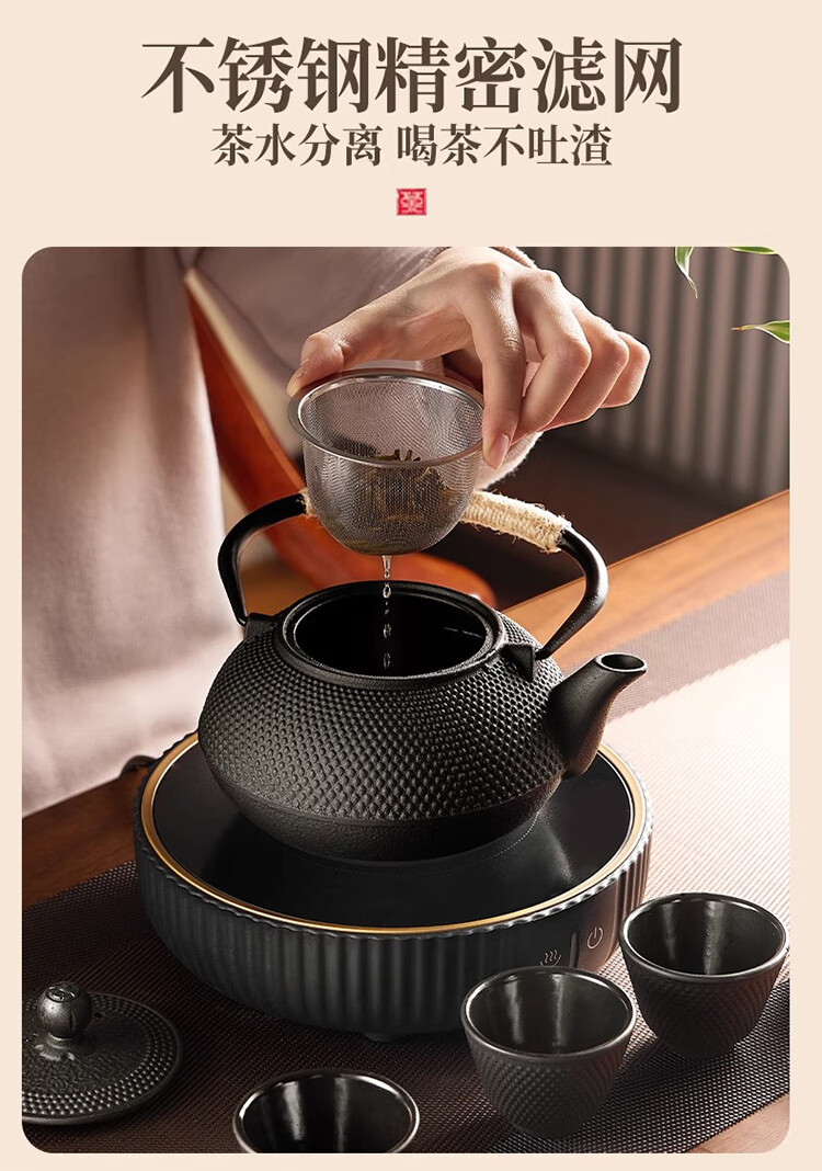 筏芯德国正品铁壶煮茶壶烧水壶泡茶专用碳火电陶炉器具冬秋天茶壶围炉 铸铁茶壶300ml-带茶漏